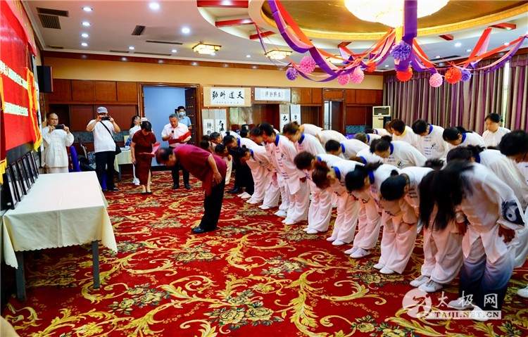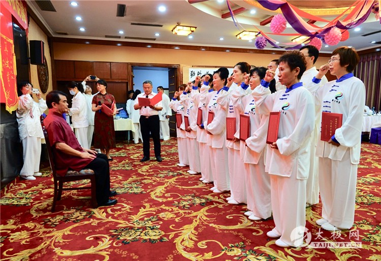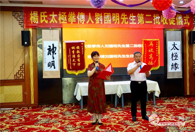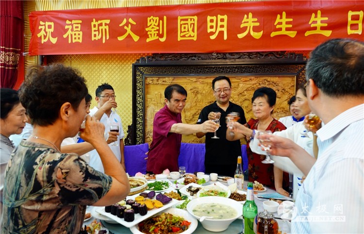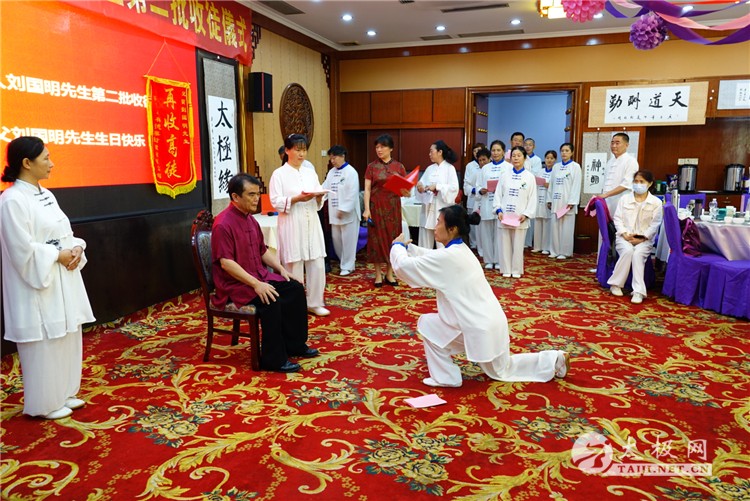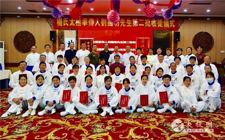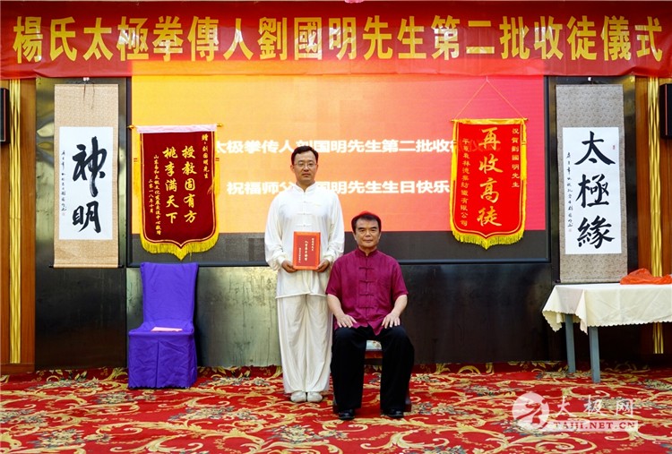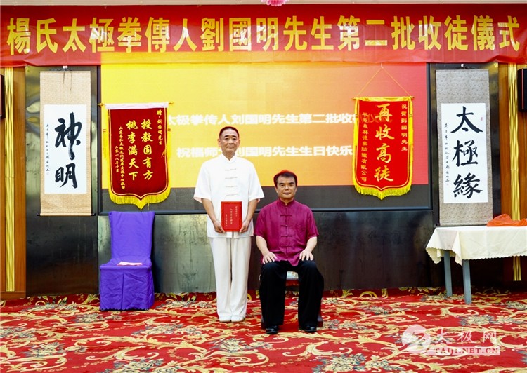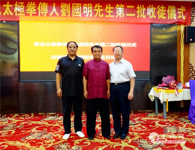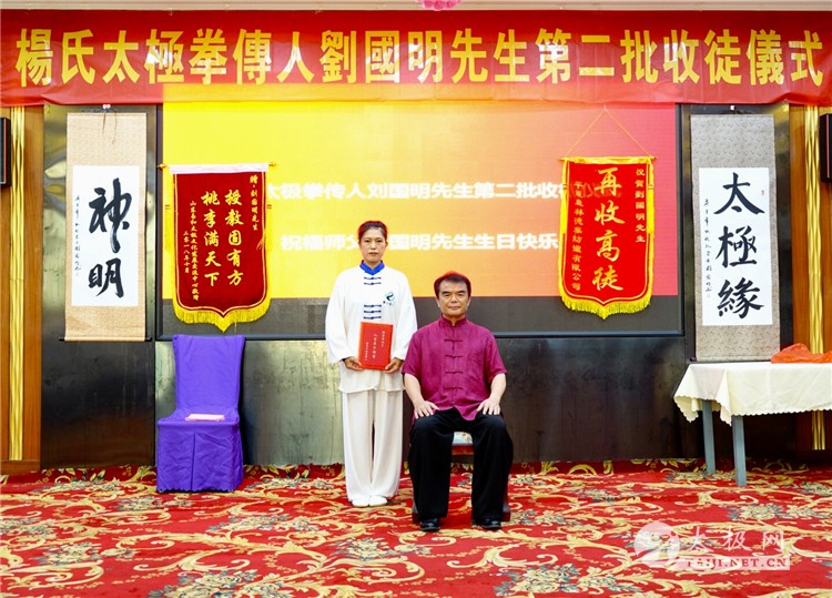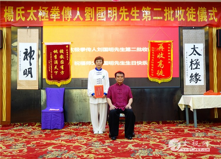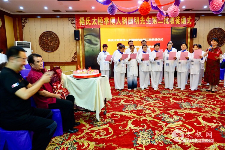 8月25日,杨氏太极拳传人刘国明先生喜收新徒,收徒仪式于山东冶金宾馆隆重举行,刘忠艳、孙秀美、王丽丽、刘红云、艾艳平、陈秀川、刘炳华、杨文玉、丛庆玲、原波、张洪波、张立英、李明顺、师家智、刘媛、宋汝鹏16名太极拳爱好者拜在刘国明老师门下,新入门弟子分别来自云南、济南、烟台、泰安、莱州、新泰、肥城、宁阳、平原、禹城等地。新老弟子齐聚一堂,庆贺刘国明先生喜收新徒。 刘国明,号明源,自幼习书练武,后拜郝明之先生为师学习杨式太极拳、太极推手及器械,于2014年6月17日考入中国武术协会段位制专家人才库,现为中国武术七段、山东老年体协太极拳委员会副秘书长;山东易和太极文化发展交流中心副主任兼培训部主任;中国书法家协会高级注册教师;中华人民共和国美术师;荣获世界功勋艺术家称号。曾在山东老年大学、山东老干部活动中心、军休大厦及多处机关院校教授太极拳和书法专业课,现为山东省百万人太极拳活动培训专家。 收徒仪式庄重古朴,刘国明先生向杨氏太极拳的宗师和先师行鞠躬大礼,香火有继,传承有序。新入门弟子依次向师父行拜师礼、递交拜师帖、敬拜师茶,在众人的见证下,收徒仪式圆满礼成。 收徒仪式结束后,刘国明先生寿诞庆典仪式随之举行,寿宴上,众弟子们齐唱生日歌祝师傅生日快乐,寿星刘国明先生在众人的掌声和欢呼声默默许愿,携手切开生日蛋糕,与众人一起分享快乐的祝福!美酒、笑脸、祝福,大家畅怀痛饮,共同陪伴恩师度过了美好而快乐的一天。 本网编辑: 小杨 |