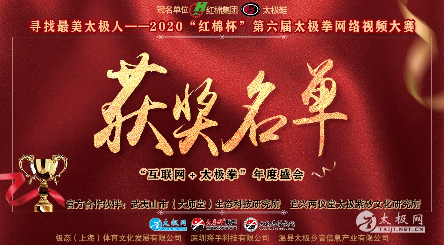 为积极贯彻落实国家十四部委《武术产业发展规划(2019-2025年)》,进一步推广和普及太极拳,弘扬太极文化,提升太极拳国际影响力。同时响应国家体育总局关于居家科学健身、倡导举办网络赛事的号召,为发展全民健身、建设健康中国、提升国家文化软实力做贡献,太极网旗下品牌赛事“寻找最美太极人——太极拳网络视频大赛”再度扬帆起航,聚太极正能量,向世界传播和展示太极之美。视频大赛自2015年至今以连续成功举办六届,本届大赛太极网与红棉集团达成战略合作,2020“红棉杯”第六届太极拳网络视频大赛主题为《太极战“疫”·寻找最美》,本届大赛参赛规模激增至3000余人,参赛项目达2000余个,集体项目达130余个,规模和影响再度刷新赛事历史纪录! 本届大赛全体同台网络展播5天时间,平台累计网络访问量高达8800余万次,400余万次点赞,评论留言高达5万余条,截至发稿,展播平台访问量达2.4亿次,耀眼数据彰显着每年一度的“互联网+太极拳年会”的巨大吸引力和影响力。 为保障赛事的专业性,力求公正与公平,组委会特别邀请各流派名师名家及专业裁判组成专家评审团为选手进行专业打分点评。评委们对每一位选手的参赛作品都进行了反复观看,并给予选手们最专业的点评和中肯的建议。在此,大赛组委会向广大参赛选手、专家评委以及关注大赛的拳友们表示衷心感谢。 大赛根据实际参赛情况充分考量不同项目的分组情况,针对个别项目参赛人数较少情况进行反复研究进行取舍和合并。评审标准主要为技术分100分,网络展播人气及影像水平各10分,综合得分排序后并按比例设奖。 特别提醒: 专家评语限选手本人获取,获取方式:关注微信公号“太极拳”cntaijiwang,通过底下对话框输入“编号+姓名+电话” 获取,回复时间:8:30-18:00. 1. 依据大赛全体同台展播的网络投票结果,个人录取总票数排名前50和人气排名前50(首页展示排名),集体录取票数和人气前10名颁发“最佳人气团队”。 2. 年度“最美太极人”“最美太极团队”申报及评审工作请联系组委会,届时将在颁奖典礼公布和颁奖,申报通知见太极网或联系组委会。 3. 太极新星”“太极新秀”“传播大使”“形象大使”“榜样人物”“最佳组织奖”“突出贡献奖”“优秀领队奖”“最佳影像奖”等奖项均将在颁奖典礼现场公布并颁奖,具体事宜联系组委会咨询。 4. 大赛颁奖典礼时间待定,详见太极网通知。 现将大赛获奖名单公布如下(排名不分先后) 中年组陈式太极拳一等奖 669柴永红 124欧阳瑰缃 753沈伍妹 699张云丽 1919李淑华 83刘小女 859刘 林 1743孔 涛 498青 龙 1079刘东文 1883赵 勇 1526张 红 1884王林广 488曾旭东 392胡广礼 869唐义鹏 911马延军 950卢 飞 651朱秀菊 934万 霞 51杜东东 416倪庆多 1772郑良锭 672常国栋 2002冯淑萍 1070田 月 495秦 晶 915龚 萍 409张海松 610赵年俊 596李传涛 194曾仰君 1282陈 奕 658吴 超 1885孙建亮 516田茂斌 1232陈茂伟 1711董卫星 818张 磊 883宋咏梅 741银永康 1072张庆华 1619谭清山 1530马兰琴 419刘永桂 90李文俊 61许志达 637卢继红 1061史振捷 48周 兰 27居 冉 245郑光连 1322陈惠发 2192黄文德 1438刘永侠 887刘 涛 604赵元峰 1607李祥松 1261唐 华 1430尹培莹 932陈生林 576宋 蕾 1550杜花珍 613郭兴山 845杜国兴 1605王炯峰 56谭景铭 52陈德海 1293胡晓宁 1431张雅琴 888胡光惠 683景晓兵 1420黄惠玲 1794赵 辉 777孟昭君 1288范亚军 1899王开祥 693原金梅 80黄坤星 586李在山 1659王振鸿 1653刘 佳 540岳航洮 593陈福云 1874陈小晖 402杨小兵 291杨健 566刘 伟 2185姜福全 1386罗静萍 1191舒贵子 1698李 兵 26陈利兵 785陈民华 848彭爱桂 410张海松 53贾文艳 1219翟恩喜 643许 峰 1509费 群 1617刘自栋 783王战英 921何志雄 652张艳丽 737程东辉 1392张秀芬 630吴保国 597孙福元 1906杨新改 185胡 燕 192泰有家 924任孝杰 1512周云霞 678李仕彬 600杨庆亮 2166方续燕 1699萧劲松 1802李俊英 1440鲍 水 1220董廷秀 28居 冉 1234王向青 922李红卫 1366李 倩 886刘 涛 1925何嘉锋 2197史德华 840王学成 502蔡宽畅 1263黄利雄 879邓霞 676车永法 249陈凤 59肖家滚 1231 陈茂伟 1828王晖霞 1985何昊繁 2147龚舒蓉 1247欧燕惠 1667陈义 394陈振 562邱冬根 1503秦凤来 1241王艳玲 1439王素方 1597蔡两均 1708李明月 3赖福财 1714李全民 2150赖荣东 1264王蔓 1821程志楷 1541刘大鸣 1266林兆章 881李昭红 1845唐垦林 2162钟珺 中年组陈式太极拳二等奖 370周志刚 1793孟青云 833朱晓红 1205李莲英 200安健 1295毛玉太 268邓亮 2188胡晓樱 1587姚风奎 60于泓 1922冯春仙 1581江小英 1390张红兵 382李金思 5赖林伯 2158许佐万 353王坤林 1575范军 1523王自有 1387徐金莲 615李洪才 501金中举 1663李红 1769屠天兵 1901刘军卫 1354郭淑明 1661仇丽 352李元坤 1748段志容 680解培成 389朱全英 931夏世明 820王芳 252尹贤 700朱丐忠 897吴世珍 1636邹翠利 1035胡振强 121黄文来 591朱四平 1405梁健好 63刘丽梅 1940周宏伟 1701宋艳敏 1806班艳琴 1804李刚 1788卢济富 1679李新萍 40高巧玲 2153赖瑞清 390董秀梅 812刘元枝 1262周军 1226郭保生 529任来友 1198涂巧霞 1371蔺宝英 1674韩秀菊 269龚保勤 1228王瑞丰 2180王同祖 1074胡江勇 1760杨国庆 24吴立成 885罗玉容 73张敬芝 1767江志友 1370李大康 1766钭利平 1920陈兴舫 889朱林香 1586熊敏 75邱北川 1650陈树杰 1744刘晓玲 34吴振亚 1001叶冯飞 365郝占斌 1381索忠英 1599孙海霞 701朱丐忠 1879赵改勤 1629许永革 44韩国良 242钟林妹 896王晓丽 803胡素
