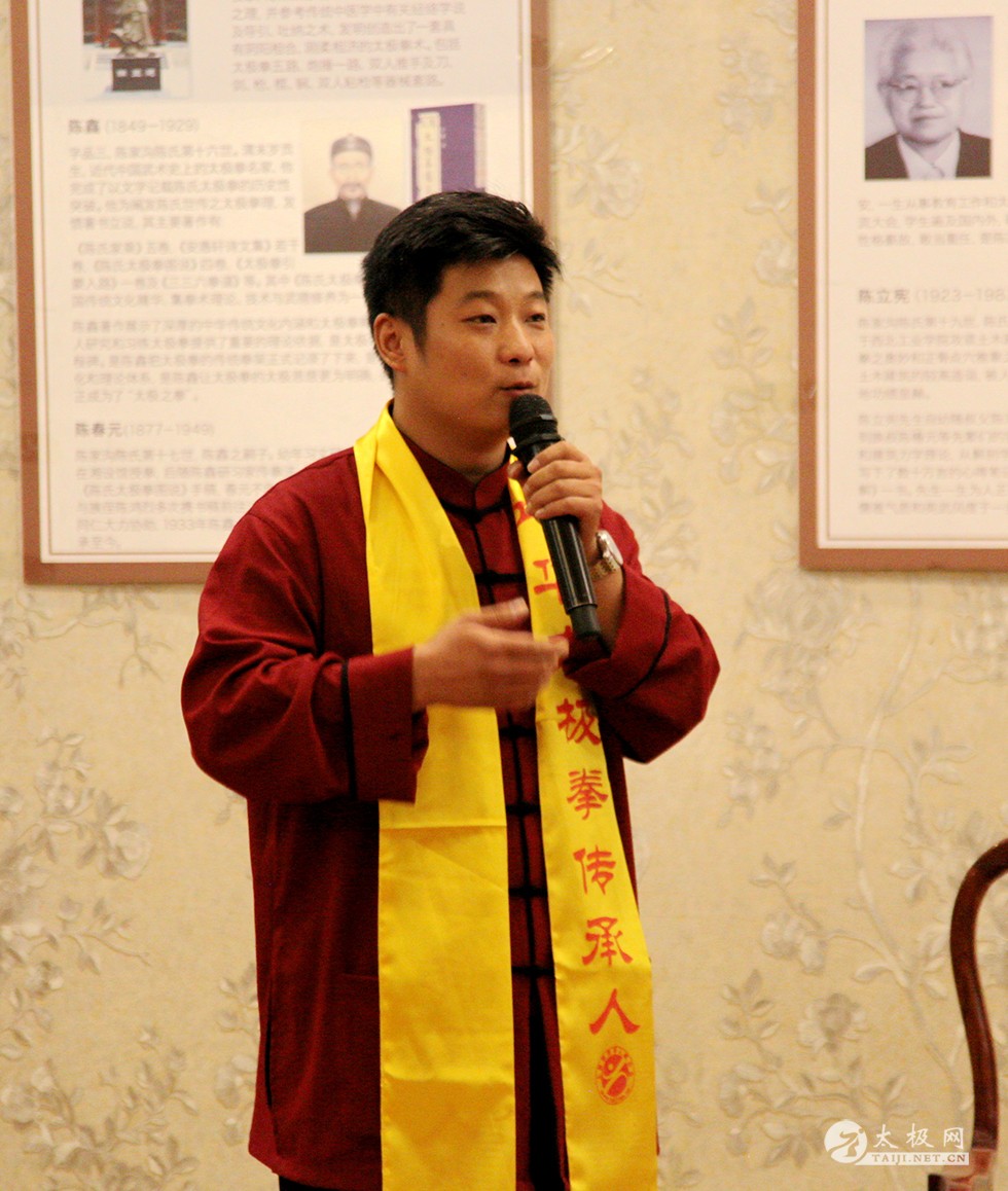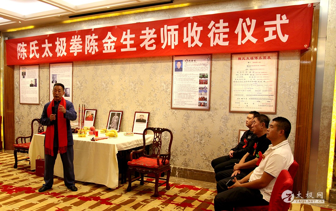(太极网报道)9月6日,陈氏太极拳第十二代传人陈金生先生的收徒典礼在陕西省榆林市高新技术产业园区明珠大道世纪精华大酒店4楼精华厅隆重举行。袁从仁、林霞、吴西朝、张怀国、刘菊梅、艾阳、张新磊、张东升、郭凯、杜炜、蒋玉玉、姚云尧、姚云翔、王艺博等14名太极爱好者正式拜入陈金生老师门下,承担起传承、弘扬太极拳的责任。收徒仪式由王重彬主持。 榆林市城市管理综合行政执法局榆阳分局朱兆隆局长、榆林市体育局竞训科张振奎副科长、榆阳区教体局办公室刘志峰主任、子洲武协协会主席艾绳奋等领导应邀出席本次仪式。 陈金生是陈氏太极拳第十二代传人,现任西安陈鑫太极拳法研究会副会长。从小受深受父亲的影响对太极拳产生了极大的兴趣。先后师从父亲陈绍德,族姑,陈立清,族叔,陈东山,学习陈式太极拳,由于德才兼备勤学苦练,深得师傅真传,较为系统全面地掌握了陈氏太极拳小架一路,二路炮捶,太极单刀,太极剑,春秋大刀等。武术姿态舒展大方,步法轻灵稳健,动作行云流水,刚柔并济。多年来潜心钻研太极拳理论,积极参与陈式太极拳的推广和发扬。 收徒仪式现场 拜师仪式遵循传统,简洁庄重。师父带领弟子们祭拜了先祖,告慰祖师收徒授艺,香火有继,传承有序。众弟子表示今后定当谨遵师训,恪守门规,勤勉参悟,刻苦研练,为太极拳的发展和传承贡献自己的一份力量。到场众人共同见证了这一美好而又庄严的时刻。 陈金生老师训话 陈金生老师告诫新入门的弟子要够恪守门规祖训,认真习练太极拳,用心去体悟太极文化,努力成为合格的太极拳传承人,为传播和弘扬太极拳文化作出自己应有的贡献。 新入门弟子代表郭凯发言 子洲县武术协会主席艾绳奋致辞 见证人子洲县武术协会主席艾绳奋在致辞中高度称赞陈金生老师德艺双馨,对拜师弟子寄予厚望,希望大家肩负起太极文化传承的责任和担当,为太极拳事业的发展做出自己的应有贡献。 新入门弟子与师父师母合影 太极拳表演 陈金生:陈式太极拳小架 本站编辑:明远 |
