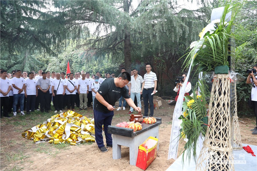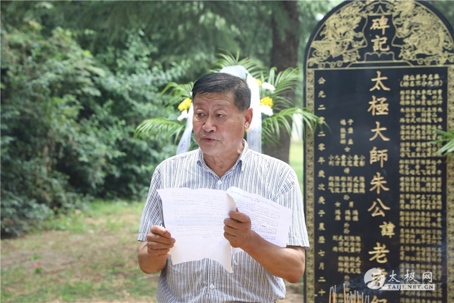 (太极网讯)2020年9月14日,太极拳发源地温县陈家沟太极拳祖祠内一片庄严肃穆,来自全国各地的朱老虎弟子传人两百余人相聚太极圣地,共同参与一代太极拳大家朱老虎先生逝世三周年暨太极拳祖祠名人陵园立碑纪念活动。众人追思缅怀,祭拜太极拳始祖和以朱老虎为代表的历代先师,表达敬仰和感恩之情。 从左至右:范小涛、陈景元、刘洪奇、马金婷 太极网总编李超主持仪式 温县太极拳武术文化管理中心副主任范小涛、陈家沟村党支部书记陈景元、太极网创始人刘洪奇、温县武术协会秘书长马金婷以及及来自全国各地的朱老虎弟子传人代表们出席活动,太极网总编李超主持仪式。 弟子传人代表陈飞、陈超、朱峰、曹立坤敬献花篮 祭拜太极拳始祖陈王廷 祭拜太极拳始祖陈王廷及历代先师仪式前,由朱老虎弟子传人陈飞、陈超、朱峰、曹立坤代表敬献花篮。朱老虎之子、朱老虎太极功夫总院院长朱堡垒代表全体人员进行上香、跪拜、行叩拜礼,并带领朱老虎弟子传人们共同行鞠躬礼,表达缅怀和感恩之情。 温县武管中心副主任范小涛致辞 陈家沟村党支部书记陈景元致辞 温县太极拳武术文化管理中心副主任范小涛、陈家沟村党支部书记陈景元分别讲话,他们对朱老虎先生给予高度肯定和褒扬,称赞朱老虎先生是一代太极拳大家,为太极拳传承和传播做出了卓越贡献,寄望大家继承和发扬朱老师精神遗志及其太极技艺,为弘扬太极文化而奋斗。 朱老虎之子朱堡垒致感谢词 朱老虎太极功夫总院院长朱堡垒致感谢词,他向领导嘉宾以及同门师兄弟及传人们的到来和参与表示诚挚的感谢。他说,父亲朱老虎是他永远的榜样与骄傲,父亲一生致力于研究和传播太极拳,父亲不在的日子里,他会以身作则,勤勉克己,带领朱老虎太极体系团结一致,为弘扬推广太极拳积极担当和作为。 祭拜王雁宗师 祭拜太极拳始祖陈王廷仪式结束后,全体人员移步至太极拳祖祠太极名人陵园王雁宗师碑前进行祭拜,王雁宗师弟子代表曹二柱向王雁宗师上香并行叩拜礼,太极拳薪火传承代代有序,朱老虎师承其外公王雁宗师,众人向王雁宗师行礼,以感念宗师的太极拳传承功德。 揭碑仪式 在太极拳发源地温县陈家沟,太极拳祖祠太极名人陵园是太极拳历代先师安息的地方,是太极拳传承和发展有着巨大成就和贡献的历代大师们安息之地,是天下太极人祭祀缅怀的圣地。陵园立碑是对先师朱老虎先生的高度肯定与褒扬,更是弟子传人们的荣耀,并以此永恒地纪念和缅怀。 王雁宗师祭拜仪式礼毕后,众人纷纷移步至朱老虎纪念碑前,晋城市太极拳协会名誉会长张中原,武汉卓刀泉古寺住持法云法师,武汉禅武太极总会名誉会长、一元堂集团董事长蔡凯,朱老虎太极功夫总院院长朱堡垒等人共同为朱老虎纪念碑揭幕。朱老虎弟子传人们向先师墓碑集体三鞠躬,上香祭拜,追思缅怀。 众人祭拜先师朱老虎 朱老虎大师弟子代表、宝鸡市太极拳协会主席张中林致辞 朱老虎弟子代表王杰民致辞 随后,朱老虎大师弟子代表、宝鸡市太极拳协会主席张中林和弟子代表王杰民分别致辞,他们表示生感恩师父的授拳之恩,今日缅怀师父,要缅怀、学习他的崇高品格,同时要继承好恩师高超的太极拳技艺,传承和发扬朱老虎师父的太极拳绝学,让它造福千秋万代,让人们永远铭记师父的美名,与太极拳一样永放光辉! 至此纪念太极拳大家朱老虎先生逝世三周年暨太极拳祖祠名人陵园立碑仪式圆满礼成。树发千枝同根共本,江流万派一脉同源,太极拳薪火传承让朱老虎太极体系凝聚团结,祝愿弟子传人们保持团结,把朱老虎太极拳体系发扬光大! 弟子传人们展演朱老虎太极拳法 本网编辑:小杨 |