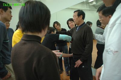 王西安大师向大家讲太极气功王西安大师向大家讲太极气功(王西安、大明、陈端宜)王西安大师在李氏太极功夫院向大家讲课学生体会真气大倒入动作学生体会真气大倒入动作王西安大师(中)与学生合影王西安大师(左)与学生(乔屏夫妇)合影王西安大师带领大家练拳