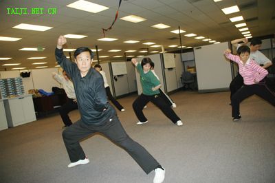 王西安大师带领大家练习青龙出水王西安大师带领大家练习肘底看拳王西安大师带领大家练习倒卷肱王西安大师美国弟子金太阳在辅导学生王西安拳法研究会会长闫素杰女士指导学生练拳王西安大师(中)与学生合影王西安大师在UMN电脑公司带领大家练撇身拳