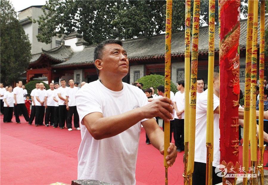 (太极网 讯)太极拳,发源于陈家沟,薪火传承四百年,薪火不息,享誉中外,成为全人类共同的财富。 树高千丈必有根,水流万里必有源。祭祀祖先,追忆先人,是中华民族的传统美德。 陈石岩主持仪式 在场所有人士向太极始祖陈王廷行鞠躬礼 祭祖拜师仪式恭敬庄严,在场所有人士向太极始祖陈王廷行鞠躬礼,秉承不忘先祖教化的传承之道,表达对太极始祖的深深敬仰与浓浓怀思之情。 陈小星宣读祭文 陈小星祭拜太极始祖陈王廷 陈自强祭拜太极始祖陈王廷 陈景安祭拜太极始祖陈王廷 陈氏太极拳弟子分别上香祭祖 合影留念 陈家沟陈氏第十九世太极拳守门人陈小星大师、陈家沟太极拳学校总教练陈自强、陈家沟家族理事会陈景安以及陈氏太极拳弟子分别上香祭祖,再次深切表达对太极拳始祖陈王廷的追溯缅怀之情。 中华民族自古就有礼敬祖先、慎终追远的礼俗观念,祭拜先祖,缅怀先人,对太极拳的传承和发展意义重大。所有太极拳传承人将不忘初心,继往开来,为太极拳在世界范围内的发展和传播贡献力量,将太极拳发扬光大! 本网编辑:小杨 |