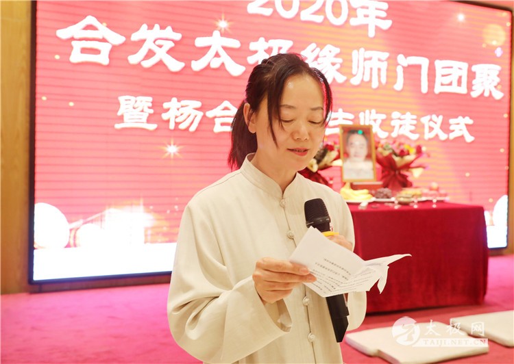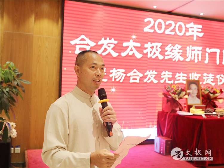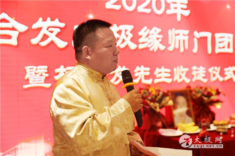 | (太极网 讯)太极拳薪火传承代代有序,近年来,陈氏太极拳马虹支系在众多十二代优秀传承人的引领下发展日益壮大,成为太极界极具代表性的团队体系,被拳界誉为“陈拳马家军”。继虹发太极书院启幕暨杨合发先生习武四十周年庆典活动成功举行,2020年10月4日,合发太极缘师门团聚暨杨合发先生收徒仪式于石家庄隆重举行,众多武术界同仁应邀参与,杨合发老师同门师兄弟以及十三代传承人等两百余人共同见证这一庄严时刻。 缅怀先师 作为“陈拳马家军”的优秀传承人和领军人物,杨合发老师功法兼备、德艺双馨,诲人不倦、桃李满天下,是享誉拳界的名师名家。本次拜师仪式有来自江西、石家庄、吉林、山东、河北、辽宁等地的9名太极拳爱好者拜入杨合发老师门下,分别是傅开娇、封克英、黄玉宾、任立新、徐庆明、夏丽娟、于孝礼、刘晓红、钟震晔,另有吴玉英、杨桂云被收为记名弟子。 原河南温县体育局局长原福全及夫人王钻女士,石家庄市陈氏太极拳专委会名誉会长、马虹先生之女郭彦芬,河北省武术协会特约顾问、石家庄市武术协会名誉主席赵学敏,太极网总编李超,马虹优秀弟子传人、陈氏太极拳第十二代传承人杜国强、葛明、吴占超、陈荣庆、冯贵宏、郑滨、郝巍、郭振建、高建国、刘辉、张瑞峰、陈彦胜、冯占文、钟凌基、郑洪昌等嘉宾出席活动。 杨合发致辞 收徒仪式开始前,杨合发携夫人徐月芬向太极拳历代先师行礼祭拜,告慰恩师纳新传承,表达追思和感恩之情,祈愿陈氏太极拳马虹支系传承有序、蓬勃发展。杨合发先生致辞感谢嘉宾的到来,他表示拜师只是起点,学好太极拳,努力传承是每个传承人义不容辞的责任,他希望新入门弟子能够恪守门规祖训,以马虹精神为引领,认真习练太极拳,忠实继承陈氏太极拳,真正肩负起传承太极拳、弘扬太极文化的历史使命,将中国文化发扬光大,让更多的人享受到太极拳带来的健康和幸福。 郭彦芬致辞 陈氏太极拳第十二代传人、石家庄市陈氏太极拳专委会名誉会长、马虹先生之女郭彦芬希望新弟子们谨记师门规训,弘扬师门精神,专一持恒,在继承、传播和弘扬传统陈氏太极拳的道路上扎实前进、努力奋斗。 原福全致辞 原河南温县体育局局长原福全向杨合发先生及入门弟子表示祝贺,对杨合发老师给与高度评价和褒扬。拜师礼仪代表着中国尊师重道的文化传统,希望新弟子们秉承马虹先生的传承理念,在杨合发老师及众多十二代传承人指引下,继续努力练习、体悟太极文化,发扬光大马虹精神。 李超致辞 太极网总编李超代表太极网、大拳师联盟、太极拳传承网对杨合发先生喜收爱徒以及众位十三代传承人加入太极拳传承谱系表示祝贺,他高度称赞马虹支系是陈氏太极拳界乃至太极拳界极具代表性和影响力的一支队伍。杨合发老师知行合一,兼具品格、武技、功法,是真正的太极拳明师。正是在杨合发先生及众多十二代传承人的努力下,“陈拳马家军”不断继承创新、生机勃发,马虹精神得以光耀拳坛。 主持人吴占超 马虹弟子代表、陈氏太极拳第十二代传承人杜国强向新弟子宣读师门规训 弟子宣读拜师帖 新弟子向师父、师母敬茶 仪式由马虹弟子、陈氏太极拳第十二代优秀传承人吴占超主持,遵循传统,简洁庄重,陈氏太极拳第十二代优秀传承人杜国强向新弟子宣读师门规训。新入门弟子郑重宣读拜师申请,依次向师父、师母行拜师礼、递交拜师帖、敬拜师茶、师父回帖,9名弟子在师父杨合发的带领下叩拜行礼,缅怀马虹宗师,以示太极薪火传承,在众人的见证下,收徒仪式圆满礼成。 刘志刚发言 弟子代表刘志刚发言表示,茫茫人海得遇良师深感荣幸,新弟子的加入意味着陈氏太极拳马虹支系不断壮大,在今后的学拳生涯中,要努力学习,认真钻研拳理拳法,以忠诚继承、热忱传播为己任,一丝不苟的学习太极拳,团结协作,共同进步。 任立新发言 新弟子代表任立新分享了与恩师杨合发的结识经历,赞扬了杨合发先生为人师表、勤奋善悟、德艺双馨的优秀品质,期望跟随恩师刻苦学拳、精研力践,热忱传播、传承国粹。 颁发证书 随后杨合发老师及太极网总编李超共同向一百余名陈氏太极拳第十三代传承人颁发“太极拳传承谱系工程传承入谱证书”。太极拳传承谱系工程是2008年由太极拳发源地温县县委、县政府主导发起中华太极拳传承谱系工程项目,由太极网负责执行,并创立官网太极拳传承网及手机客户端,谱系工程秉承“书太极拳史·立传承人传”的宗旨,最大限度地梳理了各流派太极拳传承关系和脉络,利用纸质建档结合现代互联网技术搭建大数据库,建立了图文视频丰富的网络展示查询平台。数据接入中国非物质文化遗产数字化保护工程,为太极拳这一非物质文化遗产的保护和发展提供最强有力的支撑。 龙海发言 张和平发言 陈氏太极拳第十三代传人代表龙海、张和平上台发言,表达了对恩师杨合发言传身教的感激之情,认为跟随杨合发老师不仅仅学习拳理拳法,更认识到太极拳对人生带来的影响,活到老、学到老,未来将继续学习,认真体悟太极拳,用实际行动去推广太极拳让更多的人从中受益。 太极薪火传承不息,不忘初心砥砺前行。新弟子的加入为传统陈氏太极拳马虹支系未来发展注入了新生力量,期望所有太极拳传承人齐心协力,共谋发展,忠实秉承马虹精神、弘扬马虹