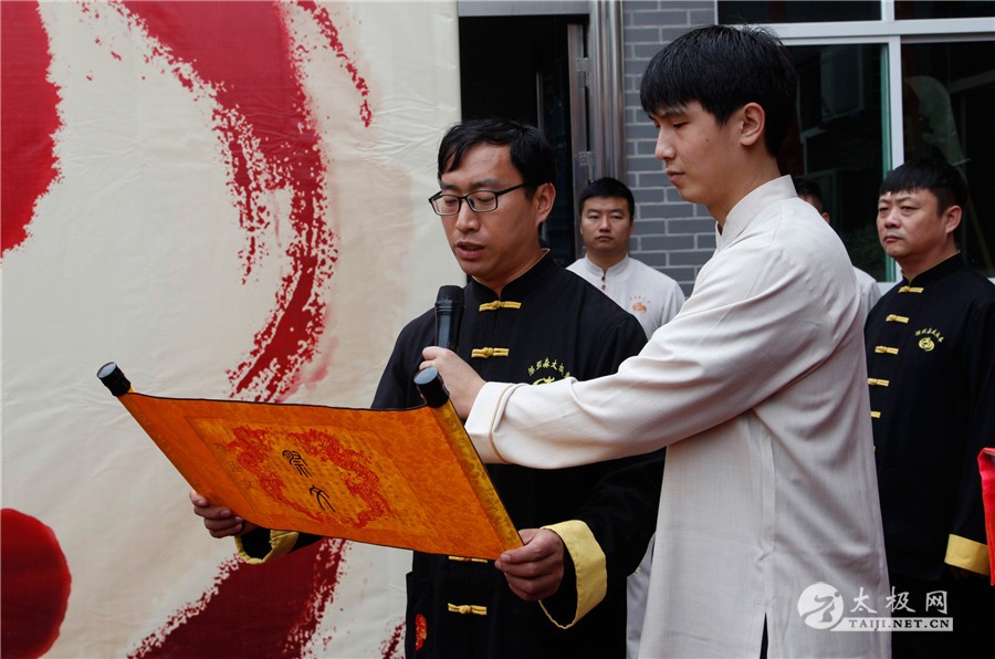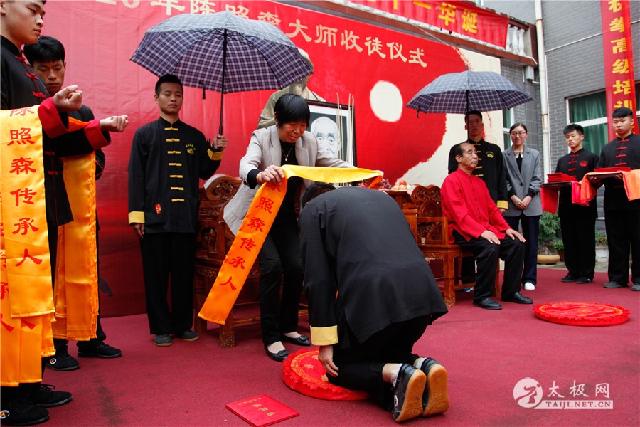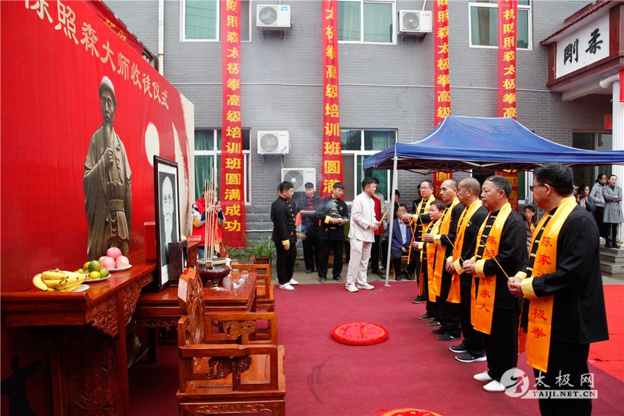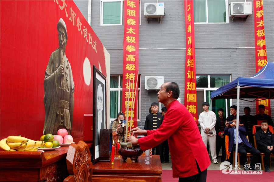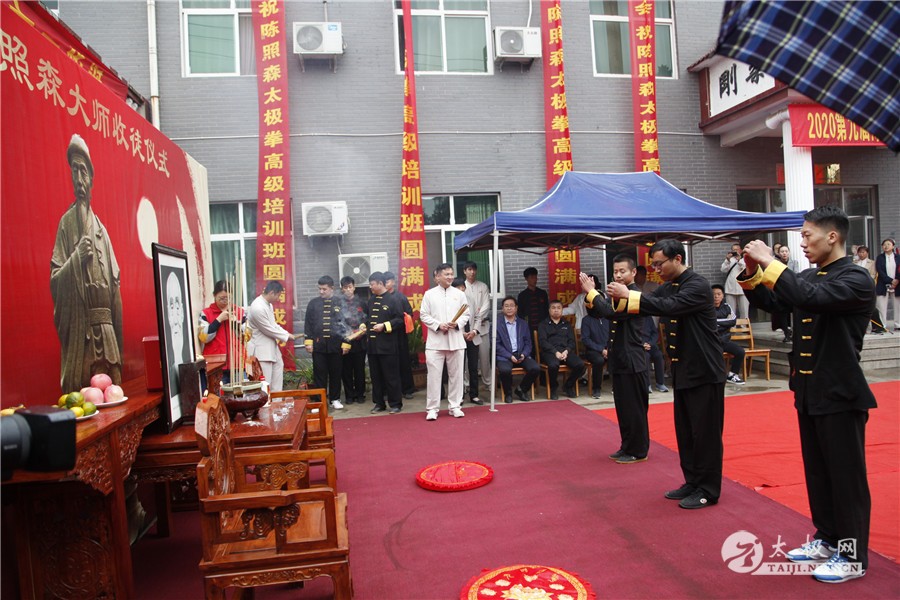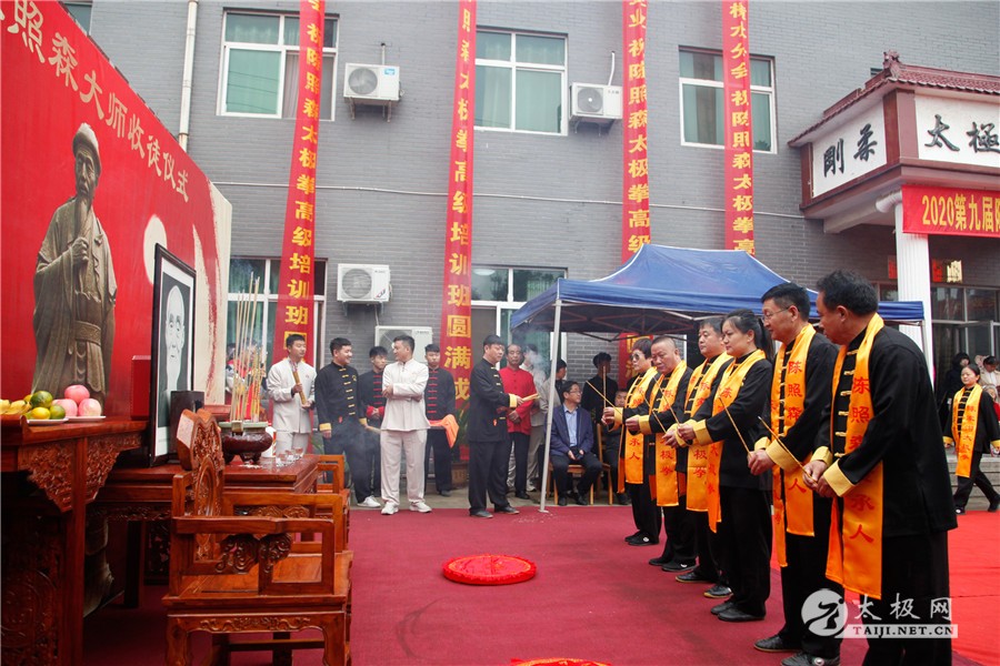 (太极网报道)根源圣地陈家沟,薪火传承代代兴!2020年10月5日,太极拳发源地温县陈家沟迎来一场太极盛事,恰逢第九届陈照森太极拳高级培训班结业之际,非物质文化遗产陈氏太极拳代表性传承人、陈式太极拳第十一代传人、陈家沟西北拳社第五代传人陈照森大师的收徒仪式于陈家沟太极拳功夫学校隆重举行,在百余名陈照森太极拳体系弟子传人见证下,陈金鳌、丁恒社、张小刚、吴凌云、晏传铭、霍强、朱建臣、段民、乔宇佳、黄文华、陈尚平、宋晶、杨莉、黄小春、李红春等15名来自全国各地的太极爱好者通过传统拜师仪式拜入陈照森门下,正式成为陈式太极拳第十二代传人,承担起传承太极拳、弘扬太极文化的使命和责任担当。 出席嘉宾 见证人赵地生签字 活动受到了各界关注和支持,出席活动的领导及嘉宾有:温县政协副主席严双军、赵堡镇镇长刘虎臣、陈家沟景区管理局局长刘中原、温县武术协会主席张胜利、温县武术协会秘书长马金婷、易德太极文创公司总经理陈皂罗、陈家沟村委委员陈冲与陈建飞、陈家沟陈氏家族理事会主任陈一华、 陈照森太极拳研究会执行会长赵地生、陈氏家族理事会陈海法、太极网总编李超、中太网总编张邦坤等。 陈照森上香 祭祖仪式现场 陈志伟宣读祭祖文 主持人 祭祖拜师仪式恭敬庄严,陈氏太极拳第十二代传承人、陈家沟太极拳功夫学校执行校长陈志伟宣读祭祖文。陈氏太极拳第十一代传承人、陈家沟太极拳功夫学校校长陈照森向太极拳始祖陈王廷及历代宗师上香敬酒,并带领全体人员鞠躬致敬,缅怀先辈创拳之辛劳,感念先师传拳之恩德。 新入门弟子 新入门弟子宣读拜师贴 收徒仪式 刘明龙宣读门规戒律 弟子代表霍强发言 陈式太极拳第十二代传人、陈照森太极拳研究副理事长刘明龙宣读门规戒律宣读门规戒律。新入门弟子代表霍强表态发言:今日有幸拜入陈照森大师门下,将肩负起传承和传播太极拳之责任担当,更加认真学习太极拳,传承好西北拳社的拳法与精神!以弘扬太极文化为己任,为太极拳的传播发展贡献力量。 陈照森大师向新入门弟子训诫:拜师只是成为太极拳传承人的开始,对师父和弟子都提出更高要求,要肩负起责任与担当,需德艺兼修,时刻以陈家沟太极拳传承人的身份要求和完善太极修行。希望弟子们练好拳、教好拳、做好人,为太极文化传播与发展做出自己应有的贡献,传播健康造福社会。 陈一华致辞 温县政协副主席严双军见证收徒仪式并讲话,他首先向陈照森大师喜收高徒及新弟子得拜良师表示祝贺,对陈照森大师多年来为太极拳事业发展所做出的成绩与贡献给与高度肯定,寄望大家拜师后能够更加钻研太极拳,共同为太极拳的传播推广贡献力量。 众弟子依次上香 合影留念 责编:李宁 |