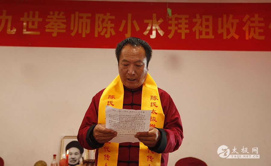 (太极网 讯)2020年10月7日,陈式太极拳第十一代传人、太极名家陈小水先生开山新徒,收徒仪式于太极拳发源地陈家沟隆重举行。胡一华、栾喜军、董国利、王凤臣、王瑞东、李文堂、王强、侯新瑞、刘伟、刘虎军、刘其芳11名太极拳爱好者拜入陈小水老师门下。正式成为陈式太极拳第十二代传人,承担起传承太极拳、弘扬太极文化的使命和责任担当。 温县武术协会秘书长马金婷,太极网创始人、太极拳传承人联合会主席刘洪奇、温县武术协会副秘书长陈冠军,陈家沟陈氏家族族长陈景安、陈家沟陈氏家族理事会主任陈一华,陈家沟太极拳名家陈立法等嘉宾应邀参加收徒仪式。 马金婷致辞 温县武术协会秘书长马金婷对陈小水老师开山收徒表示祝贺,称赞其练拳刻苦,拳艺精湛,希望新入门弟子能够谨记师父教诲,认真学拳,承担起传承太极拳、弘扬太极文化的使命和责任担当。 刘洪奇致辞 “三千年读史,不外功名利禄;九万里悟道,终归诗酒田园”,是太极网创始人刘洪奇先生对每一位新弟子的寄语,希望太极拳能够一直陪伴大家,祝福大家。 见证人陈景安致辞 陈小水训话 他希望新入门弟子能够恪守门规祖训,认真习练太极拳,将陈式太极拳忠实继承,真正肩负起传承太极拳,弘扬太极文化的历史使命。 弟子代表发言 他希望新入门弟子能够恪守门规祖训,认真习练太极拳,将陈式太极拳忠实继承,真正肩负起传承太极拳,弘扬太极文化的历史使命。 收徒仪式由陈石岩主持 大树之所以枝繁叶茂因为根深,大河之所以一泻千里是因为源远。太极拳经历了历代拳师呕心沥血的传承和发展,才有了今天的太极盛世。 上香 敬酒 递交拜师贴 回赠传承人证书 扣头谢师恩 仪式遵循传统,简洁庄重。新入门弟子郑重宣誓拜师申请,依次向师父、师母行拜师礼、递交拜师帖、师父回帖并颁发传承人证书,11名弟子在师父陈小水的带领下叩拜行礼,缅怀祖师,以示太极薪火传承,在众人的见证下,收徒仪式圆满礼成。 师父与弟子们合影留念。 收徒仪式结束后,师父带领弟子们游览陈家沟太极拳祖祠。 祖祠门前合影 陈王廷铜像前合影 祖师堂行叩拜礼 |