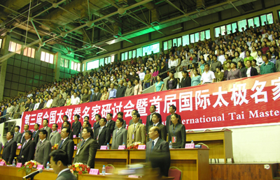 陈家沟武术院执行院长王战军做精彩表演 2006年5月26日——28日,温县体育局局长张胜利、武术科科长王东方、太极名家、陈家沟武术院执行院长王战军携弟子王巍应邀参加了在安徽省马鞍山市举办的2006年中国·马鞍山“昭源杯”国际太极拳名家研讨会暨首届国际太极名家论坛,王战军应大会邀请做了陈式太极拳套路和太极内功丹田弹抖等精彩表演,引起了与会太极拳爱好者的广泛关注。
