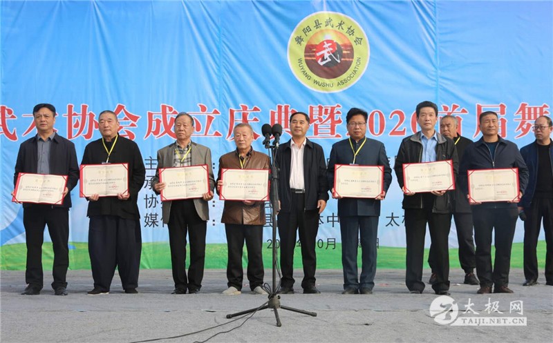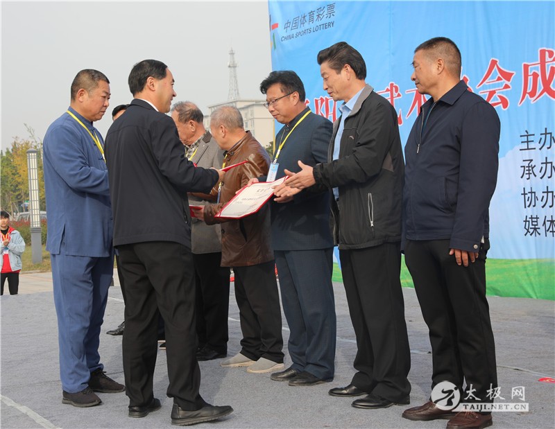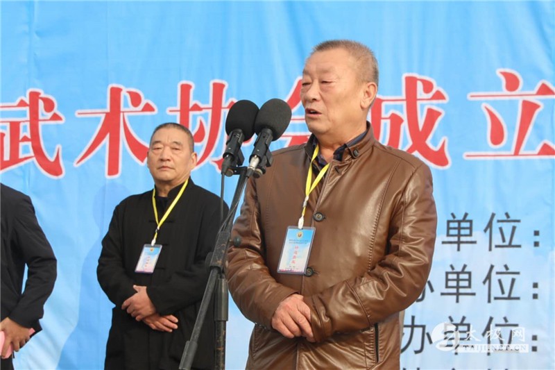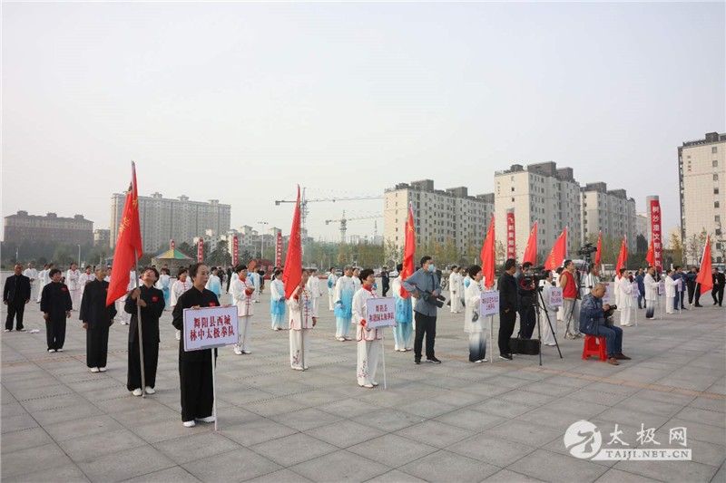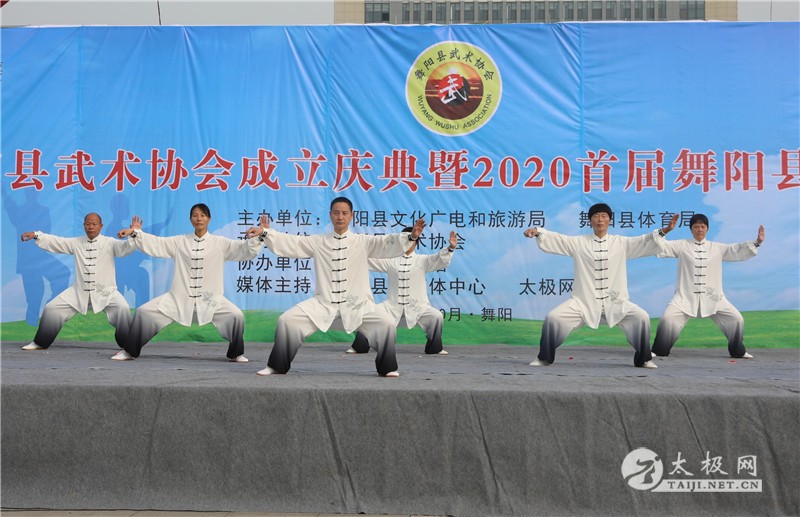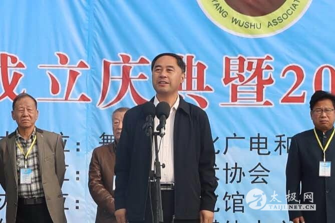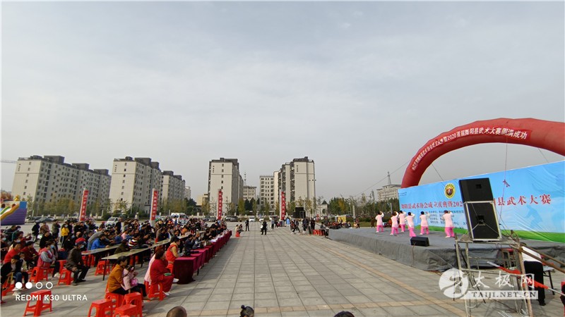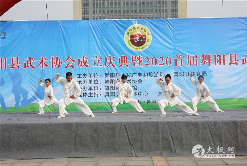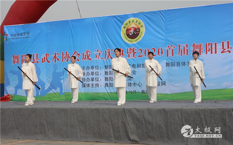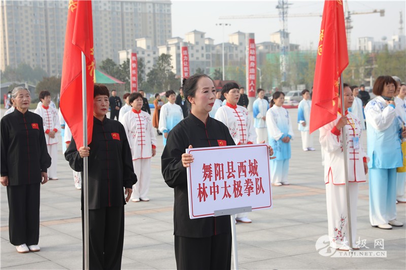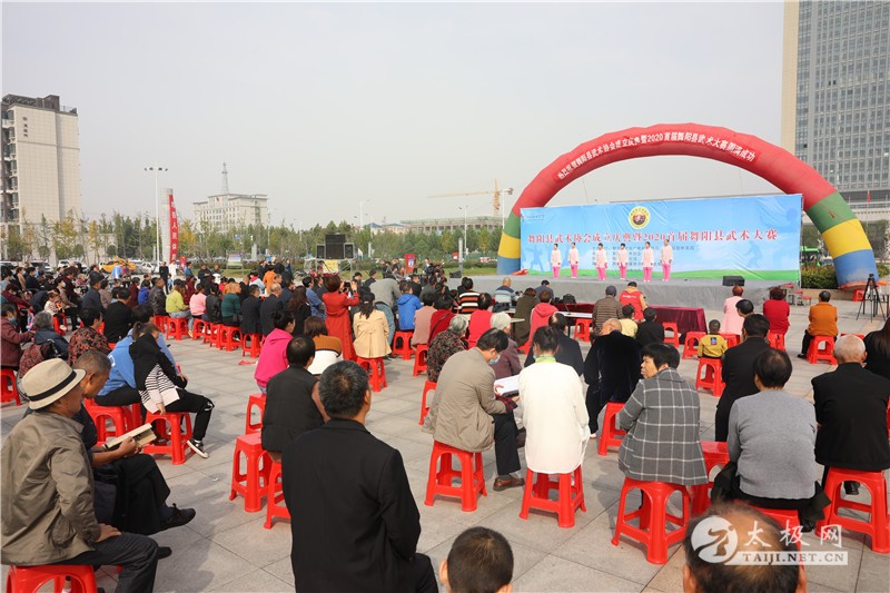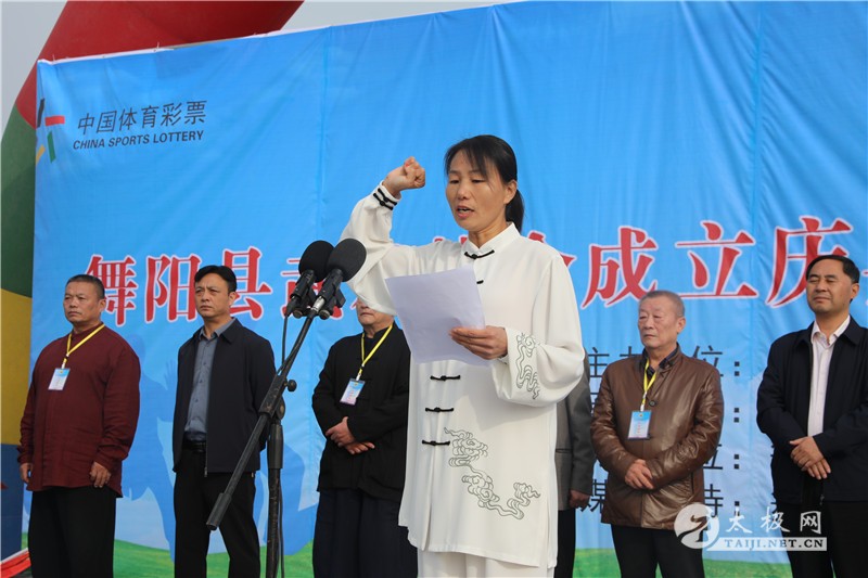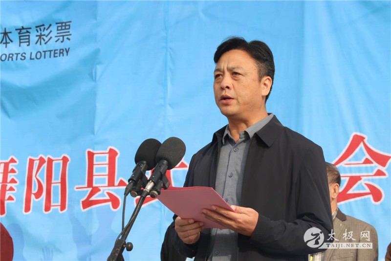 (太极网讯)为认真贯彻落实全民健身计划纲要,推动舞阳县武术事业健康发展,为广大武术爱好者提供展示和学习交流的平台,10月18日,舞阳县武术协会成立大会暨首届舞阳县武术大赛隆重举行。活动由舞阳县文化广电和旅游局、县体育局主办,舞阳县武术协会承办,舞阳县文化馆协办,舞阳县融媒体中心、太极网作为媒体支持单位。 出席仪式的领导嘉宾有:舞阳县人民政府副县长宋春华,河南省太极拳协会副秘书长、温县庆州武院院长陈有华、平顶山市意拳(大成拳)研究会会长董春野、漯河市武术协会主席李洳波漯河市武术协会副主席、陈氏太极拳研究会会长卢志友,漯河市陈氏尊古太极拳协会名誉会长卫德安,舞阳县人民政府办公室副主任张宏,舞阳县文化广电和旅游局局长姜新克,舞阳县武术协会名誉会长陈广山,本次大会裁判长、温县武术协会副秘书长陈冠军,舞阳县文化广电和旅游局副局长王宏伟,舞阳县武术协会会长秦向红,舞阳县武术协会名誉会长焦明喜。仪式开始前,全体起立,奏中华人民共和国国歌,整个会场,庄严肃立。