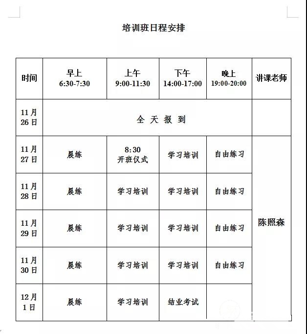 各太极拳协会、社团及各位拳友: 陈照森:陈家沟陈氏十九世、太极拳第十一代嫡宗传人、陈家沟西北拳社第五代掌门人、陈氏太极拳代表性传承人,其春秋大刀堪称一绝,素有“大刀王”之称,加之其太极拳术功夫纯正、功力深厚、更有当代“关公”之美誉。其高祖陈花梅,为陈长兴四大弟子(陈花梅、陈花桂、陈耕耘、杨露禅)之一,拳史上记载其“功夫颇纯、纵横一时”,并创办了陈家沟西北拳社。 应广大拳友的强烈要求,决定在陈家沟举办第九届陈照森太极拳高级培训班之春秋大刀班,由“大刀王”陈照森老师亲自执教,具体事宜如下: 陈氏春秋大刀,亦名“青龙偃月刀”,是陈氏太极器械套路中长兵器的一种, 也是太极拳祖师陈王廷最擅长的兵器之一。因陈王廷公老年长须飘髯,又惯用大刀,故有“赛关公”之称。因三国名奖关羽惯用“青龙偃月刀”,故此而得名。陈氏春秋大刀套路布局合理,上下呼应,左右逢源。它的劈、砍、撩、挂、 斩、抹、戳、拦、挑、刺、推、拖、架等以及舞花等刀法,交代的清清楚楚,干净利落。却有“大刀如猛虎”的风格。因大刀是兵器中的大型重武器,须有充足饱满的内气和腰腿臂力,才能运用自如,劈、砍、推、斩、翻、滚、盘、压,无不得其自然。因大刀杀伤力颇大,被誉为“百兵之帅”。 陈照森的春秋大刀在太极拳界独树一帜,不仅功夫纯正、深厚,更是威武雄壮,灵活自然,颇具灵性。行家评论:人家的春秋大刀耍成这个样子,“大刀王”名不虚传。 活动内容: 一、陈照森大师春秋大刀培训班 1、培训时间:11月27日-12月1日,11月26号报到(即日起开始报名,限10人) 2、培训地点:陈家沟 3、培训学费:3000元 报名费100元,陈照森大师弟子、再传弟子优惠2000元 二、食宿费自理: A普通标准间+三餐70元/天; B普通标准间(单间)+三餐100元/天 三、联系方式: 地址:河南省温县陈家沟519号 陈家沟太极拳功夫学校 邮编:454865 电话:0391-6419992 6411135 手机:13290702219 E-mail:info@chenjiagou.net.cn QQ:120046842 网站:www.chenjiagou.net.cn 微信公众平台:taijigongfu 四、汇款地址: A:农业银行:中国农业银行焦作分行温县支行 账号:6228 4823 7852 8495 276 户名:陈志伟 B:建设银行:中国建设银行焦作分行温县支行 账 号:6222 8024 8133 1005 393 户名:陈志伟 五、其他事宜: 1、培训期间统一安排住宿、统一着装(费用自理)。 2、请大家提前报名,避免空降。 3、严格培训纪律,实行半军事化管理。 4、培训期间不得将手机、相机及其它设备带入培训现场,更不得拍摄或录音。 5、培训结束后,经考核成绩合格者,将颁发由陈照森大师亲笔签名的结业证书。 特此通知 陈照森太极拳研究会 2020年10月19日 |