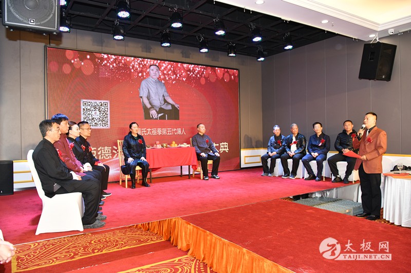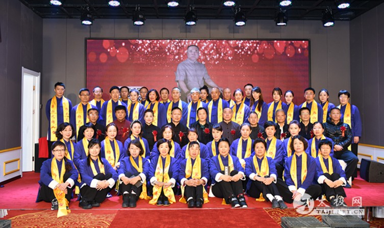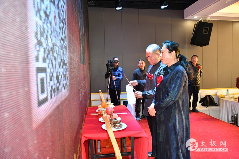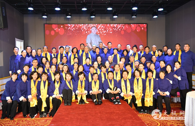 (太极网讯)金秋十月,天高云淡,10月18日,范德治老师第二批收徒大典在大禾酒店举行。来自全国各地的47名新弟子有幸拜入范德治老师门下,成其弟子。 上午11点,大气庄重的收徒仪式正式开始,师父师母首先向杨氏太极各位宗师敬香献礼,感恩先辈。随后,在众位武林前辈以及各方领导的见证下,新收弟子五人一组上台,依次向师父宣读拜师帖、敬茶、行鞠躬礼,师父师母亲自为弟子颁发证书,披挂绶带,合影留念。