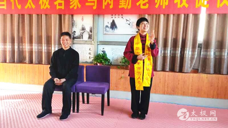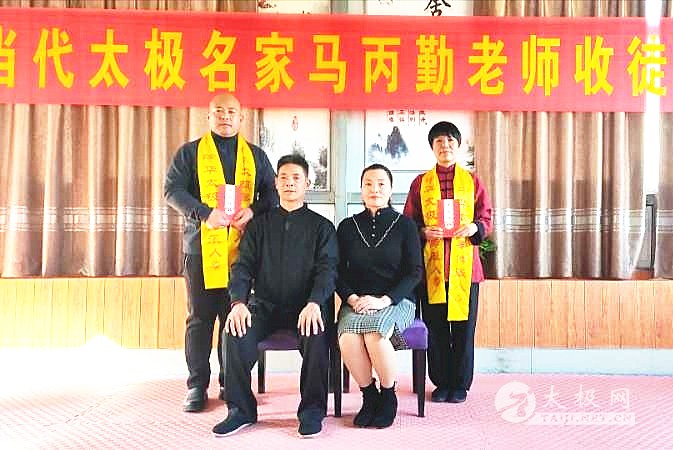 (太极网讯)11月7日,中国当代太极拳名家、2019年度十大“太极拳风云人物”、陈式太极第十二代传人马丙勤收徒仪式于开封市马丙勤太极养生馆举行。本次拜入马丙勤老师门下的有马志强、李洪双这两名优秀的太极拳爱好者。他们顺利通过马丙勤老师的重重考验,正式成为太极拳传承人,肩负起传播太极拳,弘扬太极文化的历史使命。 开封市陈式太极拳马虹拳法研究会理事楚开生主持活动并致欢迎词 新入门弟子上前向师父、师母行鞠躬礼,师父亲自为弟子披挂中华太极拳传承人绶带。随后,新入门弟子依次向师父师母递交拜师贴、行拜师礼、敬拜师茶。 拜师仪式 新入门弟子马志强与师父师母合影 新入门弟子李洪双与师父师母合影 马丙勤老师向新入门弟子训话,希望他们能够恪守门规祖训,认真习练太极拳,用心体悟太极文化,时刻秉持太极拳传承人的风骨,发扬马虹精神,为太极拳的推广和传播做出积极的贡献。 师父马丙勤训话 新入门弟子马志强、李洪双依次发言 两位新弟子表示定当遵循师父教诲,练好太极拳,做好太极人,不辜负师父的信任,将马虹精神发扬光大,为太极拳的传播和推广不懈努力。 新入门弟子与师父师母合影 马丙勤弟子杨长青、刘立然、马继红、杨艳莉继依次演练,为本次收徒仪式助兴。