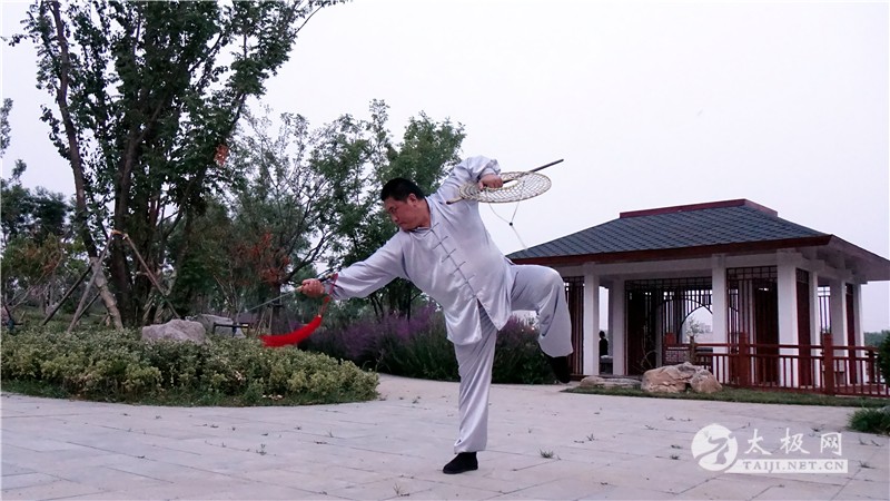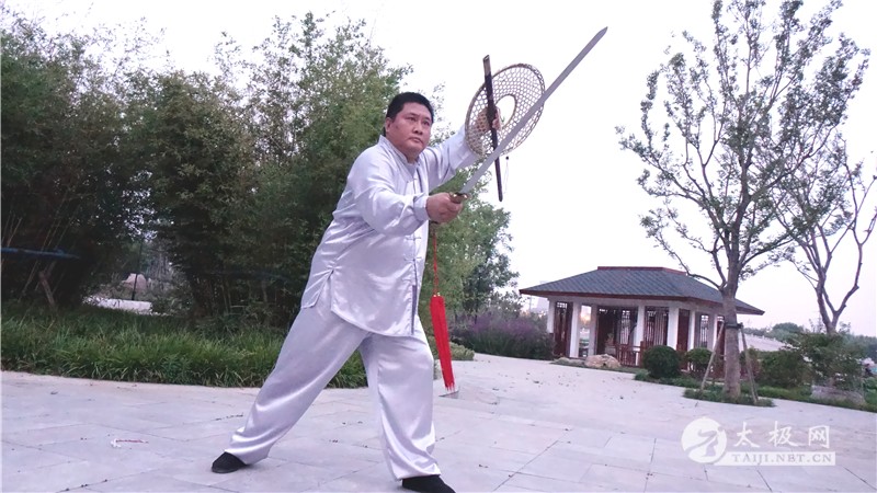 他自幼喜爱体育运动,学生时代曾荣获国家二级运动员、省优秀运动员等荣誉称号;他酷爱中国武术,先后练习过中国式摔跤、南拳等;他有缘结识传统杨氏太极拳第六代传承人郝明之老师,随老师学拳多年,并如愿拜入恩师门下;他授拳多年,学员已遍布全山东省各区县。他就是在2020“红棉杯”第六届太极拳网络视频大赛中荣获中年组杨式太极器械一等奖,并荣膺2020“年度最美太极人”称号的张勇。 张勇太极刀势 张勇的恩师郝明之先生系济南市杨式太极拳研究会会长,自青年时期就拜杨式太极拳第五代传人刘仲桥先生为师,深得到杨式太极拳精髓,是杨式太极拳在济南地区的第六代传人。郝明之先生个人演练和授拳忠实于杨澄甫大师晚年所定型的杨式太极拳大架,注重体会老拳谱的拳理,功夫纯正深厚。著有《杨式太极拳》一书,并将收藏多年的古版《增演易筋洗髓内功图说》一书委托新华出版社进行了全新翻版印刷并在全国新华书店发行,特意附《后记》一篇,以便广大太极拳及健身养生爱好者更好的学习。他性情温和,授拳诲人不倦,深得武林同道的敬重,在五十年代参加济南市太极拳比赛获第一名,所教授的学生遍布全国各地,是济南地区的太极拳名家。 在跟随恩师郝明之练拳的过程中,其中有一件事另张勇印象深刻,那是发生在恩师郝明之庆祝86岁生日时的一件事,张勇与同门师兄弟二百多人相约在济南著明的七十二名泉之一洪范池所在地,也是济南的玫瑰之乡,盆景上水石的产源地平阴同聚一堂为老师祝寿,在游览美景期间,张勇因一块西瓜大小的上水石的价格问题与摊主发生争执,险些动手。第二日,郝明之师父便以此事对他进行了教导,师父说,遇到问题首先要去想如何化解,这和太极推手是一个道理,为这事你跟人家发脾气动手了,这就是顶了,所以你这些年基本功练的不行啊,我们练拳是为了维护正义,传播正能量,只有在需要传播正能量的时候才可以挺身而出。随后郝明之师父又语重心长的对他说:“太极拳的拳理、道理、原理与人生的哲理是相通的,只有取长补短相互运用,人生的境界才能有所提高,人生才会活的更加精彩。”恩师此番话另张勇羞愧难当,终身难忘,恩师的高尚武德、博大的胸怀令人折服,这也使得张勇更加坚定了自己跟随恩师练拳的信念。