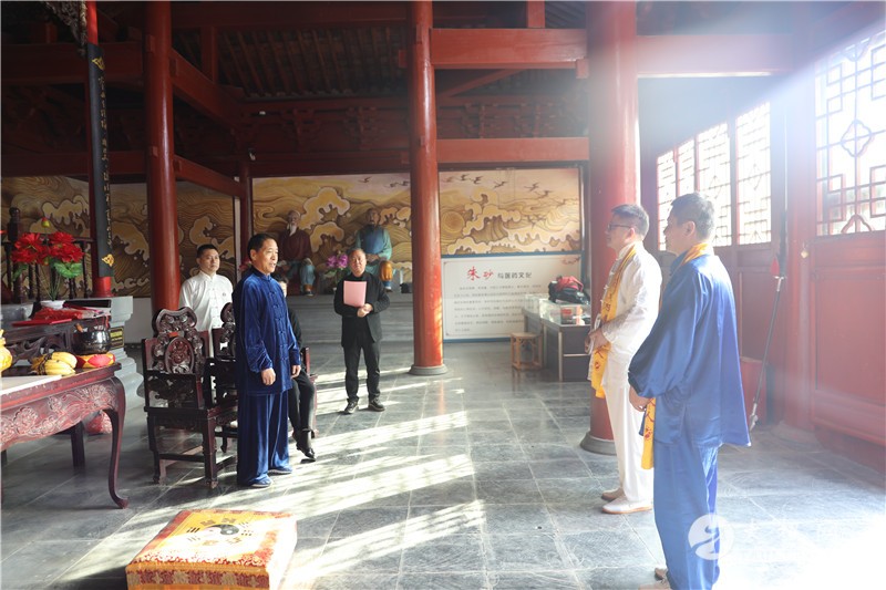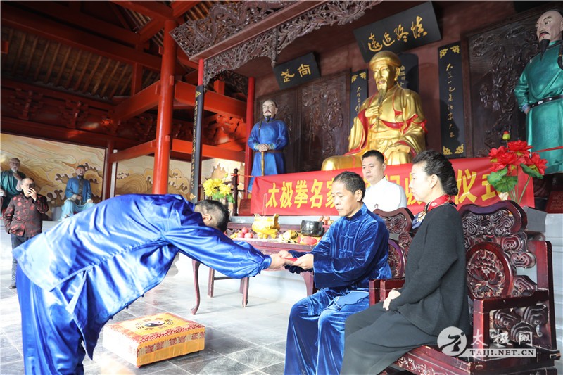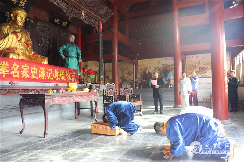 (太极网讯)"师者,传道授业解惑也!”中国乃文明古国、礼仪之邦,千百年都特别强调尊师重道。中华武术源远流长、博大精深,是中国优秀传统文化杰出代表之一。千百年来,师徒相授一直是武术最主要的传承形式。太极拳发源地温县陈家沟正是通过这样的师徒传承文化,太极拳得以代代传承薪火不熄。 11月19日,太极拳名家史潮记收徒仪式于陈家沟太极拳祖祠祖师堂举行,新弟子张高军和陈勇通过传统仪式拜入史潮记老师门下,正式成为陈式太极拳传人,承担起传承太极拳、弘扬太极文化的使命。刘洪奇主持收徒仪式 太极网创始人刘洪奇应邀出席并主持收徒仪式,拜师仪式遵照传统仪式有序进行,史潮记老师首先向太极拳始祖及历代先贤敬香行礼,追忆先辈创拳之恩德,感念先贤传拳之辛劳。新入门弟子依次上前递交拜师贴、行拜师礼,师父回帖。随后,师父、师娘亲自为新入门弟子披挂太极拳传承人绶带、颁发太极拳传承人证书。新入门弟子向太极拳始祖及历代先贤敬香,史潮记带领新老弟子共同行跪拜大礼,以示礼敬先贤之意,在众人的见证下,拜师仪式圆满礼成。 史潮记老师向众弟子训诫表示,希望新入门弟子恪守门规祖训,认真习练太极拳,用心体悟太极文化,真正肩负起传承太极拳,弘扬太极文化的历史使命,为太极拳事业的发展不懈努力,为太极拳的传播和推广努力奋斗。 老弟子代表王金元发言,他表示非常荣幸拜入史潮记老师门下,在老师的教导下受益良多,希望新入门弟子谨遵师父教诲,恪守门规祖训,认真习练太极拳,为早日成为优秀的太极拳传承人不断努力,为太极拳事业的发展贡献自己的力量。 |