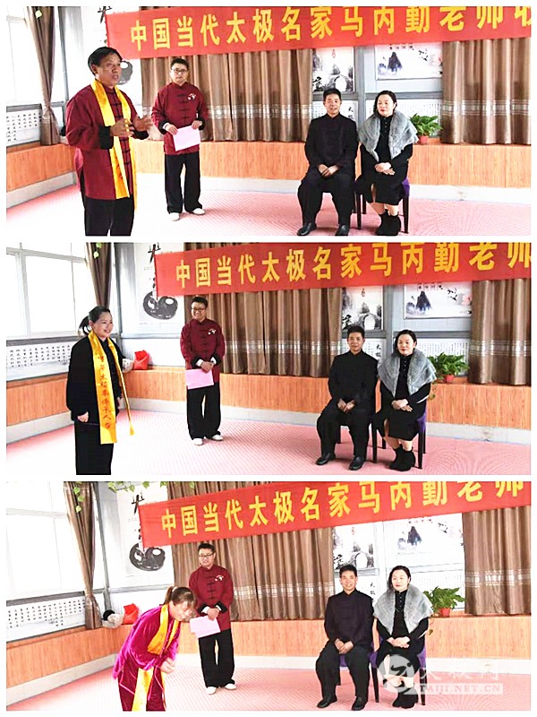 (太极网讯)2020年11月21日,中国当代太极拳名家、2019年度十大“太极拳风云人物”、陈式太极第十二代传人——马丙勤收徒仪式于开封市马丙勤太极养生馆举行。本次拜入马丙勤老师门下的有闫飞荣、许莉、冯鹅妮三名优秀的太极拳爱好者。他们顺利通过马丙勤老师的重重考验,正式成为太极拳传承人,肩负起传播太极拳,弘扬太极文化的历史使命。