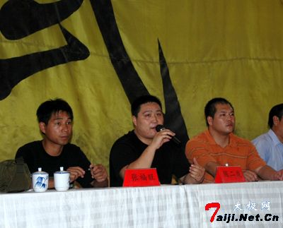| 8月10日,太极武术馆热闹异常,来自法国、马来西亚、深圳、山东、香港等地的王西安拳法研究会学员以及太极拳爱好者欢聚一堂,在拳乡温县拜名师,谈学拳体会,得名师指点,在轻松愉快地氛围中收获甚多。 为了将太极拳发扬光大,传播世界,近年来,当代陈式太极拳代表人物、“四大金刚”之一的太极拳师王西安在世界各地讲学传拳,并成立了王西安拳法研究会,相继在国内的香港、山东、浙江和国外的美国、法国、日本等国家成立了研究分会,吸纳国内外会员600多人,王西安每年都赴海内外亲自授拳。为了表现太极拳的独特魅力,王西安拳法研究会特举办了王西安太极人生摄影展,此次影展分太极渊源、太极神功、友好往来、情系陈家沟等六个部分,共展出200多幅摄影作品,在表现太极拳博大精深的同时,用光景语言讲述了王西安等一代拳师学拳、授拳的传奇人生。 为喜迎海内外各地嘉宾,增长学员拳艺,该拳法研究会在太极武术馆举办了名家评点现场会。会上,来自深圳、山东、香港等地的学员分别表演了老架一路、太极剑等项目,由王西安、王战海、王战军、张福旺、陈二虎等太极拳师对学员们的表演进行一一现场点评。评点会后,王西安大师还举行了隆重的收徒仪式,香港、深圳、山东等地共42名太极拳爱好者行拜师大礼,圆了多年拜名师练太极的夙愿。