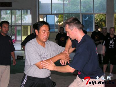 8月19-21日,俄罗斯国家武术总会19人.在陈家沟武术院向院长——太极拳大师王西安学习太极拳推手,该代表团中有多人连续参加两届焦作国际太极拳交流大赛,在大赛上目睹陈家沟武术院运动员连续夺冠,此次是慕名而来。王大师精湛的推手技艺令外国学生叹服.为期3天的学习结束后,学生们纷纷与老师合影留念。
