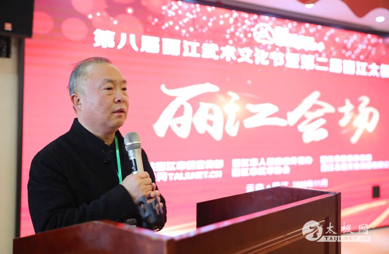 (太极网讯)太极峰会谈拳论道,名家荟萃武动丽江!为积极响应国家文旅融合发展及国家体育总局关于体育文旅赛事活动举办的号召,在中共丽江市委、市政府以及丽江市委宣传部、丽江市新冠肺炎疫情防控领导小组指挥部办公室的批复和各级、各部门的大力支持下,11月27日,第八届丽江武术文化节暨第二届丽江太极峰会在丽江古城隆重开幕。本届峰会以“名家论拳”为主旋律,来自全国各地的各流派武术名师名家以及武太极拳爱好者三百余人共襄盛会。 活动由丽江市委宣传部、丽江市体育局、太极网、丽江市武术协会主办,丽江武术文化节执行组委会、丽江石莲文化传播有限公司、丽江意和民族文化传播有限公司承办,丽江市政府外宣办及各赞助单位协办。活动以“太极+赛事+旅游”为主题,文旅融合交相辉映。 峰会受到了丽江政府和相关部门的大力支持,原云南省体育局副局长赵建军出席活动并宣布开幕,丽江市教育体育局副局长胡建英出席活动并讲话。活动得到了武术界高度关注与反响,中国武术协会、国家武术研究院原秘书长、中国武术九段、河南大学武术学院名誉院长康戈武,太极网创始人、温县太极拳传承人联合会主席刘洪奇,陈氏太极拳代表性传承人、东武太极研修院院长张东武,陈家沟太极拳学校总教练陈自强,国家级非遗项目(和氏太极拳)代表性传承人、和式太极拳学院院长和有禄,青城武术代表性传承人、四川省武术文化研究会会长刘绥滨,陈氏太极拳杰出传承人、石家庄市武术协会主席杨合发,南宁乐道太极院院长董志鸿,驻马店市太极拳协会副会长翟文胜,厦门振龙太极拳馆馆长张振龙,陈家沟陈氏太极拳协会副理事长张宗军,邯郸梦缘太极文化研究院院长赵海鑫,著名武术家张梅瑛,临汾市陈式太极拳研究会会长侯敏,山海关武当拳法研究会会长黄文彬等武术名家莅临参会。 云南省武术界众多重量级嘉宾出席盛会,云南省武术协会秘书长、时代武术院院长黄鑫,云南省武术协会副主席李小华,陈家沟太极拳协会云南总会会长曾加华,昆明郭俊国太极武馆馆长郭俊国,陈家沟陈氏太极拳协会云南西双版纳分会会长李小刚,云南昭通和谐武馆馆长阮铁刚等本地嘉宾到场支持。 丽江武术文化节连续成功举办八届,文化节创办者、丽江市武术协会主席马涛精心策划和组织每届活动,为活动投入和付出巨大,充分彰显了武术人的担当和作为。作为活动联合主办方和长期战略合作伙伴,太极网与文化节多次成功合作,太极网总编李超担任本次活动副主任。鄢洪阿略出任活动总导演,苗族青年歌手欧桑主持活动。 丽江市教育体育局副局长胡建英致欢迎词,她代表丽江市教育体育局向来自全国各地的武术专家、参赛选手、媒体朋友们表示欢迎。她说,丽江市委市政府的高度关注和支持文化旅游融合发展,今年的第八届丽江武术文化节暨第二届丽江太极峰会虽受疫情影响,但依然吸引了全国各地的众多武术名家大师和拳友,举办非常成功,活动将有力推动丽江武术事业乃至全国武术文旅活动。寄望各位武术专家多关注、支持丽江的体旅发展,并预祝活动圆满成功。 中国武术协会、国家武术研究院原秘书长、中国武术九段、河南大学武术学院名誉院长康戈武在讲话中对历届丽江武术文化节的成功举办及活动举办方表示肯定和祝贺。大家本着学习、交流、取经的目的而来,希望大家能够认真学习,满载而归,享受活动旅途。并将所学传递分享给更多拳友,共同助推各地武术事业的发展。 在全球疫情依然严峻的情况下,本次活动能够顺利举办,得益于千万的第一线抗疫英雄。太极网创始人、温县太极拳传承人联合会主席刘洪奇在致辞中希望大家在参加活动学习交流的同时也要做好个人防疫保护。刘洪奇说太极拳这一优秀非物质文化遗产的传承、发展现状以及面临的问题有很多值得探讨研究的命题,希望各位武术专家能够在太极峰会上畅所欲言,为太极文化事业的传承发展献计献策。本次活动名师大家云集,“名家论拳”环节各流派名家将分享和交流拳技心得,为广大与会拳友传经送宝。祝愿大家在活动中有所收获。 原云南省体育局副局长赵建军宣布峰会开幕后,名家论拳环节正式开始,康戈武、陈自强、和有禄、张东武、杨合发、黄鑫、刘绥滨、董志鸿、翟文胜等名家分别进行了主题演讲,嘉宾们各抒己见、高谈阔论,分别就太极拳的传承推广、功法技击、养生理论等主题展开分享,交流分享太极技艺,互动探讨太极发展大道。 峰会旨在为各流派武术名家和广大太极拳爱好者搭建交流互动平台,传承和弘扬中华武术,促进武术文旅融合发展,为丽江这一世界旅游名城增添新亮点,助力提升丽江的健康城市形象和文旅魅力。 著名艺术家、音乐演奏家、书画家商憧向活动组委会赠送墨宝 商憧现场演绎为活动助兴 据悉,太极峰会丽江会场活动结束后大会全体成员还将前往大理市剑川县举行剑川分会场活动,太极拳交流展演大赛及各流派名家表演等系列活动将精彩呈现。 同时,为丰富大赛主题活动,引进名师搭建学习和交流平台,应组委会邀请,经太极网大拳师学院策划组织,在丽江市武术协会和陈家沟太极拳学校的支持下,陈家沟太极拳学校总教练陈自强丽江密训研修班于国际健身气功联合会丽江培训基地(悠堂客栈)同期开班,吸引了多地拳友参训。 本站