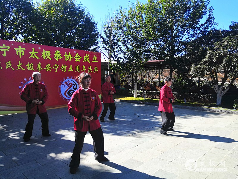 (太极网讯)12月12日,云南省安宁市太极拳协会、太极拳协会教学点揭牌仪式分别在安宁市柳树花园小区和云南技师学院举行,标志着安宁市太极拳协会正式成立。 云南省武术协会副主席李德祥、秘书长黄鑫、副秘书长蔡崇荣、副秘书长王建国、常委杜荣,安宁市老体协会长张毅,安宁市教体局副局长潘健、四级调研员李江道,安宁市民政局副局长张锐、四级调研员周元,安宁市金方街道武术协会会长苏竹仙应邀出席本次仪式。 安宁市市教体局、市民政局相关领导先后宣读成立批复并颁发证书。云南省武术协会秘书长在成立大会上致辞。 安宁市太极拳协会第一届理事会会长由陈氏太极拳安宁馆馆长杨耀辉担任,常务副会长吴志强、副会长杜炳灿、李彦雄,秘书长李勇。协会目前共有成员60余名。 庆祝活动中,安宁市太极拳协会和昆明市太极拳馆的成员们带来了《陈氏太极拳十九式》《单剑》《太极扇》《春秋大刀》等精彩的太极拳展演。表演充分展现了太极拳含蓄内敛、以柔克刚、快慢相间、春风杨柳、行云流水的特点。 陈氏太极拳安宁馆创办于2015年8月,位于云南技师学院行政楼二楼,拳馆馆长兼教练由毕业于陈家沟武校,来自河南焦作市陈氏太极拳发源地陈家沟的杨耀辉老师担任。建馆以来,得到安宁市社会各界的大力支持,也深受广大太极拳爱好者喜爱,拳馆也得到长足发展,市域内机关、企事业单位太极拳爱好者60余人成为拳馆学员。拳馆教学时间固定、教学形式灵活多样。在馆内学员体验教练的言传身教、探讨切磋拳技;至公园、景区、广场开展习练活动,感悟太极户外乐趣;进场馆登舞台,弘扬传统文化。拳馆学员在杨耀辉教练的精心指导和传授下,有的已经熟练地完成了陈氏太极拳十九式、老架一路、二路,新架一路、国家竞赛套路五十六式以及器械49式太极剑、太极单刀、太极棍、春秋大刀等套路的学习。 五年来,先后组织学员至河南陈家沟学习考察,到宾川鸡足山、大理等地开展体验式实训教学。2019年8月应邀参加安宁市8.8全民健身活动展演获得好评。2020年11月首次参加第八届丽江武术文化节暨第二届丽江太极峰会,选送学员分别获奖。 陈氏太极拳安宁馆在安宁不仅是一个展示太极拳神韵的舞台,更是一个充满了爱与温馨的精神家园。在这里,你可以登上舞台,让他人领略你的飘渺洒脱;在这里,你可以感受到温暖,用关怀抚慰的心灵的每个角落;在这里,你可以锻炼身心用饱满的热情去追求美好的生活。 在今后的发展中,在上级主管部门的领导下,在社会各界人士的大力支持下,安宁市太极拳协会将一如既往地带领学员共同在这个舞台上,以养生、健身为目的,同台献艺、相互交流、共同提高。以“健康你我、习练太极”为服务宗旨,以请进来、走出去、相互动的学习和交流方式拓展教学成果,结合拳馆的实际,逐步将开设太极推手,太极球、太极枪、太极戬等器械的教学课程。为太极拳的发展,为全民健身运动做出新贡献。 本站编辑:太极网安安 |