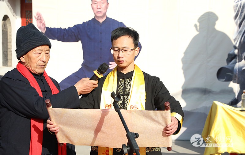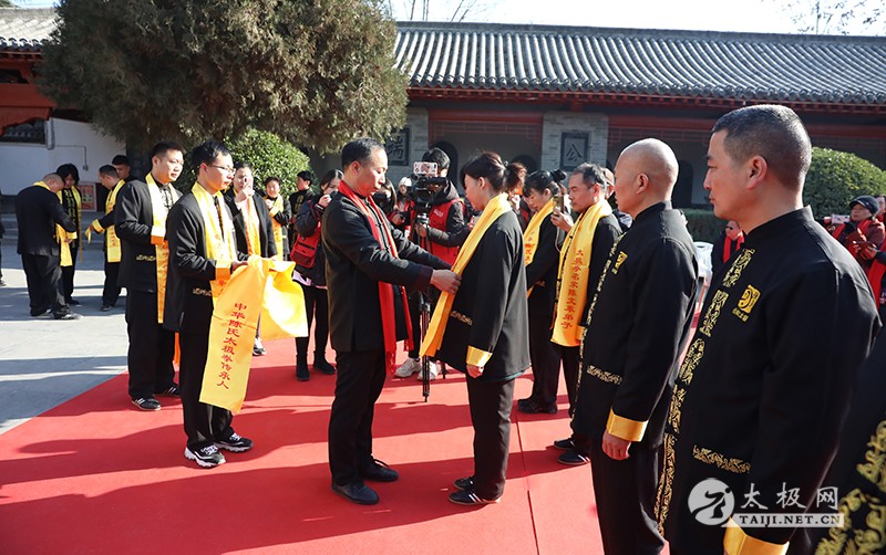 (太极网讯)12月20日,冬至将至,天寒地冻,太极拳发源地温县陈家沟太极拳祖祠却笼罩着浓浓暖意,太极拳名师、陈式太极拳第十二代传人陈文革先生收徒仪式在此隆重举行。曾凤梅、韦少军、陈彩霞、张社军、李玉敏、侯海强、王立波、胡富茂、马超、严鑫峰10位太极拳爱好者经过重重考验,终于如愿拜入陈文革老师门下,正式成为陈式太极拳传承人 ,肩负起传播太极拳、弘扬太极文化的历史使命。 洛阳市政协副主席、工商联主席安石柱,河南省太极拳协会副主席、洛阳市武术协会主席、洛阳市政协原副主席、党组副书记李良龙,中国人民解放军驻洛某部原政委苗少营,洛阳市军分区原副司令王中立,洛阳市政协委员联络委员会原主任马武力,洛阳市委统战部副部长田桂芳,洛阳市西工区政协原主席杨志力,原洛阳市政协农业委员会主任王文英,洛阳市广播电视台原总监李红钊,洛阳市食品药品监管理局原局长杜法治,中国建设银行洛阳分行原行长任风雷,河南省健康管理协会副会长、洛阳市健管理协会会长唐海修,洛阳市餐饮与饭店协会会长申灵杰,洛阳师范学院体育学院院长闫树人,洛阳市武术协会副主席马现灵,陈氏太极拳第十二代传人王高杰,洛阳市林安二手车市场总经理吴惠西,洛阳市圣通电器设备有限公司董事长张胜强等应邀出席活动。 活动也得到了温县本地各界的关注和支持。温县政协党组副书记张明剑,赵堡镇党委书记张德成,赵堡镇镇长刘虎臣,陈家沟景区管理局局长刘中原,温县太极拳武术文化管理中心主任任海林,太极网创始人刘洪奇等应邀出席观礼见证。陈家沟陈氏家族理事会秘书长陈石岩主持本次仪式。 仪式全程恭敬庄严,陈氏太极拳第十三代传承人、陈文革之子陈胤方宣读祭祖文。陈文革向太极拳始祖陈王廷及历代宗师上香敬酒,缅怀先辈创拳之辛劳,感念先师传拳之恩德。新入门弟子上前向师父、师母行鞠躬礼,师父亲自为弟子披挂太极拳传承人绶带。随后,新入门弟子依次向师父递交拜师贴、行拜师礼。 陈文革老师对新弟子提出了三点要求:希望大家把太极拳作为自己终生的追求和事业,不忘初心,忠党报国,遵纪守规,尊师重道,胸怀坦荡,不图虚名,把人做正,把路走正;在以后的学拳道路上,勤学苦练,钻研修持,文武兼修,精益求精;肩负起太极拳传承的责任和使命,继承发扬,不断开拓创新。 洛阳市军分区原副司令王中立向陈文革老师喜收新徒和弟子们如愿拜师表示真诚的祝贺。他对陈老师的人品和武德给予高度评价。希望新弟子们当好太极拳文化的传播者,好好向师父学习,静心求教,虚心求学,用心演练,潜心交流,把太极拳的内涵、要义、精髓一代一代,一辈一辈,一世一世传承下去。同心合力,内外兼修,让中华民族永远屹立于世界民族之巅。 河南省太极拳协会副主席、洛阳市武术协会主席、洛阳市政协原副主席李良龙,温县太极拳武术文化管理中心主任任海林,赵堡镇镇长刘虎臣,太极网创始人刘洪奇作为见证人分别讲话。此次收徒仪式标示着陈式太极拳又有了新生力量,陈文革老师自幼习拳,拳艺精湛,为人正直,品德高尚,在洛阳开馆传拳十余年,培养学生近万人,为弘扬太极拳文化作出了重大贡献。祝愿他们师徒今后能够携手共进,为推广普及陈氏太极拳,弘扬太极文化作出更大贡献。 新入门弟子胡富茂代表发言 新入门弟子胡富茂代表发言,今日拜师他深感荣幸和责任重大。追随师父学拳多年,深深为师父的高尚武德所感动。今后将进一步追随师父学习做人,严守武德,恪守门规,尊师重道,谨遵师教,继承技艺,刻苦研习,团结同道,维护师门形象,传颂师艺师德,为弘扬和传播太极拳文化尽心尽力,奉献终身。 合和太极总馆揭牌 收徒仪式礼成后,全场人员移步至陈文革老师家里进行合和太极总馆揭牌仪式。河南省太极拳协会副主席、洛阳市武术协会主席、洛阳市政协原副主席、党组副书记李良龙,中国人民解放军驻洛某部原政委苗少营,赵堡镇党委书记张德成,赵堡镇镇长刘虎臣共同为合和太极总馆揭牌。 |