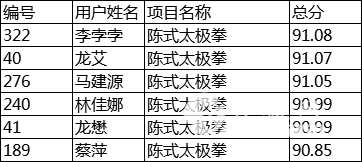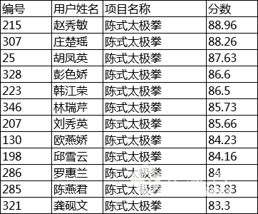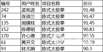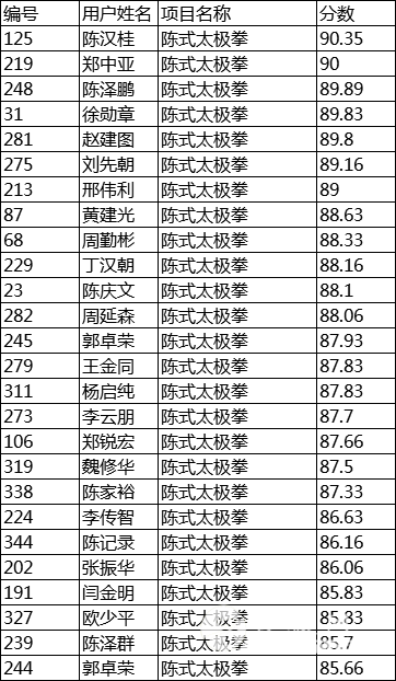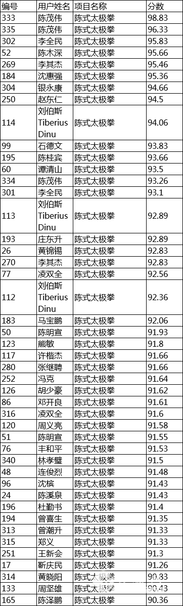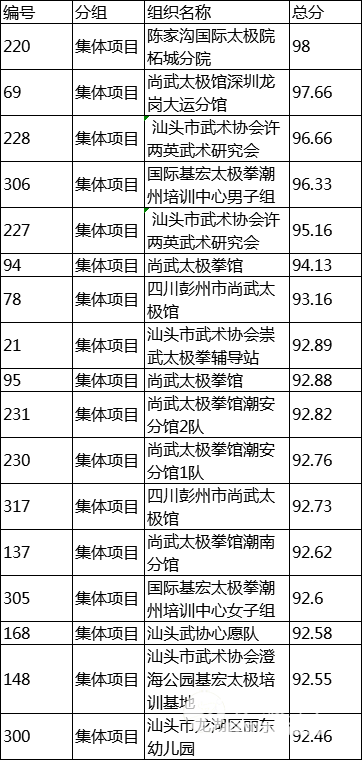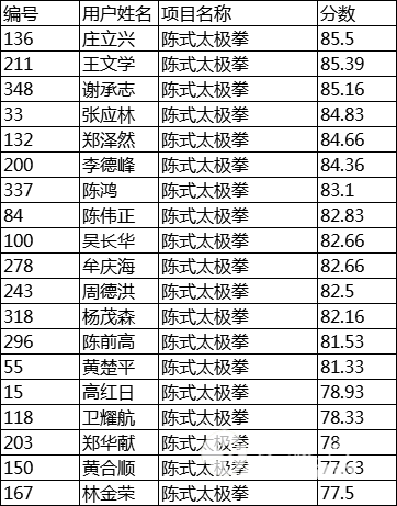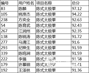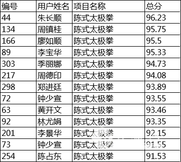 为庆祝经济特区成立40周年,落实国家、省、市《全民健身计划》(2016-2020年),践行习近平总书记视察汕头的重要讲话,“聚四海侨心,筑复兴之梦”。 充分发挥汕头侨乡侨胞的优势,弘扬中华武术,以武会友,敦睦乡谊,打造活力特区、和美侨乡、粤东明珠,演绎活力汕头、迈进亚青盛会,倡导居家锻炼、共抗疫情、守护健康,汕头市武术协会和太极网(TAIJI.NET.CN)联合主办了2020年海上丝绸之路(汕头)太极拳网络视频大赛,活动由广东汕武文化体育投资股份有限公司、汕头市武术协会太极拳研究推广委员会、尚武太极拳馆全国总部等承办,周边地市武协及众多武术馆校组织参与协办。 赛事依托“互联网+太极拳”传播手段,创新武术传播模式,由选手线上报名、线下录制参赛视频、在线展播及点赞、专家评审、颁奖典礼等环节组成。本次大赛报名经组委会严格审核通过,精选340部参赛作品进入展播环节,千万拳友踊跃互动交流,盛况空前,好评如潮。 弘扬中华武术,传播太极正能量。赛事从筹备到运营,紧张有序,得到了当地武术界以及各地武术同仁们的大力支持,充分展示了汕头及其周边地区侨乡侨胞太极人的风采。 如火如荼的网络展播投票阶段后,在组委会邀请和协调下,由多名太极拳名师名家和专业裁判组成的评审团无偿奉献,抽出大量时间认真对待、反复观看、专业点评每一位选手的参赛作品,秉承公平公正、专业准确的原则,严格执行评审工作。现迎来了万众期待的奖项公布阶段。在此,大赛组委会向广大参赛选手、评委会以及关注大赛的拳友们表示衷心感谢。 获奖名单公布如下: 中年组陈式太极拳一等奖(金奖)男: 中年组陈式太极拳二等奖(银奖)男: 中年组陈式太极拳三等奖(铜奖)男: 中年组陈式太极拳一等奖(金奖)女: 中年组陈式太极拳二等奖(银奖)女: 中年组陈式太极拳三等奖(铜奖)女: 中年组陈式太极器械一等奖(金奖): 中年组陈式太极器械二等奖(银奖): 中年组陈式太极器械三等奖(铜奖): 中年组杨式太极拳一等奖(金奖): 中年组杨式太极拳二等奖(银奖): 中年组杨式太极拳三等奖(铜奖): 中年组其他太极拳一等奖(金奖): 中年组其他太极拳二等奖(银奖): 中年组其他太极拳三等奖(铜奖): 老年组陈式太极拳一等奖(金奖): 老年组陈式太极拳二等奖(银奖): 老年组陈式太极拳三等奖(铜奖): 老年组陈式太极器械一等奖(金奖): 老年组陈式太极器械二等奖(银奖): 老年组杨式太极拳一等奖(金奖): 老年组杨式太极拳二等奖(银奖): 老年组其他太极器械一等奖(金奖): 老年组其他太极器械二等奖(银奖): 青年组陈式太极拳一等奖(金奖): 青年组陈式太极拳二等奖(银奖): 青年组陈式太极拳三等奖(铜奖): 青年组陈式太极器械一等奖(金奖): 青年组陈式太极器械二等奖(银奖): 儿童组陈式太极拳一等奖(金奖): 儿童组陈式太极拳二等奖(银奖): 儿童组陈式太极拳三等奖(铜奖): 儿童组陈式太极器械一等奖(金奖): 儿童组陈式太极器械二等奖(银奖): 儿童组陈式太极器械三等奖(铜奖): 太极器械一等奖(金奖): 太极器械二等奖(银奖): 太极拳一等奖(金奖): 太极拳二等奖(银奖): 太极拳三等奖(铜奖): 对练项目一等奖(金奖): 对练项目二等奖(银奖): 集体项目一等奖(金奖): 集体项目二等奖(银奖): 太极人气王: 陈海燕 陈楚文 庄东升 李传智 江丽玲 吴新梅 钟华莹 林炫榕 卢秋盛 陈前高 最佳人气奖: 曾喜生 杨启纯 朱长顺 林丹彤 沈惠强 万杏生 郑义 姚淮杰 邓开良 陈瑞玲 曾潮升 连淑娟 郑进廷 刘澄睿 林松明 许智煊 彭海华 王燕洪 赵东仁 陈良周 最佳人气团队: 四川彭州市尚武太极馆 尚武太极拳馆潮安分馆3队 汕头市武术协会贤辉赵堡太极拳馆 尚武太极拳馆潮安分馆2队 尚武太极馆深圳龙岗大运分馆 潮南体育总会尚武太极拳馆 汕头市武术协会尚武太极拳馆榕江分馆 大赛组委会 2020年12月 |