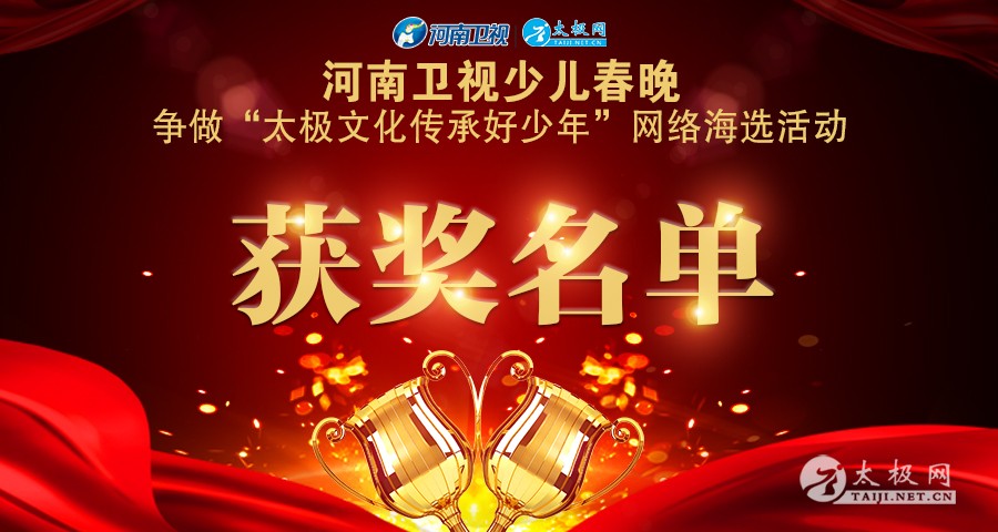 为积极贯彻落实习近平总书记在全国教育大会上的重要讲话精神,培养德智体美劳全面发展的社会主义建设者和接班人,充分发挥政府及主流媒体在青少年思想政治教育活动中的影响力。在中国共产党成立100周年来临之际,河南广播电视台卫星频道隆重推出“立少年志,铸强国梦”河南卫视少儿春节联欢晚会,旨在唱响主旋律。 2020年12月17日经联合国教科文组织确认公布,太极拳正式被列入世界人类非物质文化遗产代表名录,一时间神州大地普天同庆,全世界龙的传人为之自豪。为庆祝太极拳世界申遗成功,进一步弘扬太极文化精神,河南卫视少儿春晚节目组和太极网特别策划了“争做太极文化传承好少年”网络主题活动。 活动全体同台网络展播从1月10日开始,截至14日收官,平台累计网络访问量17万次,投票点赞17138次,广大朋友们互动留言频繁刷屏。依据网络海选办法,展播点赞中的个人项目前三名由组委会颁发“太极传承好少年”水晶证书,4到10名颁发“最近网络人气奖”证书。集体项目颁发“优秀表演奖”证书。 获奖名单公布如下: “太极传承好少年”奖项获得者: 杨镇宇 钱诗语 刘斐凡 “最佳网络人气奖”奖项获得者: 张雅萱 杨国豪 王宇鑫 刘佳威 黄佳豪 姜文佶 马翊航 “优秀表演奖”获得者: 大宋体育汾阳斌儒堂 沁阳宗建贵武院 焦作三十三中学 温县有刚太极武校 河南卫视少儿春晚组委会 2021年1月 |