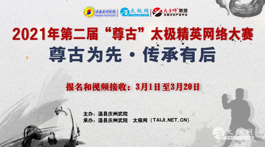 尊传统,沐古风,太极功夫,重在传承。为弘扬太极文化,传承太极精髓,增强“尊古”太极拳爱好者的向心力、凝聚力,促进交流切磋、探讨研究,传播尊古太极正能量。继2020年首届大赛成功举办,由温县庆州武院、太极网(TAIJI.NET.CN)再次联合发起举办2021年第二届“尊古”太极精英网络大赛,共同开启牛年太极网赛第一站。 赛事以“尊古为先·传承有后”为主题,依托“互联网+太极拳”传播手段,创新尊古太极传播模式,既是对“尊古”太极体系发展每年一度的网络“大阅兵”,更是通过集中展示扩大尊古太极影响力的最佳平台。 春暖花开日,太极正当时!人类非遗太极拳春风已至,诚邀尊古太极人同沐共享。 趁当下,录制太极演练视频留影纪念,与千万拳友在线交流PK,一起学习进步,岂不快哉! 2021年第二届“尊古”精英网络大赛竞赛规程 一、活动组织 主办单位: 温县庆州武院 承办单位: 温县庆州武院 太极网(TAIJI.NET.CN) 支持单位: 温县文化广电和旅游局 温县太极拳武术文化管理中心 温县非物质文化遗产保护中心 协办单位: 广东遂溪县陈式太极拳协会 重庆铜梁尊古太极拳俱乐部 云南永慎•国际陈有强尊古太极馆 上海礼太极运动与养生研究院诺宝分院 凤阳县陈式太极拳协会 米广盛尊古太极战队 陈式太极拳尊古老架沈阳研究会 阜南县太极拳协会 江苏太仓尊古太极拳馆 哈尔滨呼兰区祥臣武馆 尊古太极拳盐城分会 舞阳县武术协会陈氏太极拳代表队 浙江瑞安晓峰中医太极社 义乌明道太极拳馆 方城尊古太极拳辅导站 湖北随州有则尊古太极站 涡阳有则太极拳研究会 上海合纵太极拳馆 上海惟道太极工作室 仙游李加明太极队 二、活动时间 1. 报名和视频接收:3月1日至3月20日。 2. 大赛全体同台展播及网络投票:4月1日-5日。 3. 专家评审及成绩公布:5月份。 4. 颁奖典礼及“尊古”太极体系表彰活动择期举行。 三、参赛对象 各流派太极拳组织及个人爱好者。 四、竞赛项目 (一)拳术类 各流派太极拳传统套路及尊古一段。 (二)器械类 单刀、单剑、双刀、双剑,春秋大刀,梨花枪夹白猿棍,五虎群羊棍,行功太极球等。 (三)集体项目:拳术类、器械类、拳械混编。 五、竞赛规则 (一)本次比赛采用中国武术协会审定的2012版《传统武术套路竞赛规则》及有关补充规定。 (二)项目要求:所有项目要求为完整套路,不得增减动作、不得改变动作顺序,集体项目要求6人以上。 (三)时间规定: 1. 陈式太极拳:一路完成套路时间15分钟以内,二路、尊古一段及其他套路3~4分钟;单剑时间3~4分钟,单刀不低于1分钟,其他项目2~4分钟。 2. 其他流派太极拳传统套路时间不限。 3. 集体项目时间不超过4分钟。 (四)年龄分组: 儿童组:12岁及以下; 少年组:13至17岁; 青年组:18岁至39岁; 中年组:40岁至60岁; 老年组:60岁以上。 六、参赛影像要求 1. 参赛作品要求为参赛者本人近期演练的视频影像。 2. 视频要求清晰流畅,图像稳定。参赛视频质量差或不符合标准的,谢绝参赛,报名费不退。参赛作品一经提交发布,更换或更改参赛视频费用为100元/项。 3. 因赛事标准统一和宣传,组委会有权对参赛视频进行剪辑并添加片头片尾,并体现参赛个人和所属组织,同时对不符合要求的视频片头片尾进行修改调整。 4. 凡有悖社会公德或含有违反相关法律规定的图文影像将被取消参赛资格;画面禁止包含他人权利的商标标识、商业招牌、广告植入等。 5. 参赛者提供的视频版权、肖像权自负,主办方不承担因参赛作品导致的包括但不限于肖像权、名誉权、隐私权、著作权、商标权等纠纷而产生的法律责任。 七、赛事平台 1. 组委会搭建专业大赛全体同台展播及网络投票平台,方便拳友互动交流。 2. 太极网全媒体及手机客户端“太极拳APP”“大拳师赛事APP”均设置大赛专题展播栏目,并在其他各大视频网站发布传播。 3. 太极网微信平台矩阵粉丝数百万,设置专题展播。 八、作品提交 1. 视频展播顺序根据参赛作品提交先后顺序排列展示。 2. 通过太极网下载或联系组委会获取报名表后完整填写,与视频文件一并发送至组委会。视频文件和参赛报名表的文件名需一致,命名格式为:姓名+组织+作品名称。 3. 为保证视频文件的完整性,确保视频正常播放,参赛者以收到组委会正式回复为提交完成。 4. 参赛作品直接以QQ、邮箱、网盘等形式发送电子版。 QQ传送及邮箱接收:739765883、739765883@qq.com 上传至腾讯或百度、360等云盘,参赛人需提供账号及密码,供组委会登录下载。 5.扫描下方二维码线上报名。 九、评选及奖励办法 1. 不同流派的套路及器械均分开评比。个人项目分套路和器械设置一等奖(按30%比例录取)、二等奖(30%)、三等奖(40%),录取比例按照实际人数采取四舍五入,颁发奖牌、证书等;集体项目不分组别,设置一等奖、二等奖各50%。 2. 依据大赛全体同台展播的网络投票结果,为总票数(人气)排名前30名的个人颁发最佳人气奖,集体最佳人气奖取前10名。 3. 本次大赛将设立“太极战力排行榜”,各代表队报名情况每日即时更新发布公示,并予以表彰: A、组织10人及以上且个人项目不少于16个的团队可入列协办单位,并授予“尊古太极精英战队”荣誉称号。 B、组织参与人数(以参加个人项目人数计算)第一名团队授予“尊古太极冠军战队”,第二名、第三名为“尊古太极功勋战队”。 4. 对表现突出的个人和团队设置