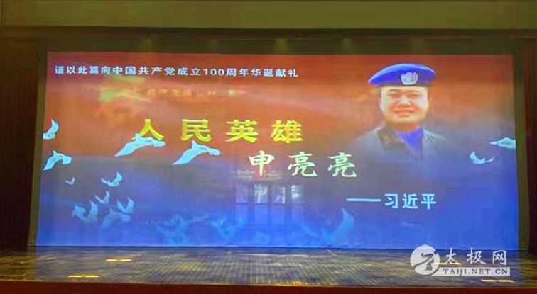 为讴歌人民英雄,献礼建党100周年,4月8日下午,温县张保忠太极武院20名学生参演的话剧《人民英雄——申亮亮》在焦作市人民会堂亮相,河南省双拥办常务副主任郑志伟、副主任尹华明莅临现场,与焦作市双拥工作领导小组办公室各成员单位人员一起观看了演出。 此话剧由焦作市歌舞剧院组织排演,是以维和英雄申亮亮的事迹为蓝本所创作。话剧通过波澜起伏的叙事方式、时空交错的舞台表现手法,生动再现了申亮亮面对生死考验坚定不移、为了信仰和理想不惜献身的英雄事迹。现场观演人员被他身上所蕴含的坚定信念、听党指挥的精神追求、临危不惧勇于牺牲的血性胆气和关爱战友服务人民的高尚品德深深感动,台下多次响起热烈掌声。演出结束后,郑志伟等与主创人员进行了座谈,对演出给予充分肯定。 4月12日下午,话剧《人民英雄——申亮亮》作为第十五届河南省戏剧大赛参赛剧目在平舆县文化艺术中心上演。 |