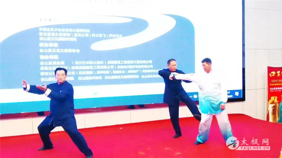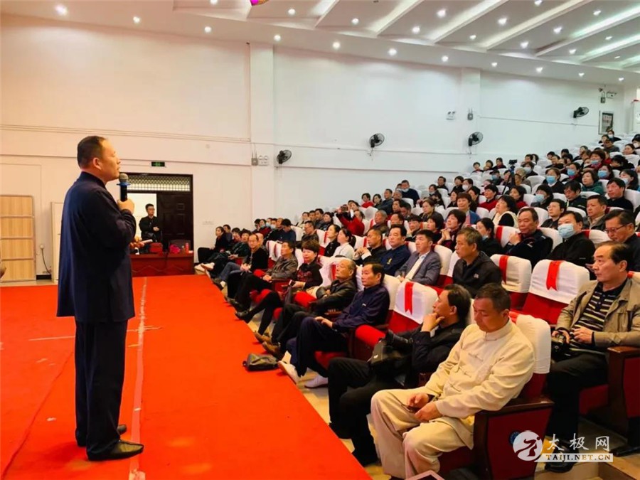 交流活动分别在含山县职教中心阶梯教室及褒禅山景区进行。“安徽省武术协会世清太极文化研究会”主任、中华杰出太极拳传承人、陈氏太极拳第12代传人倪世清老师上午先以“太极公益大讲堂”的形式,给所有与会者上了一堂生动的太极实用课程。课程从如何练好太极拳到习练太极会给企业、个人带来的向好向上的改变一一阐述,精彩的讲述博得了现场与会者强烈的共鸣,赢得了阵阵掌声!为了更好的展示太极拳的魅力,倪世清老师不仅亲身示范教学,更邀请台下的拳友上台进行互动,结合太极拳的套路“拆招解招”详细的为现场拳友分析拳理。讲课结束后,含山县玉龙太极拳协会会员及倪世清老师带来的众弟子们相继上台表演了各自“拿手”的太极拳及太极器械,各位老师精彩的表演让现场不断爆发出热烈的掌声和喝彩声!