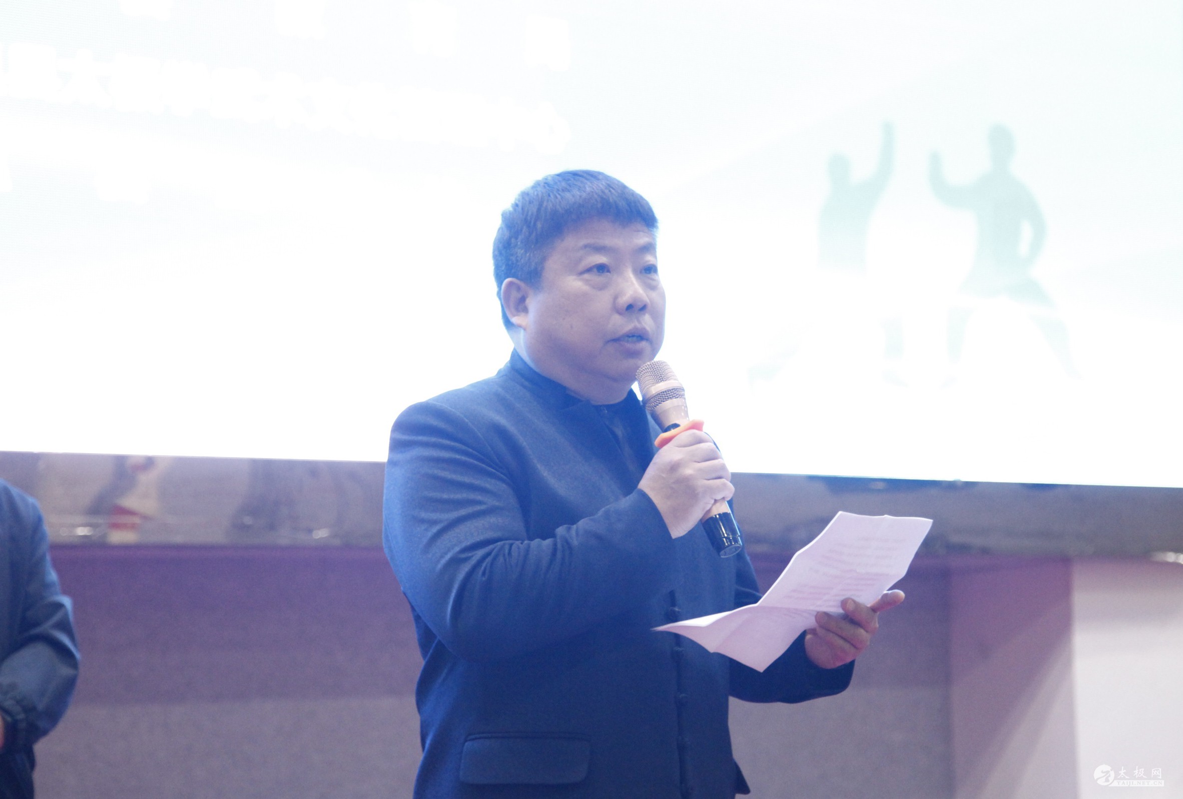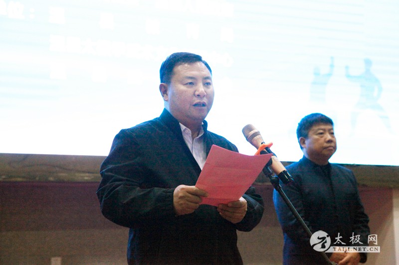 (太极网讯)经过前期的精心准备,“河南省第五届大中小学体育教师(武术教练员)培训班”于5月3日上午在温县海旺大酒店演武厅开班,开班仪式在雄伟的国歌声中拉开帷幕。 参加开班仪式的专家及领导有:河南理工大学太极拳学院党组书记马明、温县人民政府副县长王欢欢、温县太极拳武术文化管理中心主任任海林、温县教育局副局长田二军、河南理工大学太极拳学院副教授王永胜、温县太极拳武术文化管理中心副主任刘高杰。还有来自河南省大中小学校的120余名体育教师(武术教练员)参加了仪式。 王欢欢宣布开班 开班仪式由王永胜主持,温县政府副县长王欢欢宣布培训班开班。 任海林致辞 任海林在致辞中讲到,温县历史悠久,人杰地灵,是人类非物质文化遗产代表作名录太极拳发源地,是全国武术之乡和体育先进县。诚邀大家来温县品尝最正宗的铁棍山药,体验最传统的太极文化。温县人民包容好客。