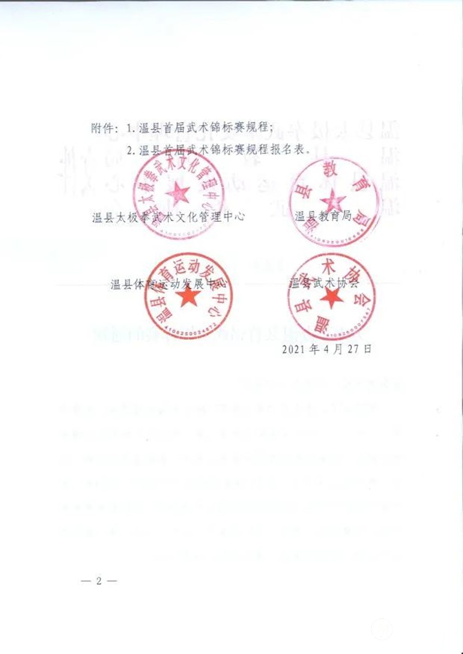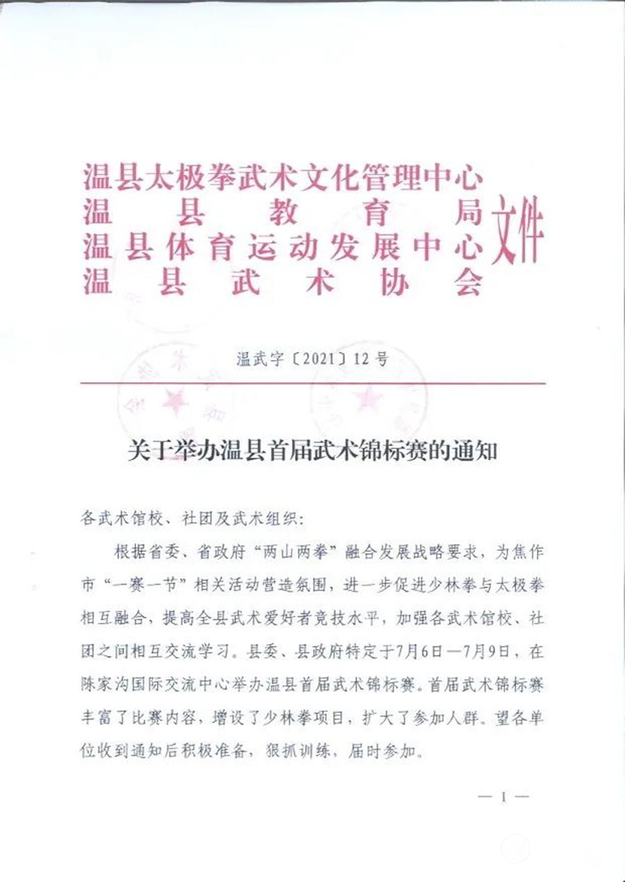 温县首届武术锦标赛规程 一、比赛时间和地点 2021年7月6日—7月9日,陈家沟国际太极拳交流中心 二、主办单位 温县人民政府 三、承办单位 温县太极拳武术文化管理中心 温县体育运动发展中心 温县武术协会 四、协办单位 中国太极拳文化研究基地 温县陈家沟景区管理局 温县非物质文化研究基地 五、参加单位 全县各武术馆校、社团、俱乐部、有关单位及个人 六、比赛项目 (一)太极拳、械传统项目 1.各式太极拳:陈式、杨式、武式、吴式、孙式、和式、陈式小架、忽雷架任选一项; 2.太极短器械:传统刀术、剑术套路任选一项; 3.太极长器械:传统枪术、棍术、春秋大刀任选一项;(儿童组限报) (二)太极拳规定项目:陈式、杨式、武式、孙式、吴式规定太极拳、42式太极拳、42式太极剑任选一项; (三)太极拳对练项目:徒手与徒手、器械与器械、徒手与器械项目任选一项; (四)少林拳项目 1.传统拳术:简化少林拳、七星拳、通臂拳、罗汉拳、大洪拳、小洪拳任选一项; 2.传统器械:少林单刀、阴手棍、少林单剑、少林十三枪等任选一项; (五)少林拳对练项目:徒手与徒手、器械与器械、徒手与器械项目任选一项; (六)集体项目:每队限报一项,拳、械内容不限,必须配乐。(自备CD音乐盘、U盘,无歌词说唱)按类分为拳术类、器械类、拳械混编。 七、年龄分组 (一)儿童组(A组):12岁以下(2010年1月1日之后出生者) (二)少年组(B组):12岁至17周岁(2005年1月1日-2009年12月31日) (三)青年组(C组):18岁至39岁(1983年1月1日-2004年12月31日) (四)集体项目:不分年龄组别 八、参加办法 (一)每单位可派领队1人,教练1人,医生1人,运动员人数不限,男女不限; (二)每位运动员限报拳术、器械各一项,可兼报对练项目和集体项目; (三)拳术、器械每一单项不足5人时,均编入相邻组别。 九、竞赛办法 (一)本次比赛为个人比赛; (二)本次比赛遵循中国武术协会审定的《武术套路竞赛规则与裁判法》(2012)及有关补充规定; (三)太极拳类项目 1.太极拳、械传统套路必须是以最具传统风格特点的技术动作为基本内容的套路形式,演练中掺杂有太极拳、械竞赛套路内容不予评分。 2.规定项目中陈式、杨式、武式、孙式、吴式、42式太极拳和42式太极剑,分别采用中国武术研究院编印的《太极拳竞赛套路》、《四十二式太极拳竞赛套路》、1996年编印的《武式太极拳竞赛套路》和1991年编印的《太极剑竞赛套路》。 3.传统太极拳演练时间3-4分钟(运动员演练至3分钟时,裁判长鸣哨提示);太极拳竞赛套路演练时间5-6分钟(运动员演练至5分钟时,裁判长鸣哨提示);传统太极剑和42式太极剑演练时间3-4分钟(运动员演练至3分钟时,裁判长鸣哨提示);太极单刀演练时间不少于1分钟(运动员演练至1分钟时,裁判长鸣哨提示);其它器械和对练套路演练时间2—3分钟(运动员演练至2分钟时,裁判长鸣哨提示)。 (四)少林拳类项目 1.少林拳传统项目必须具有传统性,充分体现少林拳的风格特点,不得改变动作。 2.少林拳传统拳术、器械、对练项目演练时间不超过2分钟。 3.少林拳集体项目演练时间不少于1分10秒。 (五)其它 1.比赛按照各项目运动员比赛顺序,每2~4名运动员一组,同场比赛,分别评分。 2.集体项目应具观赏性,有主题,有创意,具有较高的审美价值;演练时间为4—5分钟,每队6-12人,男女不限,不足6人,每少1人由裁判长扣0.5分。 3.运动员的参赛服装不作规定,但要体现出民族特色、项目特色、运动特色和时代特色。 十、录取名次与奖励 (一)儿童组、少年组、青年组各单项男女分别录取前8名; (二)各单项参赛人数不足8人(含8人)时,减一录取; (三)集体项目录取前6名(不足6队减一录取); (四)对练项目录取前6名(不足6队减一录取); (五)团体代表队设“体育道德风尚奖”8名、“优秀组织奖”8名(评选办法由大会组委会依据赛事中各代表队集体表现决定)。 十一、报名与报到 (一)报名 1.各参赛单位和个人需用A4打印填写报名表一份,运动员身份证或户口复印件,一寸免冠照片1张、人身意外保险单及健康证明,经参赛单位盖章于2021年6月16日前报送县武管中心事业部(黄河路386号),并将报名表发至报名邮箱(wxwgzxsyb@126.com),逾期不予编排。手写稿报名表,不予受理。 报名表下载网址 温县武术协会http://www.wxwsxh.cn/ 太极网https://www.taiji.net.cn/ 联系人: 朱苗苗13523346760 王亚飞15660118789 联系电话:0391-2534262 2.凡因本单位(或参赛本人)原因造成的姓名、性别、项目有误,在编好秩序册后不予更改,望各单位认真填写报名表,审核无误后再报送。 (二)报到 1.裁判组人员请于7月6日上午8:30到陈家沟体验报到,组织学习并进行场地熟悉。 2.各参赛队领队请于7月6日下午3:00到县武管中心三楼报到,4:30在武管中心三楼会议室召开领队教练联席会议。 3.各参赛队于7月7日上午8:00到陈家沟国际交流中心参加开幕式和比赛。 4.参赛运动员必须在赛前30分钟参加检录,3次点名未到者,按弃权处理。 十二、费用 1.各参赛运动员需缴纳赛事服务费100元(温县武术协会会员免50元赛事服务费)。 2.各参赛单位交通、保险、食宿等费用自理。 十三、其它 (一)仲裁委员会人员组成和职责范围按《仲裁委员会条例》执行。 (二)裁判员由大会组委会选派,另行通知。 十四、未尽事宜另行通知 |