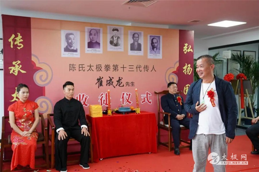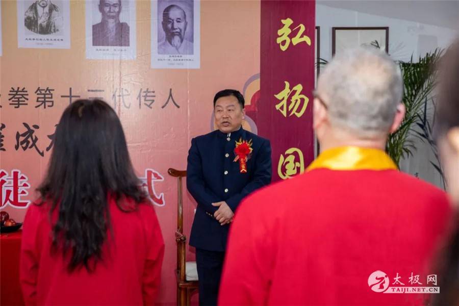 5月16日,东武太极研修院南京分院挂牌暨崔成龙老师收徒仪式顺利举行,张东武老师携多位弟子出席相关活动。 东武太极研修院南京分院由陈式太极拳第十三代传人、张东武老师入室弟子崔成龙出任分院院长兼总教练系统传授陈式太极拳、械套路、养生功法及推手技法。 张东武老师、崔成龙总教练、特邀嘉宾:江苏万达原野旅游公司董事长,南京成龙太极拳馆荣誉馆长张阅斌、江苏中拓国际投资集团有限公司董事长丁先喜、江苏新华金鹰传媒股份有限公司总经理耿立、南京海联物业服务有限公司董事长林建树、安徽和粮农业有限公司董事长戚玉宝、江苏六维物流装备股份有限公司运营总监张凯、南京光盒传媒有限公司董事长张晨淹以及多位弟子、拳友出席相关活动。 东武太极研修院院长张东武老师在挂牌仪式上宣读分院成立授权书并发表贺词对分院成立寄语:以发扬武术之精髓,弘扬武者之精神,传承弘扬陈氏太极拳及其蕴含的传统文化思想为已任,把正宗的太极拳带给大家,为大家提供一个学习太极、感受太极、强身健体、放松身心的理想场所。 优秀学员马晓光在揭牌仪式上进行了热情洋溢的代表发言。 随后崔成龙老师收徒仪式在分院举行,八位太极拳爱好者通过传统仪式正式拜入崔成龙老师门下,成为陈式太极拳第十四代传人。仪式在师父张东武老师关心下,同门师兄弟及拳友的见证中,尊崇太极传承文化的传统的拜师仪式在严肃而热烈的氛围中举行。 崔成龙向莅临活动领导嘉宾及拳友们表示感谢,希望新入门的弟子们能够恪守门规祖训,认真习练太极拳,用心体悟太极文化,为太极拳的传播和推广做出积极的贡献,为太极拳事业的蓬勃发展坚持奋斗。 最后,张东武老师给前来祝贺及新入门再传弟子上了一节生动的理论课。通过太极拳习练过程中对周身各部位要求的系统讲解与阐述并结合自己三十余年习拳、教学经验向大家详细讲解了太极拳习练过程中的基本运动规律、原理以及一些容易出现的错误和正确练习方法。同时对大家在习练过程中的常见困惑也做了重点讲解,让大家真正能够明拳理,习正宗太极,为分院挂牌带来太极传播第一课。 |