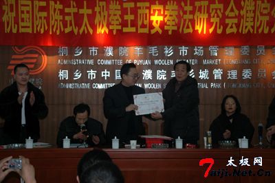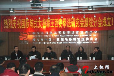 | 元月12日,浙江桐乡王西安拳法研究会濮院分会成立,太极大师王西安、王西安拳法研究会会长阎素杰应邀到会祝贺。濮院分会成员名单: 总兼:王西安 名誉会长:卜掌浩 名誉顾问:曹月松 顾问:夏长河 钟建良 会长:钱水根 副会长:沈安明 黄先富 吕银根 沈健 秘书长:沈健 副秘书长:周军兵 刘日寒 曹永刚 常务委员: 吕银根 沈长青 沈安明 沈 健 顾健明 周军兵 顾建中 黄先富 陆国良 钱水根 罗国军 刘日寒 曹永刚 云 华 委员: 李萧峰 周如远 吕豪康 陆伟杰 俞杰 罗家凯 王永军