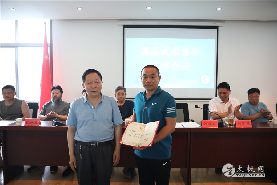 (太极网讯)2021年6月11日下午,温县武术协会工作会议在县武术培训中心隆重召开。县武管中心副主任刘高杰、武协主席张胜利、武协名誉副主席陈小星、武协监委会主任陈绍杰、武协副主席陈有华、陈冲、张保忠、陈大虎等在主席台就坐,参加会议的有武协副秘书长、常务理事、理事50余人参加了会议,会议由张胜利主持。 首先,张胜利主席向大家作了《武协工作报告》,对武协两年的工作做了全面总结,并对今后的工作进行了安排。会上张主席宣读了聘任陈家沟党支部书记陈冲为武协名誉副主席,任命谭莹、田培亮两位同志为武协副秘书长的通知,选举宋开嵩为武协副主席,并颁发了聘书。 最后,县武管中心副主任刘高杰做了重要讲话,他提出武协及广大拳师朋友尽快更新观念,用大太极拳观开创新局面;做好政策文章,用政策助推太极拳产业;发挥集体力量,共筑太极拳大业;特别强调了太极推手的重要性和推广套路的可行性。希望广大拳友始终牢记“为人类送健康”的使命,用“敢叫日月换新天”的昂扬斗志,谱写太极拳事业新篇章,开创太极拳发展新伟业! 责编:阿祖 |