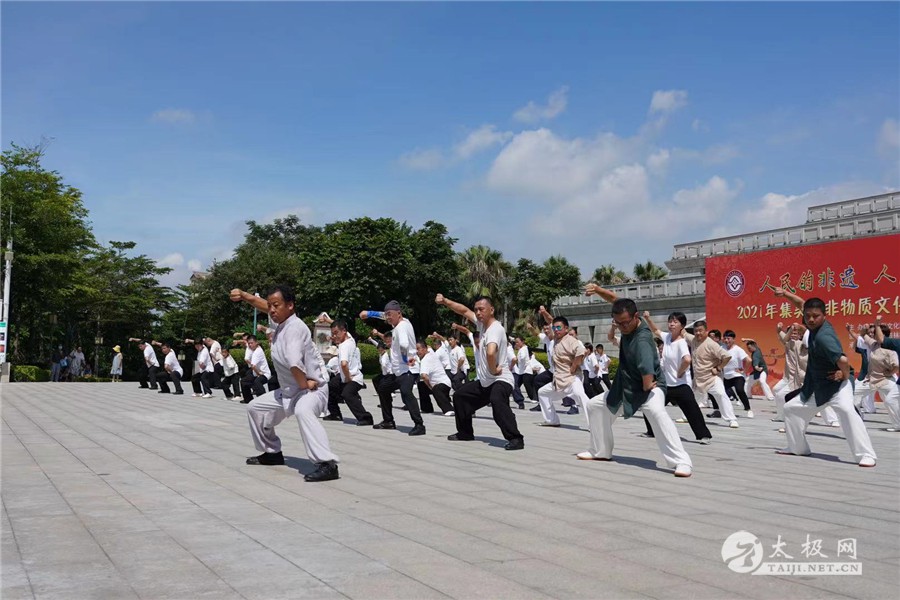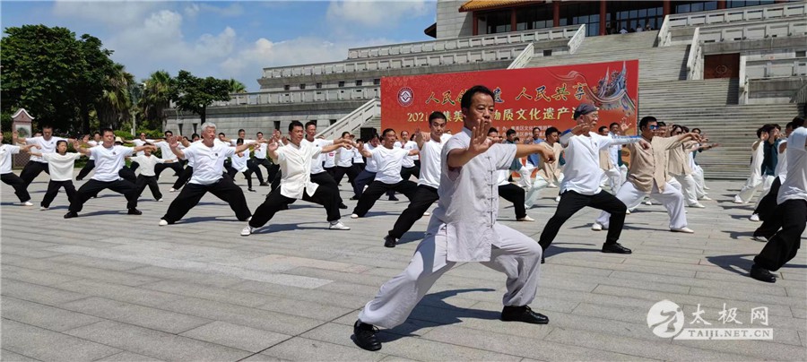 陈恩领衔百余人展演太极拳 2021年“文化和自然遗产日”,为营造非遗保护浓厚社会氛围,传承弘扬中华优秀传统文化,厦门以全新的“非遗+”概念贯穿各相关领域、行业,以线上、线下相结合的方式,在全市各区举办非遗宣传展示及活动近百十场,让非遗保护成果惠及全市人民和游客朋友。 6月12日,厦门集美区非物质文化遗产汇演活动在区杏林文体中心广场隆重举办。本次活动由集美区文化和旅游局主办,厦门市非物质文化遗产保护中心承办,集美区杏林街道办事处协办。本次活动是闽南地区的大型非遗文化活动,参与人数近千人,场面盛大、气势恢宏。 陈恩领衔太极拳百人展演方阵