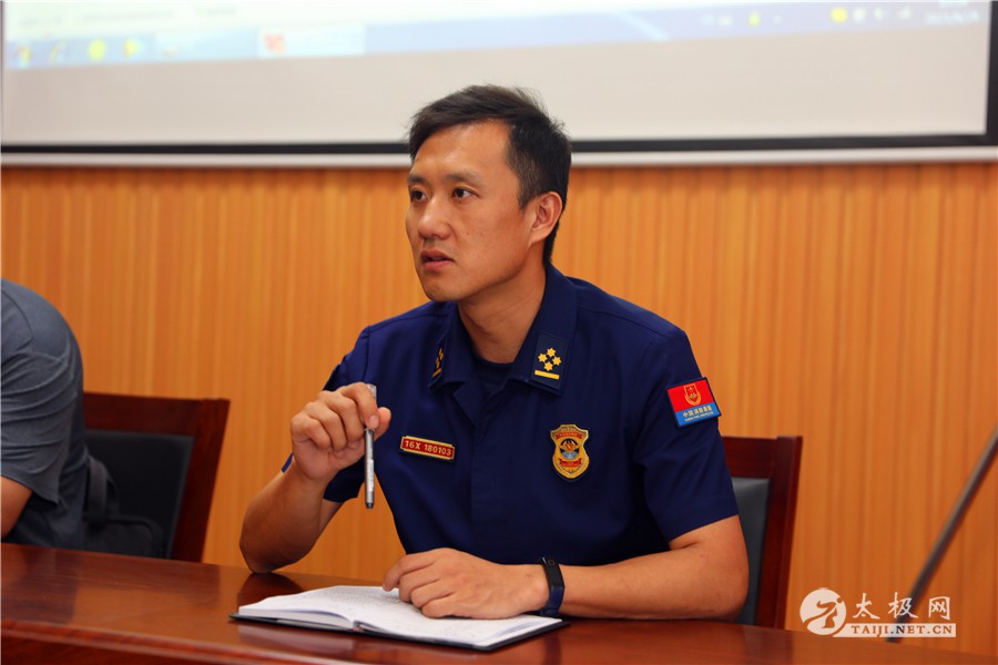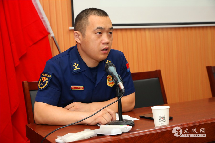 杨玉川讲解消防知识 县消防救援大队从普及消防知识出发,详细讲解了引发火灾原因、火灾报警的要点、灭火基本方法、基本消防器材的使用以及引发火灾后的逃生方法、逃生步骤等。并针对武馆武校,提出了切实有效的火灾预防建议。