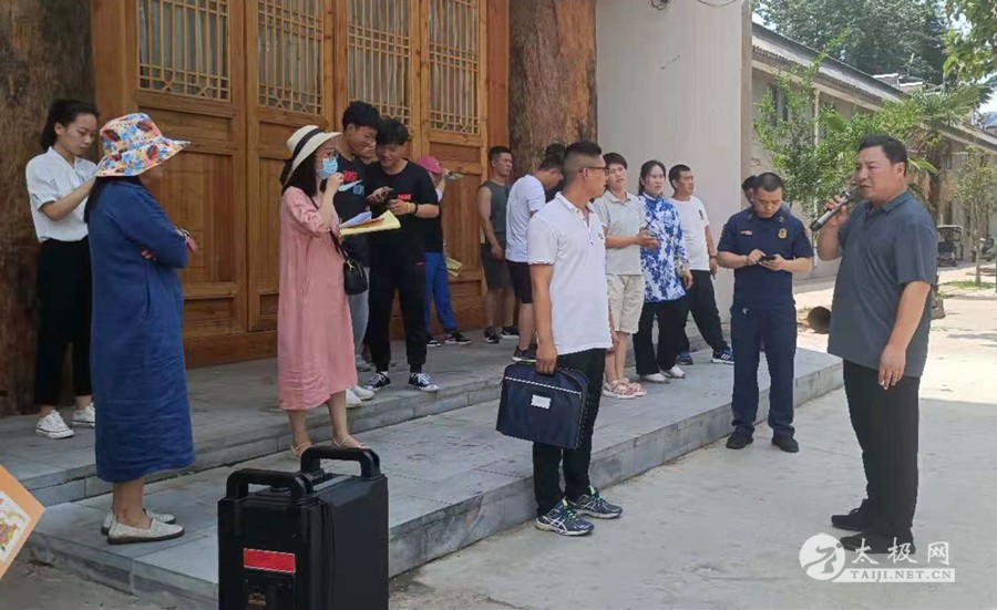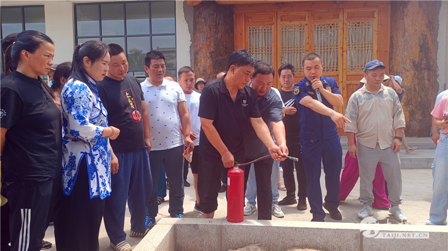 (太极网讯)6月26日,温县太极拳武术文化管理中心在陈家沟组织开展“预防为主,安全第一”为主题的消防安全培训及应急演练活动。目的是为增强大家消防意识,提高火灾扑救及自救能力。温县太极拳武术文化管理中心主任任海林、温县消防救援大队大队长周磊、温县太极拳武术文化管理中心副主任刘高杰、温县消防救援大队助理工程师杨玉川出席活动,全县各武馆武校相关负责人参加活动。