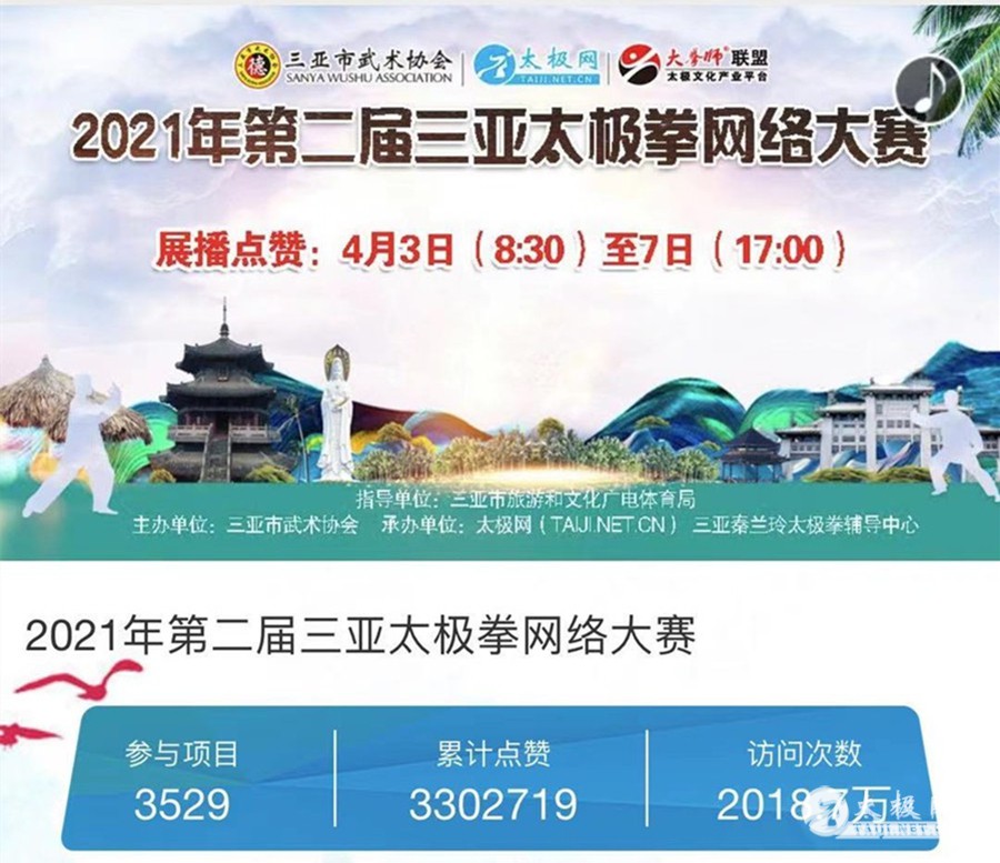 自2016年首届三亚国际武术节举办以来,武术节历经了4届线下赛事和2届线上赛事。武术节充分利用互联网手段,通过新浪、腾讯、网易、三亚网、太极网、三亚全球直播等众多媒体加持,实现了线上线下互动,使传统太极文化焕发崭新时代活力。 三亚国际武术节旨在打造具有世界影响力的中国太极文化品牌,形成三亚武术文化品牌特色,助推三亚体育事业及旅游事业的发展,进一步弘扬中华优秀传统文化,促进太极拳在世界范围的发展,扩大中华优秀文化的国际影响力,增进世界各国太极拳爱好者之间的友谊和交流。 武术节历程 首届三亚国际武术文化节开幕 2016年1月,首届“全球金融集团杯”三亚国际武术节举办。来自国外60多支代表队600余名运动员参加本次大赛。比赛特设活动:国际功夫高峰论坛、世界武术冠军精英大汇演、功夫明星见面会、三亚国际武术节优秀教练员评选活动、三亚观光超值游。 2017第二届武术节24式太极拳开幕表演 2017年12月,第二届三亚国际武术节举办。来自国内外60支代表队、近700名选手参加比赛,比赛项目多达300多个,保留首届的5项特设活动。 2018年三亚国际武术节精要18式太极拳集体展演 2018年12月,第三届三亚国际武术节举办。来自全球15个国家和地区的60多个代表队共1500余人参加,本届比赛保留原有项目的基础上350名小学生参加活动,有力推动了“武术进校园”的开展。 2019年三亚国际武术节名家展演 2019年12月,第四届三亚国际武术节举办。来自世界各地80余支代表队1000余名武术爱好者们。本届文化节活动的内容、形式和规模都在前三届的基础上加以创新和提升,活动包括三亚国际武术旅游文化节开幕式、高峰论坛、寻找“三亚国际武术形象大使”、三亚文化游等多项活动,着力于打造“互联网+武术+赛事+旅游”的精品特色武术活动。 2020年三亚首届太极拳网络大赛连云港队展演视频 2020年7月,三亚市武术协会、太极网联合发起的三亚首届太极拳网络大赛举办,赛事以《健康三亚·太极战“疫”》主题,赛事采用全新的线上报名、录制参赛视频、在线展播及投票的模式。参赛项目231项,5天展播,投票点赞33万次,平台累计网络访问量581万次。 2021年4月,三亚第二届太极拳网络大赛举办,参与视频项目3500余项,参与人数更是超过4000人,短短5天时间,平台累计网络访问量2000余万次,投票点赞300余万次。 三亚国际武术节暨三亚太极拳网络大赛,历经6年的风雨沉淀,已形成三亚特有的武术品牌形象,发展成为了具有深远影响力的国际武术赛事,提高了社会对武术太极赛事的关注度和参与度,扩大了武术太极赛事的社会影响力,盘活了武术文化资源,推动了城市的经济发展,不仅为全世界拳友们打造一个交流拳技的平台,更为太极拳的传播和太极文化产业的发展做出不可磨灭的贡献。 编辑:太极网李小 |