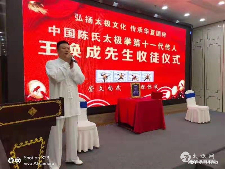 2021年7月11日下午,陈长义功夫研究会盐城分会在盐城薇满楼大酒店成功举办了一场传统文化收徒仪式。陈氏太极拳第十一代传承人王焕成再收新徒,陈庆华、戴万阳、施展、沈干群、周宇等16名优秀太极拳爱好者经过严格考核正式拜入王焕成老师门下,肩负起太极文化的传承和发展的历史使命。 陈长义功夫研究总会吉国军贺电 陈长义功夫研究会总会会长吉国军特别发来贺电,对王焕成老师收徒表示祝贺,希望新入门弟子在王焕成老师的带领下练好拳,预祝收徒仪式成功举办。 收徒仪式遵循传统,简洁庄重。王焕成携16名新入门弟子祭拜先祖,感念先辈创拳之辛劳,缅怀先辈传拳之恩德。新入门弟子一一向师父行拜师礼、敬拜师贴,接受师父回帖,在众到场嘉宾的见证之下圆满礼成。仪式由协会分会秘书长兼副会长唐芹芳主持。 新入门弟子代表陈庆华发言 新入门弟子代表戴万阳发言 新入门小弟子周宇 新入门弟子表示,今天能够觅得良师,成为老师的弟子,感到无比荣幸。今后定当谨遵师父教导,恪守门规祖训,团结师门,为早日成为合格的传承人不断努力,为太极拳的传播和发展贡献自己的力量。 陈长义功夫研究会盐城分会会长王焕成讲话 王焕成老师对嘉宾表示感谢,希望新入门弟子恪守门规祖训,团结师门,学好拳做好人,秉承太极传承人的责任,担负起弘扬太极文化的历史使命。他还表示,今后将会继续致力于太极拳的推广和传播,培养更多优秀的传承人,为太极拳事业的发展奋斗终身。 编辑:李小 |