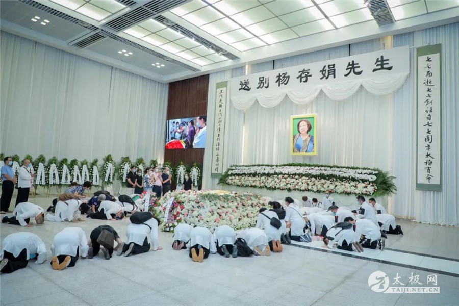 国际武术九段、当代太极拳泰斗傅声远宗师的夫人杨存娟先生,因病医治无效,不幸于辛丑年七月初七午时病逝于上海,享年八十岁。 杨存娟先生遗体告别仪式于2021年8月28日上午10点,在上海龙华殡仪馆大厅举行。全国各地及世界各国的太极拳组织及个人敬献花篮。 邯郸太极拳协会会长、傅声远宗师弟子杨清波致悼词。 邯郸广府生态文化园区管委会副主任刘福印先生代表家乡致悼辞。 傅清泉代表家属答谢百忙中参加告别仪式的领导、拳友同门、亲朋好友。 出席告别仪式的还有来自全国的武术太极拳协会和组织的代表,以及傅门弟子、亲朋好友。 |