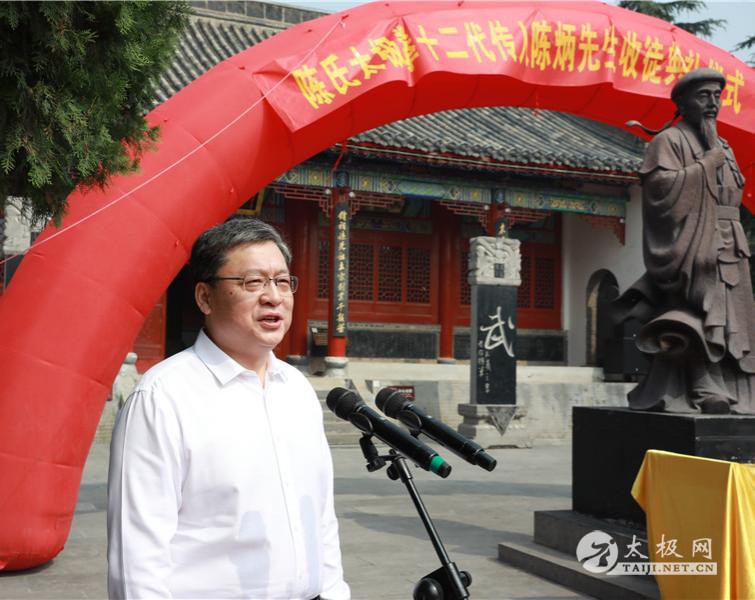 (太极网讯)2021年10月2日,在国庆佳节、喜迎建党百年之际,陈家沟陈氏第二十世、陈式太极拳第十二代传承人、陈家沟国际太极院院长陈炳老师收徒仪式在太极拳发源地陈家沟祖祠内隆重举行。来自全国各地的118名太极拳爱好者经过师门考核通过,通过传统拜师仪式拜入陈炳老师门下,正式成为陈式太极拳第十三代传人。 出席收徒仪式的领导和嘉宾有:焦作市文化广电和旅游局二级调研员姬光辉,温县县委常委、县人民政府常务副县长陈宁,焦作市非物质文化遗产保护中心专家委员会常务副主任王波,陈家沟景区管理局局长刘中原,温县融媒体中心主任白占军,温县太极拳武术文化管理中心主任任海林,陈家沟景区管理局副局长郑宏运,温县文化馆馆长、县非遗保护中心主任闫忙种,温县国土资源局领导赵曙光,太极道公司总经理沈义胜,陈家沟村民委会主任、党支部书记陈冲,陈家沟陈氏家族理事会秘书长陈一华,陈氏太极拳小架第十二代代表性传承人陈沛林,湖南石门县太极拳协会会长宋棣华,太极网总编李超、温州陈家沟陈卫生太极拳馆馆长陈卫生、深圳陈炳太极总院总教练吴占涛、陈家沟国际太极院顾问邢红军、深圳李斌太极拳馆馆长李斌、陈小旺大师入门弟子李光伟等。 陈炳老师宣读祭祖辞(陈绍桐、李昕橦执文) 收徒仪式由闫忙种主持。仪式在恢弘嘹亮的中华人民共和国国歌声中拉开序幕。陈氏太极拳第十三代传承人郑赢全宣读新入门的118名弟子名单,陈炳老师宣读祭祖辞。 温县县委常委、常务副县长陈宁讲话 温县县委常委、常务副县长陈宁在讲话中向陈炳老师及新入门弟子表示祝贺,他高度评价和肯定了陈炳老师的武德和武艺,是陈家沟中青代的杰出代表,寄望新入门弟子在跟随陈炳老师学拳艺、修武德的同时,共同为太极拳走向世界助力。并祝愿陈炳老师的太极传播事业枝繁叶茂,发展更创辉煌。 陈炳训话 陈炳向新入门弟子训戒,一定要不忘初心,练好拳,做好人。团结师门,尊师重道。用心去体悟太极文化的博大精深,努力成为合格的太极拳传承人,为传播和弘扬太极拳做出自己应有的贡献。 闫忙种主持 郑赢全宣读新入门弟子名单 陈氏太极拳第十三代传承人陈晨宣读门规戒律 弟子代表谢威龙发言 仪式上,陈家沟陈氏家族代表陈一华焚香跪拜,祭奠先祖。陈炳老师随后向先祖行礼,告慰始祖,以示传承有续。新入门的118名弟子在太极拳始祖陈王廷铜像前分列站定,依次上前向师父、师母行拜师礼,递拜师贴,陈炳老师为弟子披挂绶带。新入门弟子向太极拳始祖及历代宗师敬香。收徒仪式在嘉宾们的见证之下,圆满礼成。 新入门弟子谢威龙代表发言,他表示很荣幸能拜入陈炳老师门下,今后会以太极拳传承人的身份严格要求自我,会和师兄弟们一起用心学拳,刻苦钻研,谨遵师父教诲,为太极拳文化传承和传播事业积极奉献。 陈炳上香行礼 仪式现场 新弟子上香 陈炳率众弟子演练太极和谐十三式 仪式最后,陈炳老师携众弟子共同演练陈氏太极和谐十三式,为大家献上一场太极视觉盛宴。 陈炳率众弟子向陈小星行礼 陈炳,1971年出生于太极拳名门世家,陈家沟陈氏第二十世,陈氏太极拳第十二代正宗传人,焦作市非物质文化遗产(陈氏太极拳)代表性传承人。全国武术太极拳锦标赛冠军、国家一级拳师、国家一级武术裁判、河南省优秀武术教练员。温县太极十杰之一,陈家沟八大天王之一,太极网首席武术导师。现任陈家沟太极拳协会会长,陈家沟国际太极院院长。传拳足迹遍及世界各地,开设国内分馆120余个,国外分院28个,海外授拳4万人次。本次收徒传承为太极拳队伍再添新鲜血液,相信陈炳老师会带领他的弟子们为太极拳传播发展做出更多、更大的贡献! |
