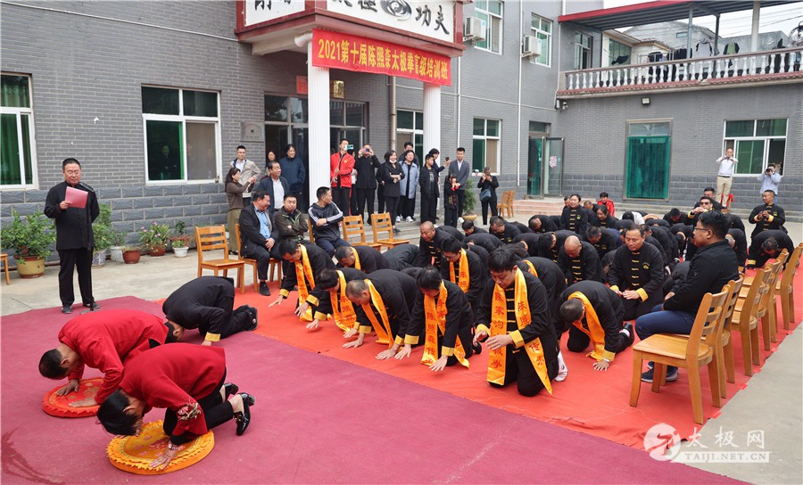 (太极网讯)10月5日,太极拳发源地温县陈家沟迎来一场太极盛事,恰逢第十届陈照森太极拳高级培训班结业之际,非物质文化遗产陈氏太极拳代表性传承人、陈家沟陈氏第十九世、陈式太极拳第十一代传人、陈家沟西北拳社第五代传人陈照森大师的收徒仪式于陈家沟太极拳功夫学校隆重举行,在百余名陈照森太极拳体系弟子传人见证下,北京胡星朗、河北廊坊汤颖、山东青岛邹常山、江西赣州康军、河南安阳韩有才、江苏泰州汤学斌、河南滑县明立彪、广西贺州李尚谷、广东饶平张伟君、河南滑县谷建国等10名来自全国各地的太极爱好者通过传统拜师仪式拜入陈照森门下,正式成为陈式太极拳第十二代传人,承担起传承太极拳、弘扬太极文化的使命和责任担当。 仪式主持人李葆盛 传道授业,尊师重道是中华民族传统美德。太极拳,源远流长,博大精深,是中国优秀的传统文化之一,千百年来,师徒相授一直是武术最主要的传承形式,强调师徒名分,讲究尊师礼节,注重拜师尤其神圣,隆重,意义非凡。 拜师仪式开始前,现场全体成员起立面向太极拳始祖陈王廷及太极拳历代先贤,鞠躬致意,感念传拳恩德。 正阳县县委统战部部长杨大森特别出席本次收徒仪式。温县太极拳武术文化管理中心主任任海林,赵堡镇人民政府镇长刘虎臣,陈家沟村委会主任、党支部书记陈冲,温县太极拳武术文化管理中心办公室主任闫新鹏,温县太极拳武术文化管理中心事业科科长姬合敏,温县综合执法局驻陈家沟景区市容办主任陈长运,陈家沟村村委委员安三旺,易德太极文创公司总经理陈皂罗,陈照森太极拳研究会执行会长赵地生,陈家沟陈氏家族理事会陈海法,大春太极山庄董事长王大春,太极网主编李超等出席活动。 陈照森大师祭祖 陈志伟宣读祭祖文 拜师仪式恭敬庄严,陈氏太极拳第十二代传承人、陈家沟太极拳功夫学校执行校长陈志伟宣读祭祖文。陈氏太极拳第十一代传承人、陈家沟太极拳功夫学校校长陈照森向太极拳始祖陈王廷及历代宗师上香敬酒,并带领全体人员鞠躬致敬,缅怀先辈创拳之辛劳,感念先师传拳之恩德。 拜师仪式 任海林致辞 温县太极拳武术文化管理中心主任任海林致辞,他向陈照森大师喜收高徒及新弟子得拜良师表示祝贺,对陈照森大师多年来为太极拳事业发展所做出的成绩与贡献给与高度肯定,寄望大家拜师后能够更加钻研太极拳,共同为太极拳的传播推广贡献力量。 师父陈照森训话 陈照森大师向新入门弟子训诫:拜师只是成为太极拳传承人的开始,对师父和弟子都提出更高要求,要肩负起责任与担当,需德艺兼修,时刻以陈家沟太极拳传承人的身份要求和完善太极修行。希望弟子们练好拳、教好拳、做好人,为太极文化传播与发展做出自己应有的贡献,传播健康造福社会。 师兄王运宜宣读门规戒律宣 陈式太极拳第十二代传人、陈照森太极拳研究会会长王运宜宣读门规戒律宣读门规戒律。新入门弟子代表胡星朗表态发言:今日有幸拜入陈照森大师门下,将肩负起传承和传播太极拳之责任担当,更加认真学习太极拳,传承好西北拳社的拳法与精神!以弘扬太极文化为己任,为太极拳的传播发展贡献力量。 见证人赵地生讲话 新入门弟子发言 陈志伟上香 老弟子依次上香 最后,在陈照森大师的带领下,新老弟子集体叩拜太极拳始祖陈王廷以及太极拳历代先贤,拜师仪式圆满礼成。 合影留念 责任编辑:太极网李宁 |