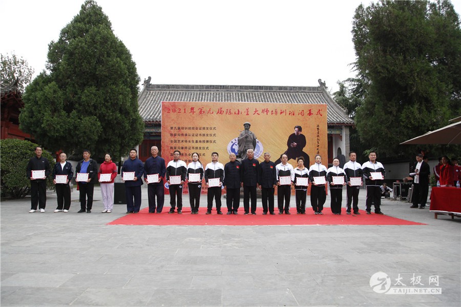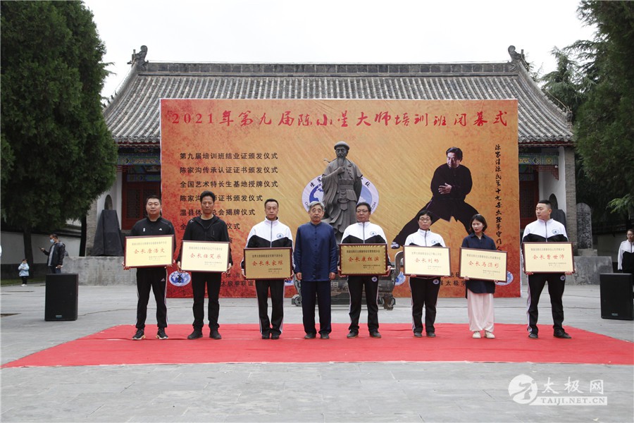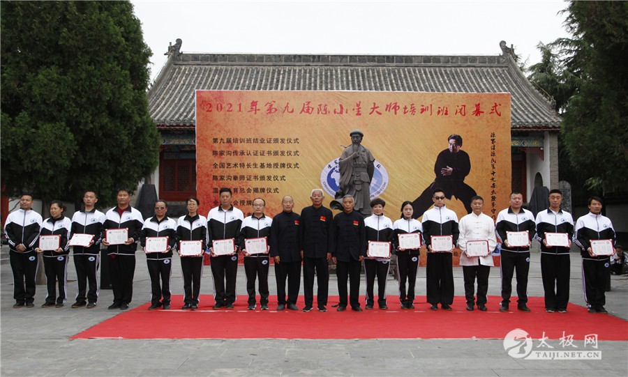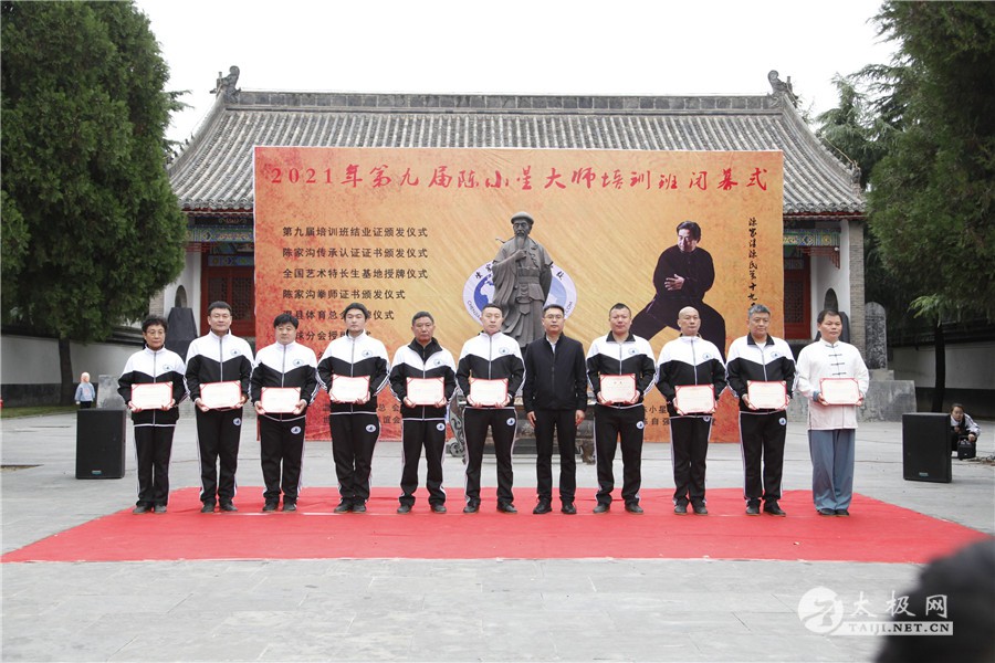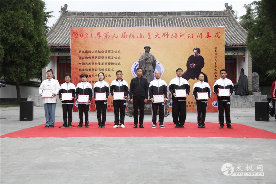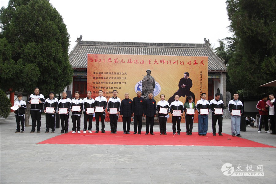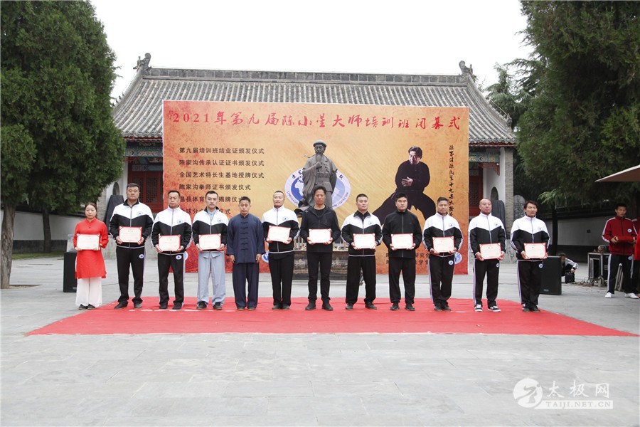 (太极网讯)10月5日,2021年第九届陈小星大师培训班学员们经过4天的紧张学习正式结业,来自全国的太极拳爱好者们在太极拳发源地温县陈家沟通过结业考核,大家和陈小星老师零距离接触,相互切磋交流,收获满满。培训班闭幕式于陈家沟隆重举行,并现场颁发了陈家沟传承人证书、拳师证书和温县体育总会聘书,举行了10家全球分会授牌仪式以及郑州艺术师范学校陈家沟分校和温县体育总会的揭牌仪式,期间进行了精彩纷呈的名家表演。 陈家沟陈氏第十九世太极拳守门人陈小星,温县体育运动发展中心主任胡腾飞,郑州艺术幼儿师范学校宋志强,陈家沟村委会主任陈冲,陈家沟陈氏家族族长陈景安,陈家沟陈氏家族理事会主任陈一华、秘书长陈石岩,陈家沟太极拳学校总教练陈自强等出席闭幕式。 陈景安、陈一华、陈石岩颁发证书 陈冲颁发证书 胡腾飞、陈自强颁发聘书 陈小星为分会授牌 主持人张宗军、卢丽春 名家展演 揭牌仪式 合影 责编:豪杰 |