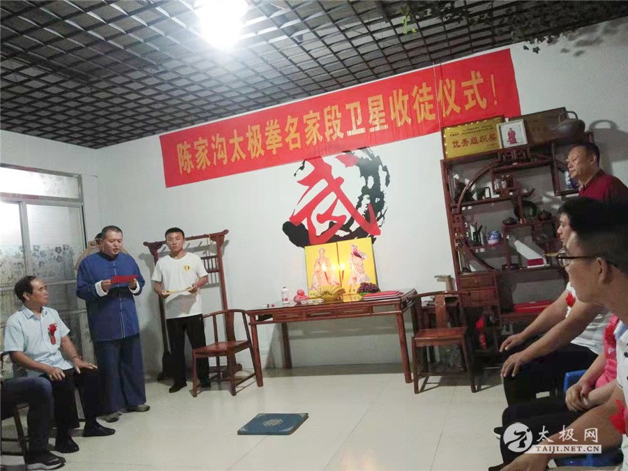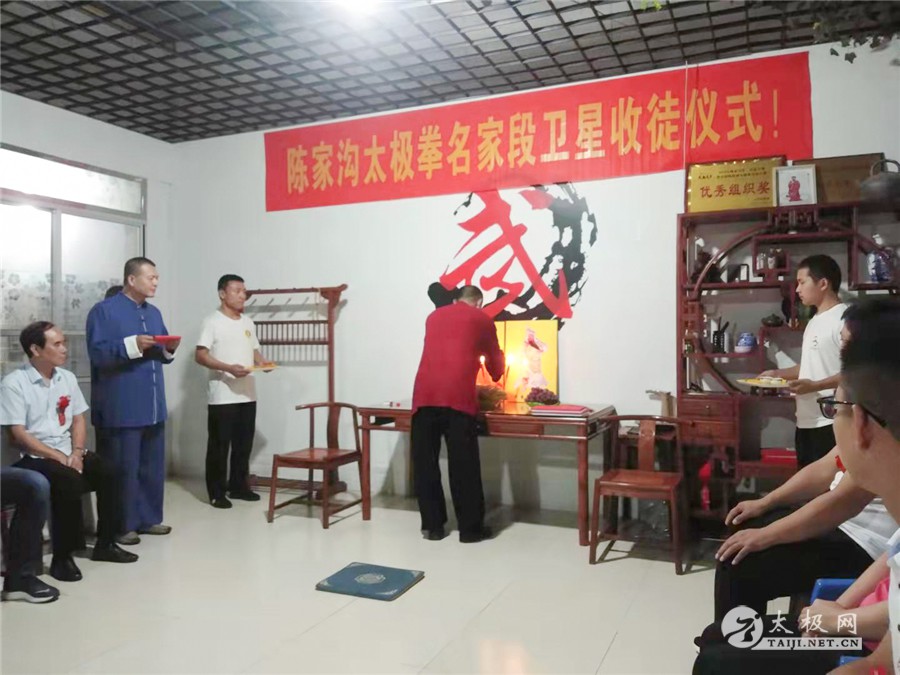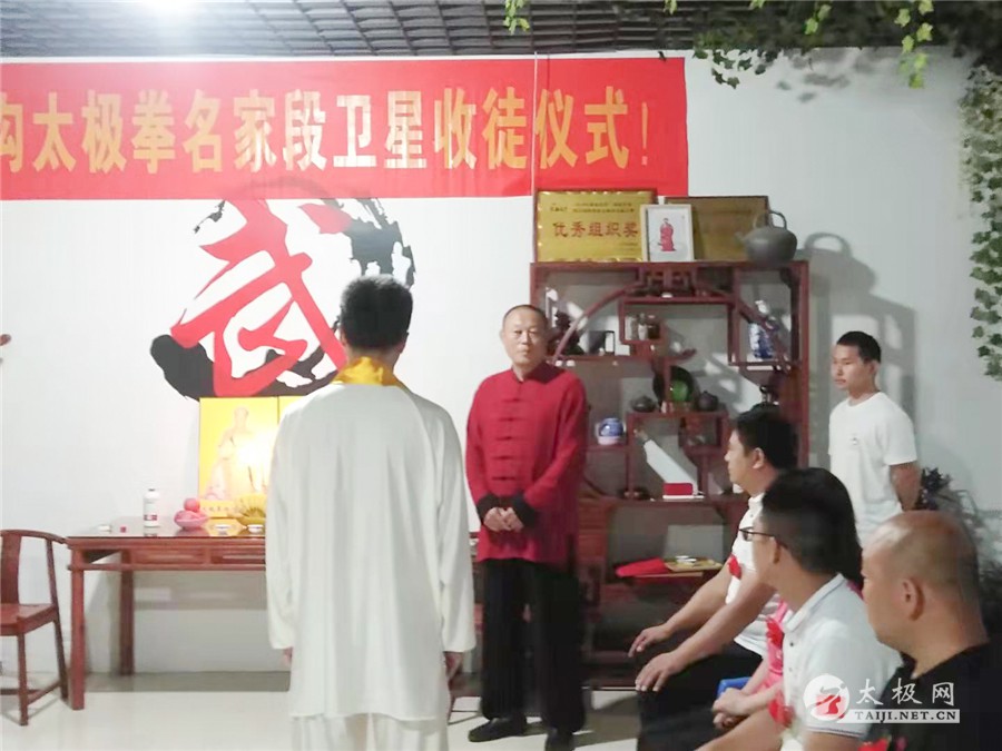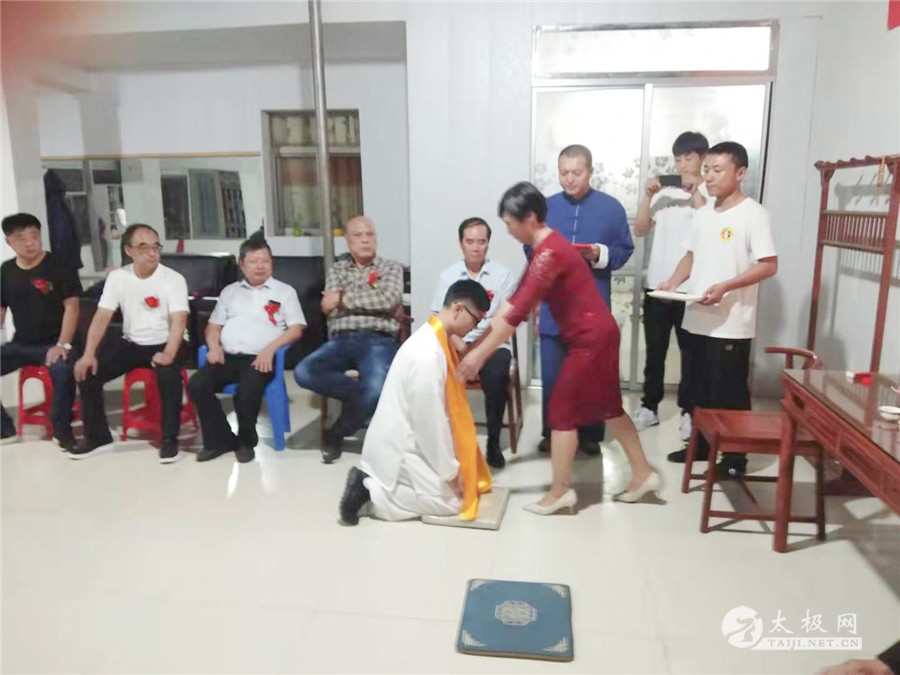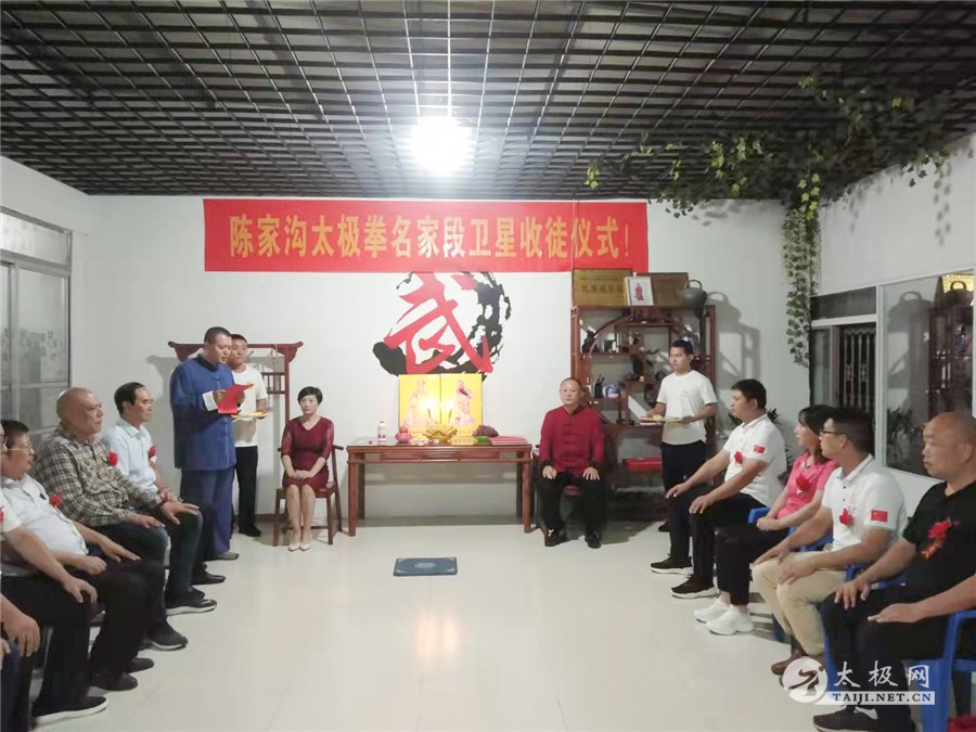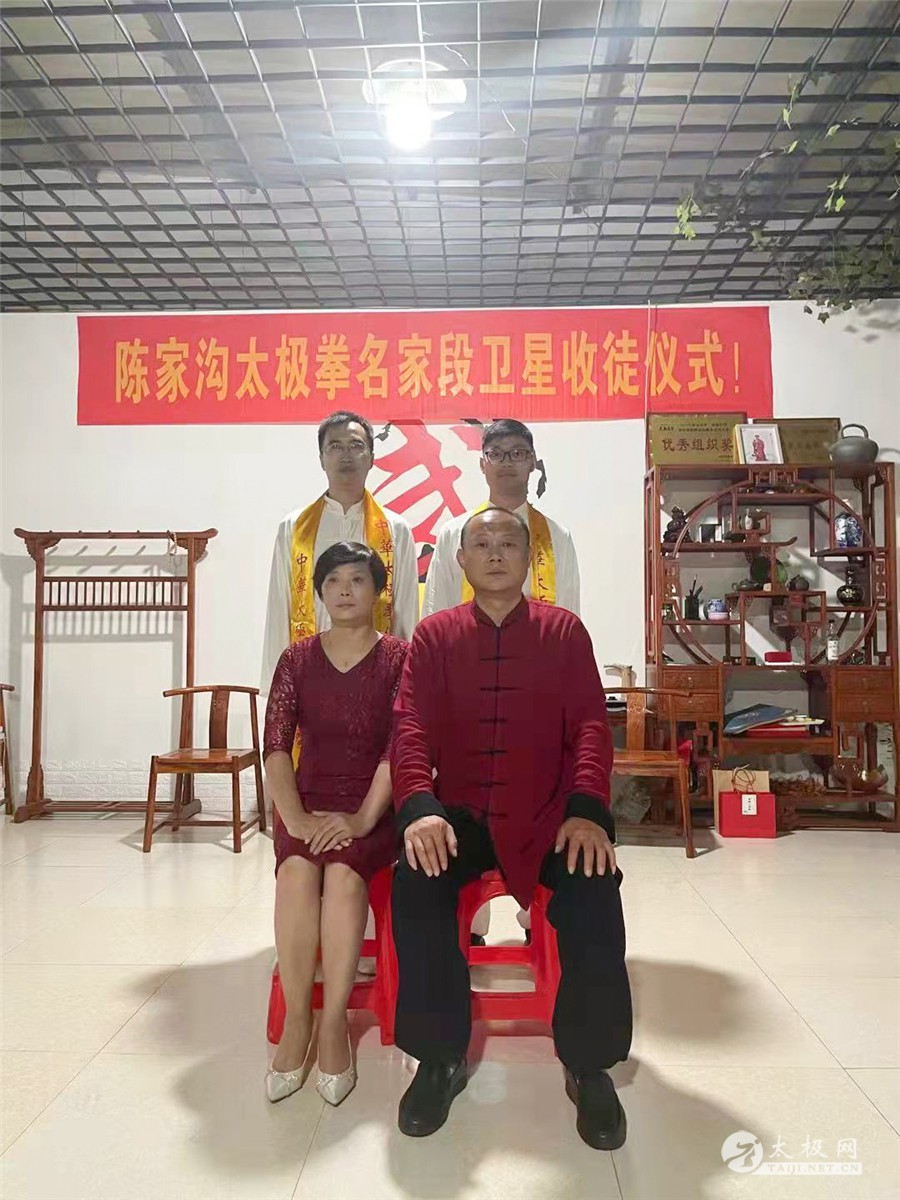 (太极网讯)金秋送爽,薪火传递,2021年10月13日,陈家沟太极拳名家段卫星老师收徒仪式在靖江市陈家沟段卫星太极拳馆隆重举行,在众多嘉宾的见证下,朱杰、闻嘉玺两位太极拳爱好者拜入段卫星老师门下成为陈式太极拳传人,将承担起传承太极文化的责任。 温县太极拳武术文化管理中心副主任刘高杰、办公室主任闫新鹏先生,温县武术协会秘书长马金婷,陈家沟王向忠太极拳馆馆长王向忠,温县启程体育有限责任公司经理李秋丽,靖江市法院退休干部及拳馆荣誉馆长赵卫民,靖江市体彩中心主任沈剑,时代广场农贸责任有限公司总经理及拳馆理事会主席鄂忠林,江苏神一海洋公司主任姜文高,靖江市晨光冶金电力有限责任公司董事长宦正凤,靖江市精武太极文化传播有限责任公司总经理刘汉军,靖江市陈家沟段卫星太极拳馆会长林先飞、秘书长顾卫文等嘉宾出席收徒仪式。 段卫星老师向太极拳始祖上香敬酒 新入门弟子向师父师母递交拜师贴、行拜师礼 师父师母给弟子回帖、披挂绶带 弟子张圣主持 拜师仪式由弟子张圣主持。仪式遵循传统、简洁庄重。段卫星老师向太极拳始祖上香敬酒,感念始祖之恩德。新入门弟子向师父师母递交拜师贴、行拜师礼,师父师母给弟子回帖、披挂绶带。 刘高杰代表温县武管中心致辞 段卫星老师训话 段卫星老师向新入门弟子训话,希望他们能够团结同道,要承担起继承、传承和发扬光大本门太极拳的责任和义务,为太极拳事业的传播做出自己的努力。 新弟子和师父师母合影 嘉宾同段卫星老师及弟子合影 在场的嘉宾见证了这一隆重时刻,为太极拳纳入新鲜血液,纷纷对段卫星老师喜收新徒表示祝贺,最后弟子同师父、师母及嘉宾集体合影留念,拜师仪式圆满完成! 责编:李小 |