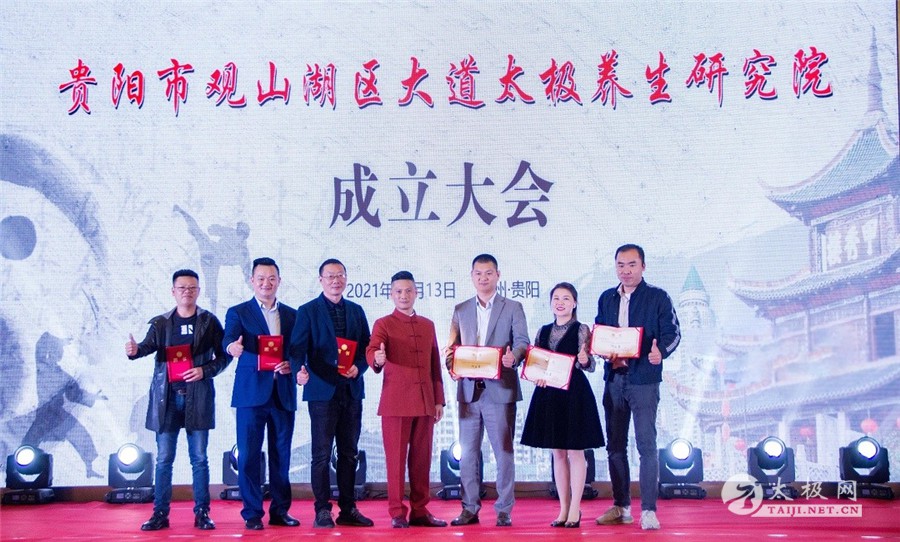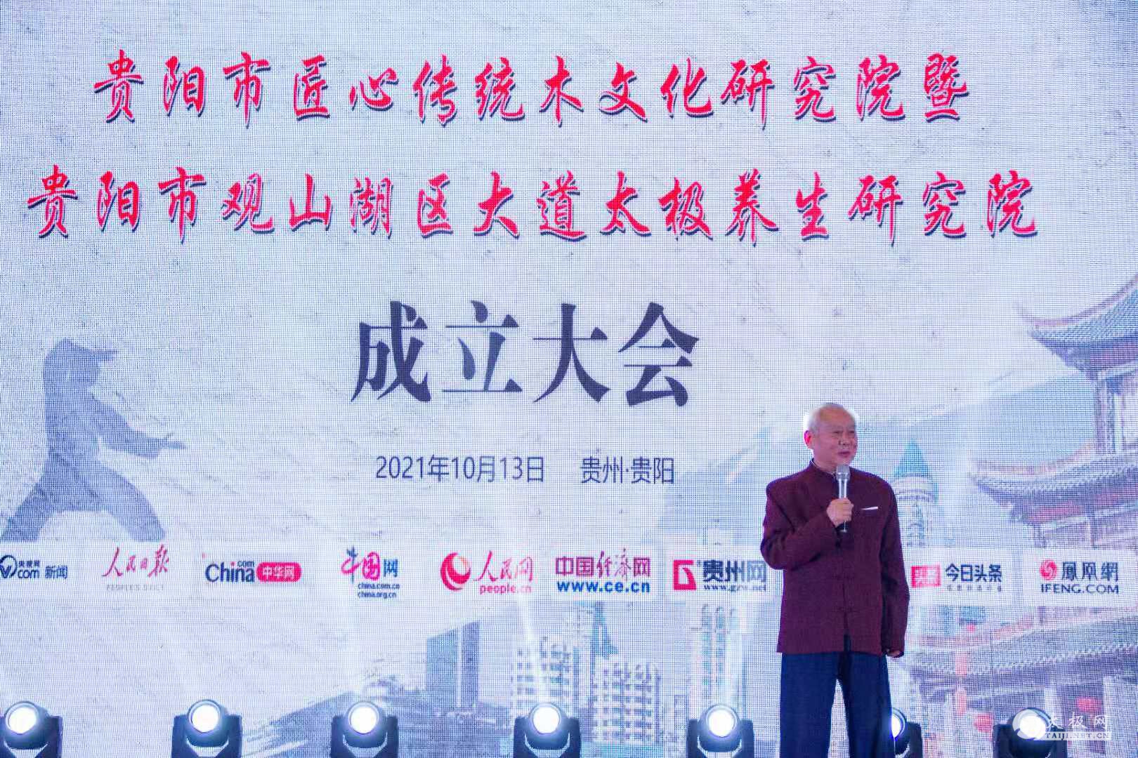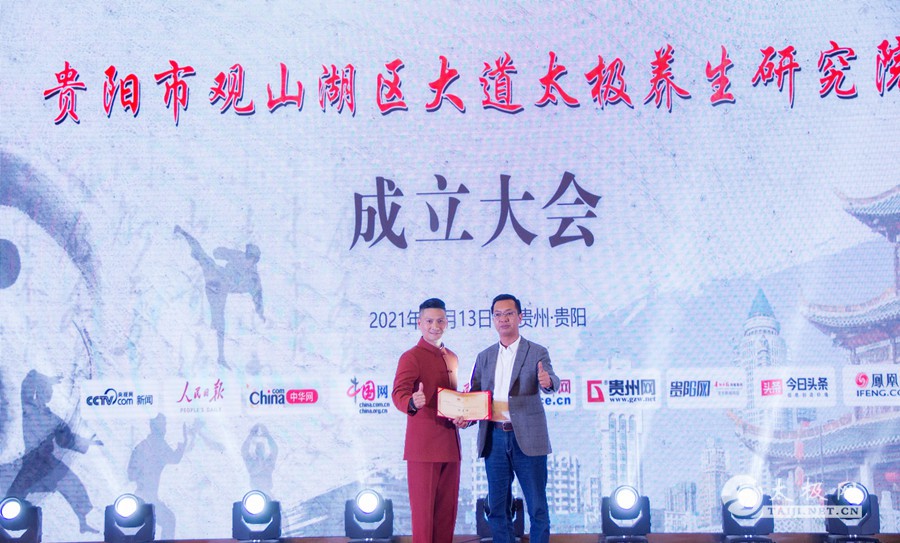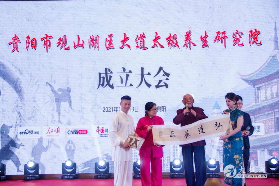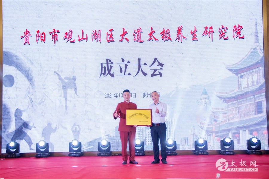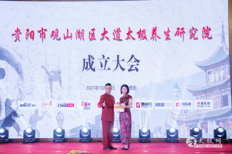 (太极网讯)传承太极,彰显大道。2021年10月13日,贵阳市观山湖区大道太极养生研究院成立大会在贵阳保利温泉酒店隆重举行。与此同时,贵阳市匠心传统木文化研究院同步成立。贵阳市观山湖区文体广电旅游局局长吴兴科出席大会并宣读研究院成立批复,并向研究院发起人罗明灵授牌。 当代陈式太极拳代表性传人陈照森、杨式太极拳代表性传人赵幼斌应邀出席,致辞祝贺并献上了精彩的太极拳表演,将活动推向高潮。太极网总编李超、“豫记太极”赛事创办人王明、太极拳优秀传人严正东等太极界代表应邀出席。老缅国际集团皇家原木定制董事长刘拥恒、中国民间文艺保护人辛宏凯等200余名社会各界精英人士及贵州省、重庆市等地多家社会组织负责人共同见证。 吴兴科向罗明灵授牌 两家社会组织共同举行成立大会,旨在深入贯彻落实党的十九大精神和弘扬中华优秀传统文化和全民体育健身精神的号召,将大力提倡“弘扬传统文化、传播民族精神、彰显太极大道、创造木业巨匠”的活动宗旨。贵阳市观山湖区大道太极养生研究院是贵州省首家由观山湖区文体广电旅游局作为业务指导单位,由观山湖区民政局批准登记成立的一家社会组织;其业务范围: (一)从事传统太极养生研究、传播、组织表演:(二)太极健身技术指导和培训、传承服务;(三)组织太极体育竞赛、技术交流、学术论坛活动。 大道太极养生研究院院长罗明灵(左)、匠心传统木文化研究院院长曹继飞 陈照森致辞 赵幼斌致辞 大道太极养生研究院院长罗明灵致辞表示,研究院将遵循“大道致简”,用“道生万物,道于万事万物中,以百态存于自然”终极理念,把中华优秀太极养生体育技术传承、传播好,提高市民的体育健身水平和养生文化的认知,今后贵阳市观山湖区大道太极养生研究院将严格按照章程宗旨遵守宪法、法律、法规和国家政策,践行社会主义核心价值观,遵守社会道德风尚及体育精神,致力于提倡民间全民太极养生的发展和传播。 罗明灵向陈照森、赵幼斌颁发研究院名誉顾问聘书 罗明灵向严正东、宋眼林颁发副院长聘书 罗明灵向太极研究院办公室主任曹鲜颁发聘书 罗明灵向太极研究院指导师李谦颁发聘书 罗明灵向太极研究院研究员等人颁发聘书 木文化研究院聘书颁发仪式 观山湖区文体广电旅游局局长吴兴科讲话表示,很高兴见证研究院的成立,太极大咖和商界大咖云集,作为业务指导单位将发挥有利作用,提供更多的支持和服务;同时希望大道太极养生研究院通过多举办有影响力的社会活动,与全市、全省、全国等地区太极体育界人士交流、分享,未来把“体育+养生+文化+旅游”等结合起来提升我区乃至全市的全民体育健身和文化旅游的更好发展。 左起:王明 辛宏凯、赵幼斌、罗明灵、陈照森、李超 赵幼斌向研究院成立赠送字画祝贺 罗明灵演练太极拳 严正东展示太极刀 活动现场社会各界代表发表了对研究院成立的祝贺。成立大会充分彰显了传承、传播中华民族优秀传统文化和体育健身事业的重要性,我们将坚定文化自信,担当起实现中华民族伟大复兴的历史使命,罗明灵说。 责编:李晓 |