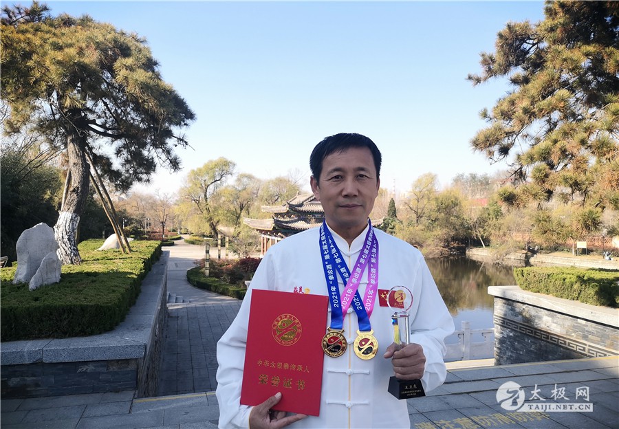 泰岳巍峨,九曲黄河,万里奔腾。望齐东大地,物华天宝,鲁西人物,毓秀钟灵。2021年度最美太极人王卫东,生于齐鲁,长于齐鲁,深耕太极拳艺十数载,传播太极文化受益他人,终不负自己,成就“最美”荣誉。 王卫东自幼便对武术情有独钟,特别喜欢“仗剑行天涯”的感觉。少年时期的晚上,他经常和小伙伴们在麦场上打闹,耍一耍少林拳。这段少年时期的美好记忆,让他至今难以忘怀。 成年之后,王卫东整日忙于工作,无暇休闲,生活的乐趣在一成不变的日子中被渐渐消耗抹掉,身心也越发感到疲惫。直到,在2009年的6月,他参加了一期公司所开展的太极拳培训,生活渐渐开始改变。他对那期太极培训记忆犹新。那期培训让自己儿时的武术梦重回脑海,让自己与太极结下了不解的缘分,让自己踏上了太极的“不归”之路。 王卫东喜欢太极拳,太极拳刚柔相济、快慢相间的拳姿,轻柔飘逸的神韵,养生健身的功效,一切的一切都让他深陷其中,不能自拔。他练拳十二年,练拳已成为了一种习惯,成为了自己生活中不可或缺的一部分。无论是工作多么繁忙、时间多么紧张,亦或是风霜雨雪、严寒酷暑都挡不住他练拳的脚步。他十数年如一日的坚持练拳,用心悟拳。随着练拳时间的增长,他渐渐发觉自己的体力越发充盈、精力也越发充沛,以前的膝关节毛病和肠胃病也得到了明显的改善,面对工作和生活心态也越发平和,整个人越来越放松。 太极拳带给自己身体和精神带来的神奇变化,让他对太极拳的神奇和奥妙更加入迷,让他更加想深入地了解太极拳的拳法拳理。在研习太极的路上,他有幸遇到了自己的恩师陈氏太极拳第十二代优秀传承人刘辉。师父刘辉拳艺精湛、为人坦荡,传拳授艺毫无保留倾囊相授。跟随师父习拳十多年,对于师父的教诲他铭记于心。师父常说:既然你选择了这套拳,你就是选择了一生的谦虚。喜欢练拳,就要认真练拳。要想学好拳,先要修好德,德有多高艺就有多精。学拳要德艺双修、德在艺先,对待太极拳要有爱心、诚心和谦虚的态度。师父真诚待人、善学不倦的精神影响着他,让他的太极之路可以走的更踏实,更长远。 一个可敬的拳师,不仅要有好的拳技,更要有美好的心灵,乐于分享太极文化传播太极拳。王卫东向师父看起,力争做一名可敬的拳师。多年以来,他协助师父进行太极拳培训,培训学员多达300余人次;在自己所属公司,他积极推广太极拳,培训学员50余人次;他助推太极进社区,努力让更多的人受惠太极,他所培训的学员已达60余人次。每一次培训,他都投入了十分的热情,对待所有学员一视同仁,耐心细致地讲解练习太极拳过程中容易出现的问题,手把手地帮助学员们纠正错误,努力地让每一位学员领会到要领。 2021年,王卫东参加“拳论酒”第七届太极拳网络视频大赛,荣获太极拳、械一等奖,并荣膺“最美太极人”称号。他感谢太极网授予自己这份荣誉,感谢太极网在疫情期间为太极拳爱好者们搭建一个可以展示自己、检验拳技的平台。这份荣誉既是对自己的表彰,也是对自己的鞭策。自己将以这份荣誉为起点,刻苦练功,精研拳理,不断的提高自己的拳艺水平,为传承陈氏太极拳法和弘扬太极文化做出自己应有的努力。