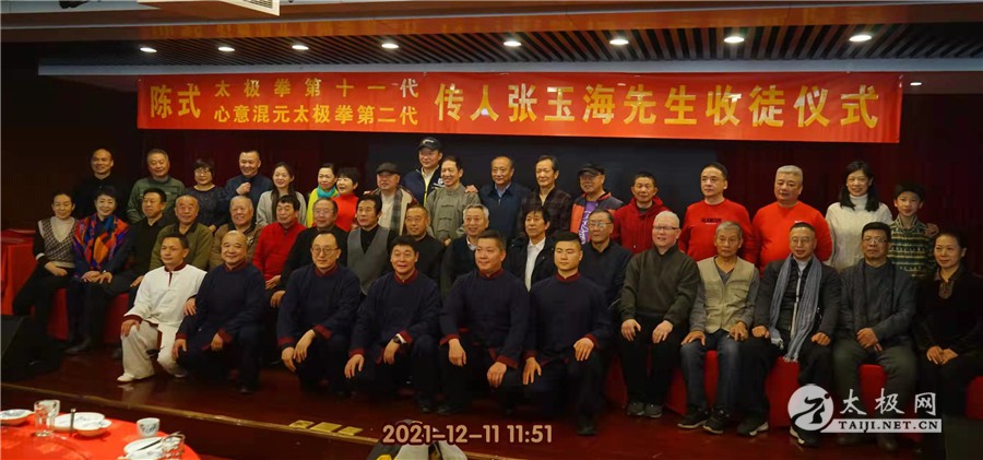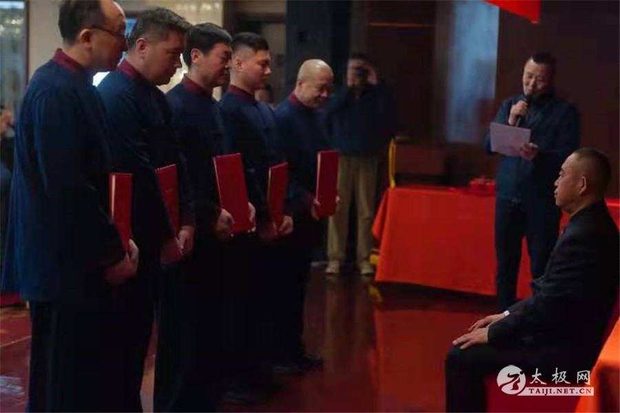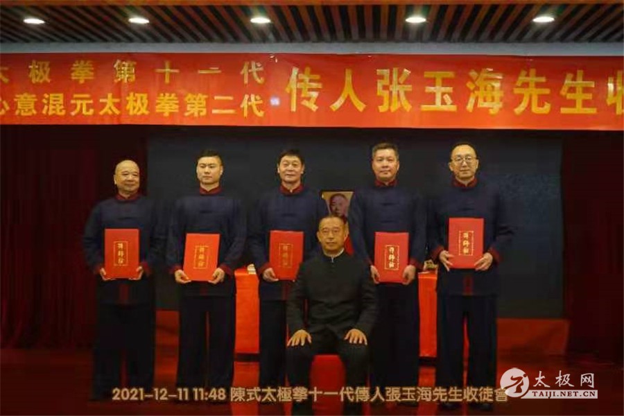 自古以来,拳术传承以人为载体,口传心授,言传身教,“师父带徒弟”是培养传承人的有效方式。2021年12月11日 ,陈式太极拳第十一代传人、心意混元太极拳第二代传人张玉海收徒仪式在北京隆重举行,七名太极拳爱好者经过重重考核正式成为陈氏太极拳传承人,为太极拳的传承和发展注入了新的血液和力量。 武术名家武世俊老师、韩建中老师,北京武协陈式太极拳专业委员会主任王洪恩出席收徒仪式,张玉海同门师兄孙中华、薛永阁、刘亚军等人以及再传弟子七十余人参加收徒仪式,共同见证这一神圣而庄严的时刻。 收徒仪式由著名中医文化学者、孔子第七十六代孙孔令谦主持。仪式简洁庄重、遵循传统。师父张玉海向太极拳祖师陈王廷画像上香行礼,以告传承有序。新入门弟子向师父张玉海呈递拜师贴、敬拜师茶、行拜师礼,师父张玉海回拜师贴、为新弟子披挂绶带。收徒仪式在众人的见证之下圆满礼成。 新入门的七名弟子,其中有奋斗在一线的公安战士、也有企业界的精英。他们表示,一定不负师恩,恪守组训,遵守门规,刻苦练拳,用心练拳,早日成为合格的传承人。 师父张玉海向到场的嘉宾表示感谢,向新弟子训话,告诫他们拜师只是一个新的起点,不代表学艺的终止,要不断修为,肩负起作为一名传承人的责任,为太极拳的发展传播做出自己的努力。 |