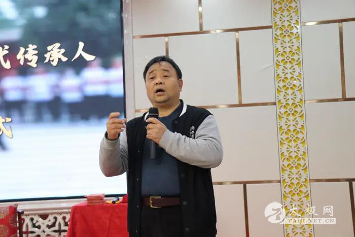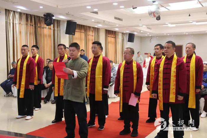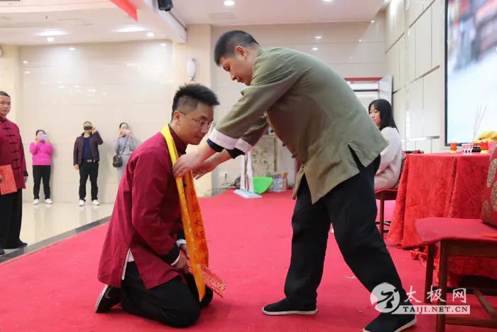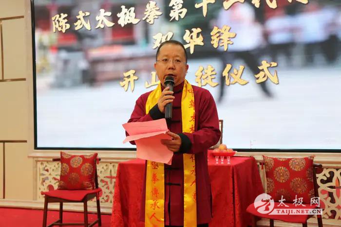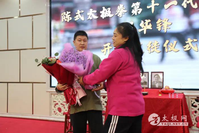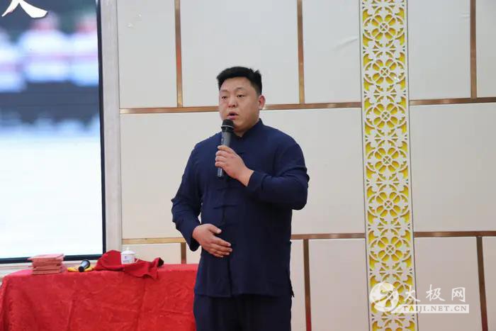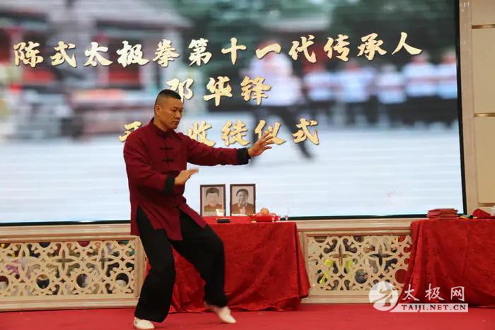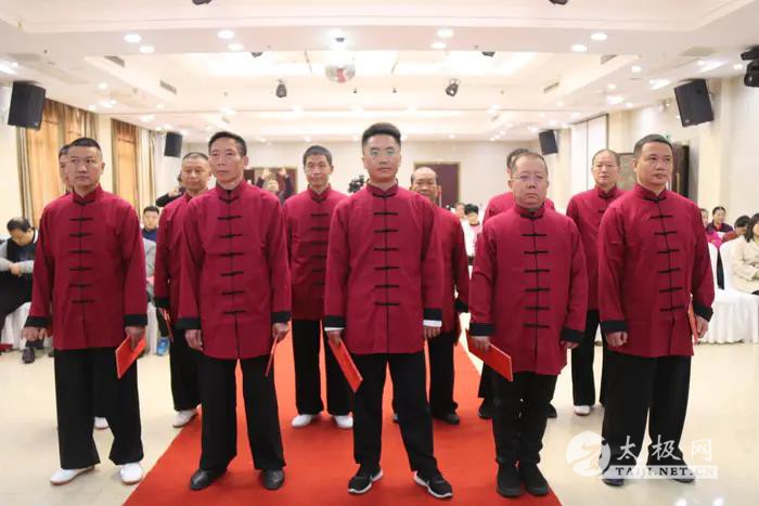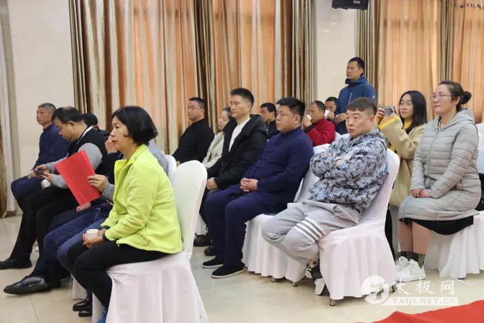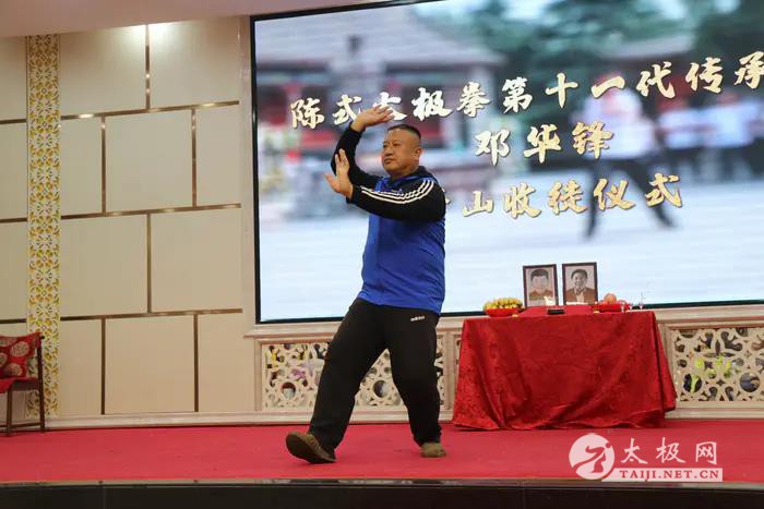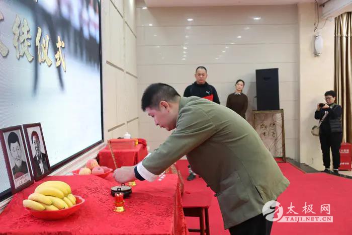 (太极网讯)太极薪火,生生不息。传承有序,福泽大众。2021年12月11日,陈式太极拳第十一代传承人、太极拳名家邓华锋老师收徒仪式在湖南郴州隆重举行。刘辉、李幸福、唐土顺、梁剑云、李雄、颜明华、谭绍德、符灿林、雷平、谭新文、朱楚霄、黄志雄等12名太极拳爱好者通过传统拜师仪式,正式成为陈式太极拳第十二代传承人,各界嘉宾及武术界知名人士到场见证这场太极拳传承盛事。 郴州市北湖区原人大主任段海清,郴州市人大财经委副主任朱宁静,郴州市太极拳协会会长周翀,郴州市太极拳协会荣誉会长肖建南,郴州市健身气功协会会长严金水,郴州市体育总会副秘书长姜志勇,湘南学院体育学院副院长赵剑平等领导嘉宾莅临现场。 陈式太极拳第十一代传承人、朱老虎大师之子朱堡垒应邀专程从太极拳发源地温县前往郴州见证同门师兄弟朱华锋老师的收徒仪式。陈式太极拳第十一代传承人、朱老虎大师弟子陈洪涛、仁哲、李晓敏等同门代表共同见证。 苏仙区太极拳协会会长李荣芬,杨式太极拳传人余新国、牛成胜、陈美娥等武术界重要嘉宾也出席了仪式。 收徒仪式遵循传统,简洁庄重。充分彰显了中国优秀传统武术文化的博大精深和其厚重的育人修德作用。邓华锋老师祭拜太极拳祖师及历代先贤,敬香行礼,以告收徒传承再续薪火。新入门弟子宣读拜师帖并依次递交拜师贴、行拜师礼,向师父、师母敬茶。师父回师徒帖并亲自为新入门弟子披挂绶带。在众人的见证下,拜师礼成,仪式进行的有条不紊、庄严肃穆。 新入门弟子代表梁剑云表态发言,有幸拜入邓华锋师父门下,将肩负起传承和传播太极拳的责任和使命,以传承人的身份严格要求自我钻研太极拳,弘扬人类非遗太极拳,造福社会和大众。 邓华锋老师率新入门弟子向太极拳祖师及历代先贤叩拜行礼,并向新入门弟子训话:拜师后更要遵守门规戒律,做好人,练好拳,承担起弘扬传播太极的责任,为人类非遗传承和传播作出应有的贡献。 陈式太极拳第十一代传承人、朱老虎太极功夫院院长朱堡垒作为见证人代表致辞,他高度赞扬邓华锋老师德艺双馨,是同门的杰出代表,多年来为太极拳的传承和推广作出了突出贡献,新弟子得拜良师,也为太极拳传承注入了新鲜的血液。 郴州市人大财经委副主任朱宁静女士在讲话中对邓华锋老师给予高度评价,对师徒双方结缘表示祝贺。寄望弟子们能认真学习太极拳,发展和弘扬太极拳文化。 与会的太极拳名家及爱好者们纷纷登台一展身手,演绎太极拳的刚柔并济、行云流水,现场掌声不断,气氛热烈和谐。 |