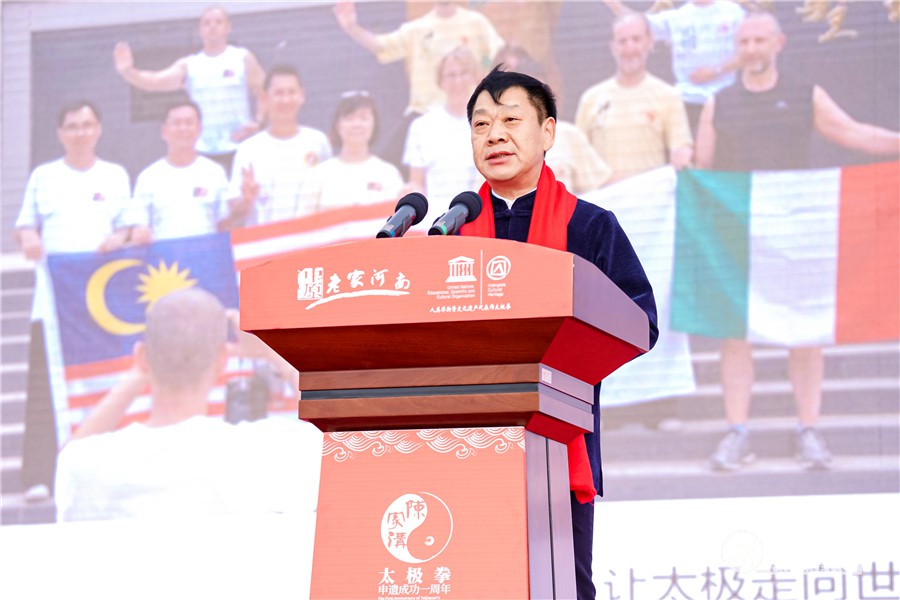 太极拳申遗成功一周年系列活动启动仪式现场 (太极网讯)2020年12月17日,联合国教科文组织在牙买加首都金斯敦宣布,正式将太极拳列入人类非物质文化遗产代表作名录。有300多年历史的太极拳迎来了在世界舞台上的“高光时刻”,这标志着太极拳作为全人类的共同文化遗产,得到了世界的广泛认同。为共庆太极拳成功申遗,共商太极拳传承发展大计。全国的“太极人”欢聚在太极文化的重要传承区、太极拳发源地——陈家沟,隆重举行太极拳申遗成功一周年系列活动。(点击观看启动仪式现场直播) 太极拳申遗成功一周年系列活动启动仪式现场 为确保太极拳保护工作的延续性,12月17日,值太极拳申遗成功一周年之际,由文化和旅游部非物质文化遗产司指导,河南省文化和旅游厅、焦作市委、市政府联合主办,河北省文化和旅游厅、北京市文化和旅游局、天津市文化和旅游局协办,以“共享太极•共享健康”为主题的太极拳申遗成功一周年系列活动在温县陈家沟正式启动。太极拳申遗成功一周年系列活动启动仪式在陈家沟太极拳祖祠内举行,河南省文化和旅游厅党组书记、厅长姜继鼎,党组成员、副厅长周耀霞,河北省文化和旅游厅非物质文化遗产处一级调研员孙晓华、焦作市政府副市长王付举、温县县委书记杨磊等相关领导及七大太极拳社区代表性传承人共同出席了本次启动仪式。 温县县委副书记、人民政府县长李培华发布太极拳申遗成功一周年系列活动情况 仪式上,温县县委副书记、县长李培华发布太极拳申遗成功一周年系列活动安排,七大太极拳社区代表性传承人依次发言。 文化和旅游部非物质文化遗产司司长王晨阳视频致辞 文化和旅游部非物质文化遗产司司长王晨阳以视频形式对本次活动表示祝贺,充分肯定了太极拳作为中华优秀传统文化的代表,在促进人民生命健康、推动社会和谐共处、坚定文化自信等方面发挥的重要作用。同时,他对太极拳的传承保护工作提出三点要求和希望:一是努力提升人民群众的参与度,在维护家族和师徒传承机制良好运转的基础上,积极探索太极拳在线上线下的多元化传承和传播模式;二是加强协作配合,形成保护工作的合力;三是强化责任意识,落实保护计划。 与会领导和嘉宾共同点亮启动球 随后,河南省文化和旅游厅党组书记、厅长姜继鼎与诸位太极拳传承人等8位嘉宾共同点亮启动球,正式启动本次太极拳申遗成功一周年系列活动。 随着启动球的升空,太极拳全球快闪活动正式发起,在北京、上海、广州等国内地标城市以及纽约时代广场、悉尼歌剧院等国际地标,全球太极拳习练者同施抱拳礼,共同庆贺太极拳申遗成功一周年。最后,全场的太极拳大师共同进行《四向太极》精彩表演。 陈氏太极拳代表性传承人陈正雷发言 武氏太极拳代表性传承人姚志平发言 和氏太极拳代表性传承人和有禄发言 王其和太极拳代表性传承人辛庆华 杨氏太极拳代表性传承人王少君发言 李氏太极拳代表性传承人李春华发言 吴氏太极拳代表性传承人张小瑛发言 据介绍,本次太极拳申遗成功一周年系列活动,是在文化和旅游部非物质文化遗产司的指导下,与太极拳七大社区联合策划推出的。分线上、线下两个阶段渐次开展。线上活动七项,分别是:太极拳申遗成功一周年系列活动启动仪式、七大社区联合庆祝太极拳申遗成功一周年活动、“我跟大师学太极”线上培训暨名师大讲堂、太极拳“六进”成果展示、太极拳短视频展播、《走进陈家沟·品味太极拳》网络访谈、《非遗之光——太极拳》电视专栏。线下活动八项,分别是:太极拳保护履约工作推进会、全国太极拳学术会议、太极拳七大社区汇演活动、太极拳系列出版工程、“印象太极”演艺首映式、郑焦黄河自行车公开赛(焦作站)、太极拳传承人培训班、中国非物质文化遗产保护协会太极拳专业委员会成立大会暨揭牌仪式,线下活动视疫情防控形势适时启动。 近年来,温县县委、县政府高度重视太极拳的传承保护、推广普及、产业发展等工作,举办了第一届太极拳传承发展大会、国际太极拳交流大赛、太极拳高峰论坛、全国武术太极拳公开赛等多项重大比赛和活动,特别是“一带一路太极行”“世界百城千万人太极拳展演”等活动,在世界范围内产生了良好的影响。 浩荡东风阔,征程催人急。申遗成功以来,作为太极拳发源地的温县,抢抓太极拳申遗成功这一重大历史机遇,不断完善社区协作机制,大力发展“太极拳+旅游”“太极拳+康养”“太极拳+培训”“太极拳+制造”等文旅产业,走出一条独具特色的产业新路。 该县充分发挥规划引领作用,加强与“十四五”规划、黄河流域生态保护和高质量发展、郑州大都市区一体化发展等规划衔接,做好“太极+”文章,打造太极文化之城。该县以“52100”重点工作项目化推进机制为抓手,积极实施文旅文创融合战略,统筹推进产业转型攻坚中的文化旅游、商贸服务等工作,保障陈家沟景区重点项目高质量推进。截至目前,陈家沟太极小镇项目概念性规划设计日臻完善。其中,总投资6.7亿元的包括河南太极拳学院项目和温县职教园区及人才实训基地建设项目的子夏大学城项目多处场馆已完工;由IDG资本与河南省豫资集团联合投资重磅打造的综合性文化娱乐体育场馆太极全域剧场项目已接近尾声,其中建筑面积10334平方米