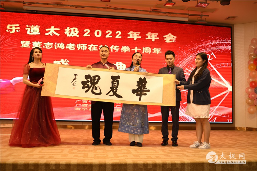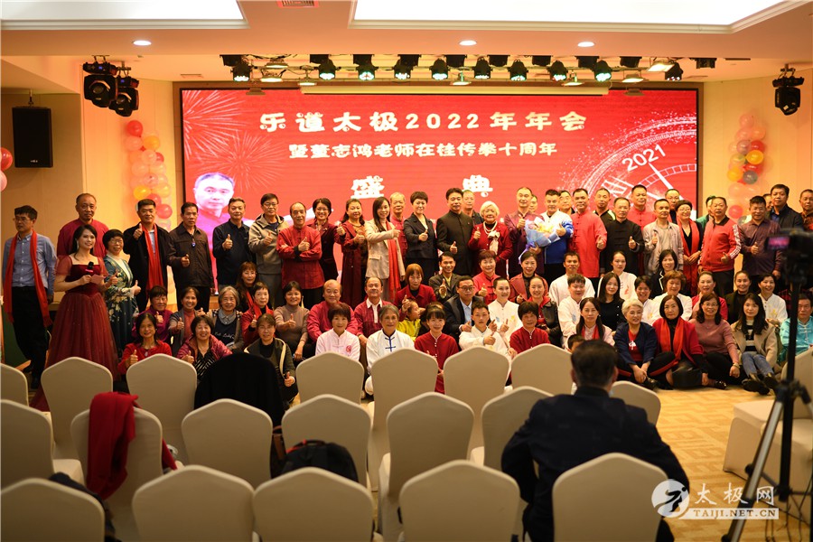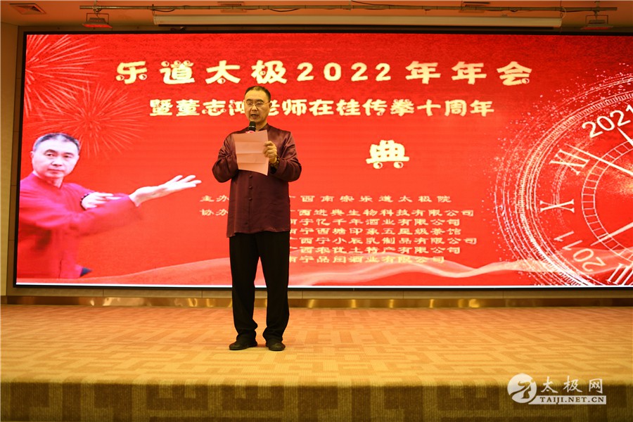 十年耕耘,八桂飘香。十年之前,董志鸿老师从千里之外的太极拳发源地河南省温县来到广西;十年里,董志鸿老师背井离乡、栉风沐雨,走遍八桂大地,把太极拳的种子播撒在广西这片充满希望的土地上。12月18日,在这个值得每一位乐道人纪念的日子,广西南宗乐道太极院2022年年会暨董志鸿老师在桂传拳十周年盛典隆重举行。 本次盛典由广西南宗乐道太极院主办,由广西进典生物科技有限公司、南宁忆千年酒业有限公司、南宁西塘印象五星级茶馆、广西宁小辰乳制品有限公司、广西农优土特产有限公司、南宁品闰酒业有限公司协办。盛典现场全程通过太极院和太极网进行直播。 出席本次盛典活动的嘉宾有:原广西武警总队副司令员钟全义,陈式太极拳第十二代传人、朱天才大师入室弟子黄戈,广西中国东盟黑芝麻协会副会长、南方黑芝麻集团股份有限公司副总裁李文杰,中粮祁德丰商贸公司董事兼总经理、中粮集团广西区域秘书长舒卫士,资深制片人、导演、猫行天下文化娱乐经纪有限公司董事长秦雪雯,中国著名特型演员、周恩来总理的扮演者杨洛,中国著名歌唱演员、有“变脸歌王”美誉的卫东, 地凯育仁发展有限公司总经理、地凯育仁幼儿学校校长尤艳虹,地凯育仁发展有限公司发展部副经理周恩伶,桂林市香格里拉大酒店活动部经理陈微微,桂林榕湖美术馆馆长吴显卫,中国著名书画家、广西美术馆周松, 中国著名书法家王来福,广西宁小辰乳制品有限公司董事长宁晨辰等。 董志鸿老师致辞 广西南宗乐道太极院院长兼总教练董志鸿老师致辞,向嘉宾们表示由衷的感谢,向乐道太极的每一位教练员和工作人员表示感谢,向一直以来支持乐道太极的广大拳友们表示感谢。并表示乐道太极将一如既往的以传承弘扬太极拳为己任,为大家提供一个学习太极、感受太极、强身健体、放松身心的理想场所。祝愿大家在新的一年里身体健康,万事如意! 2022年会盛典精彩节目表演节选 董志鸿新架二路演练 回首过去的十年,寄望下一个十年。2022年会盛典丰富多彩、别具一格。有喜庆热闹的非洲鼓表演、有少年强则国强的少儿太极表演、有太极侠侣的完美演绎、也有令人期待的董志鸿老师的压轴表演....在一曲由董志鸿老师作词作曲的《乐道是我家》的歌曲中年会盛典圆满落幕。 董志鸿老师祭奠祖师 收徒仪式现场 新入门弟子和师父师母合影 新老弟子和师父师母合影 随后,董志鸿老师收徒仪式举行,四位太极拳爱好者通过传统仪式正式拜入董志鸿老师门下,成为陈式太极拳第十四代传人,成为乐道太极大家庭的新成员。仪式在到场嘉宾、同门师兄弟及拳友的见证之下,尊崇太极传承文化的传统的拜师仪式,在严肃而热烈的氛围中举行。 2021年是不平凡的一年,这一年,经广西区体育审批,民政局注册,“广西南宗乐道太极院”正式挂牌成立,成为广西唯一的省区级专业太极拳传承培训机构。期待广西南宗乐道太极院在董志鸿老师的带领之下未来能创造出更多的不平凡,更多的新发展新成绩! |