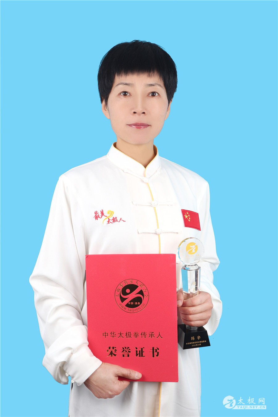 荣誉称号: 2017年,被评为“郯城县最美太极人”; 2017年,陈宇、徐少华夫妇被山东省电力公司评为“太极达人”夫妇; 2019年,荣获国网山东省电力公司第十二届文化体育节“太极达人”荣誉称号; 2020年,荣获太极网传播盛典年度表彰活动“优秀馆校长”荣誉称号。 2021年,荣获太极网·最美太极人荣誉称号。 2021年,荣获国网山东省电力公司第十三届文化体育节“太极达人”荣誉称号; 荣誉经历: 2011年,参加第六届中国焦作国际太极拳交流赛传统陈式太极剑荣获一等奖; 2013年,在石家庄“马虹杯”太极拳联谊赛中获得传统陈式太极拳一等奖; 2015年,参加“志强杯”中国五莲大青山第三届国际太极拳大赛获得陈式太极拳第一名,太极剑第一名。 2015年,参加广州市第三届武术精英大赛获得传统陈式太极拳全能金奖,团体金奖; 2017年,参加石家庄“马虹杯”传统陈氏太极拳联谊赛获得太极拳、太极剑以及团体比赛一等奖; 2018年,参加“一带一路”中国郯城国际武术邀请赛获得太极拳套路、太极剑一等奖; 2018年,参加国网山东省电力公司举办第二届离退休老同志太极拳比赛,获得集体24式太极拳一等奖; 2019年,参加第十届中国焦作国际太极拳交流大赛获得太极拳套路、春秋大刀一等奖; 2021年,参加“马虹杯“传统陈氏太极拳网络联谊赛获得拳术一等奖,春秋大刀一等奖,集体拳术一等奖; 2021年,参加烟台国际武术节获得五项全能一等奖。 2021年,参加第七届 “寻找最美太极人“太极拳网络视频大赛获得拳术一等奖,春秋大刀一等奖,并荣膺2021年度最美太极人称号。 |